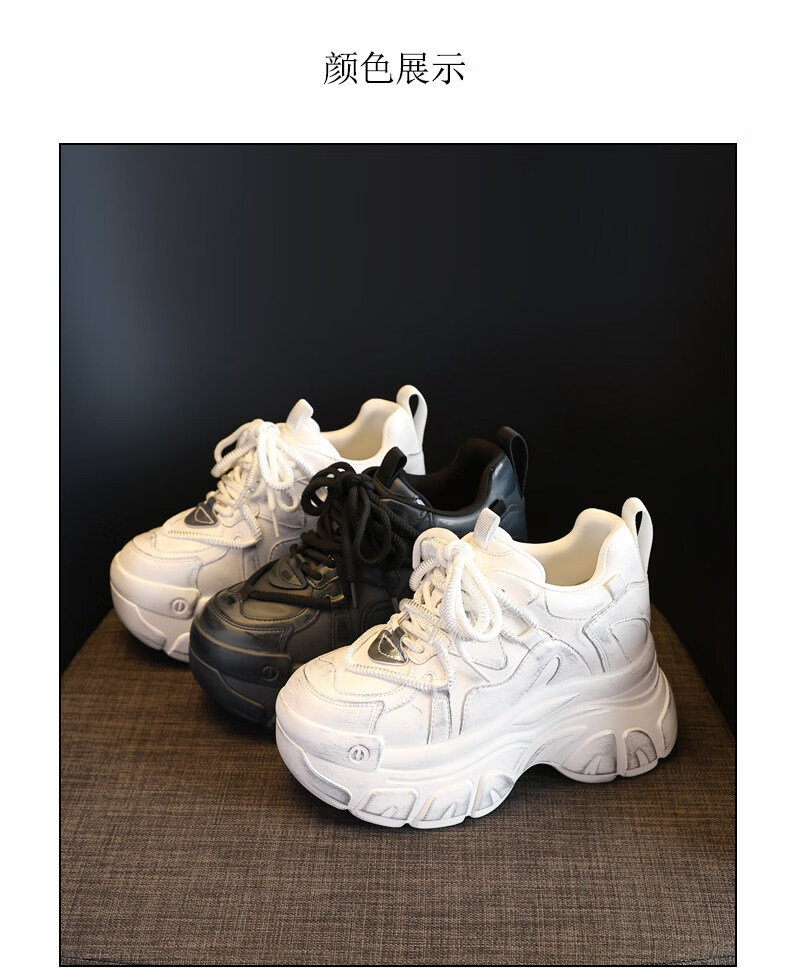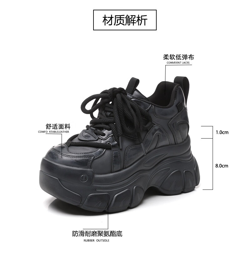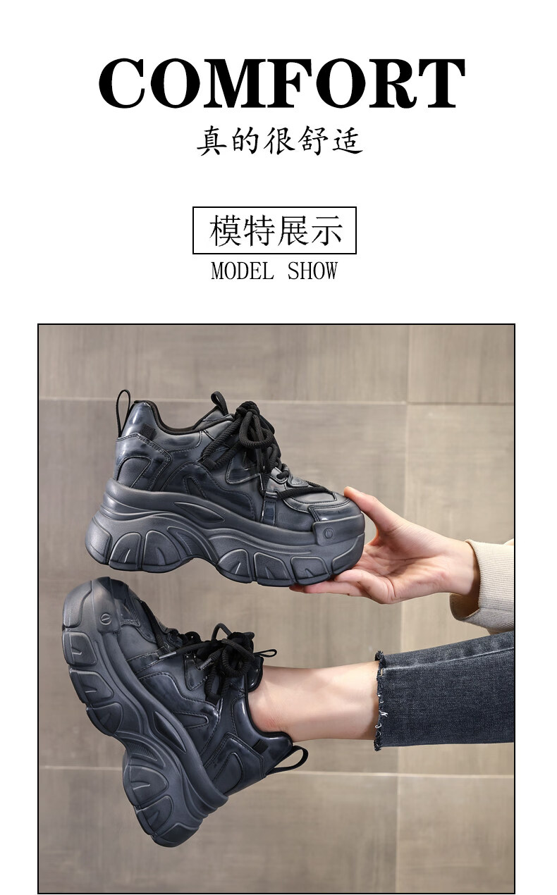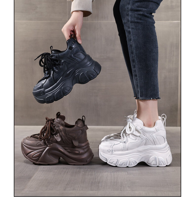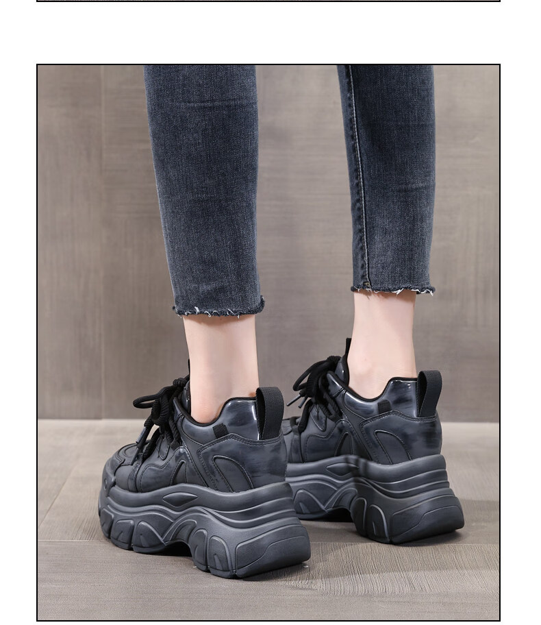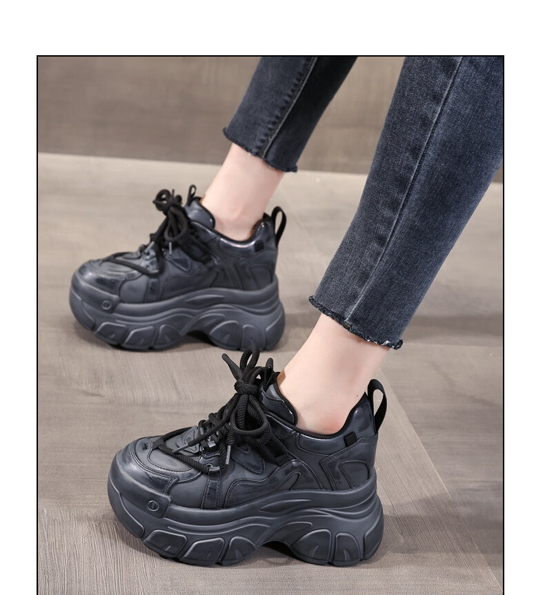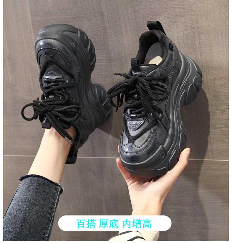 Woodpecker brand small thick-soled inner heightening dad shoes for women 2025 autumn and winter new platform soft-soled sports and casual shoes black 35