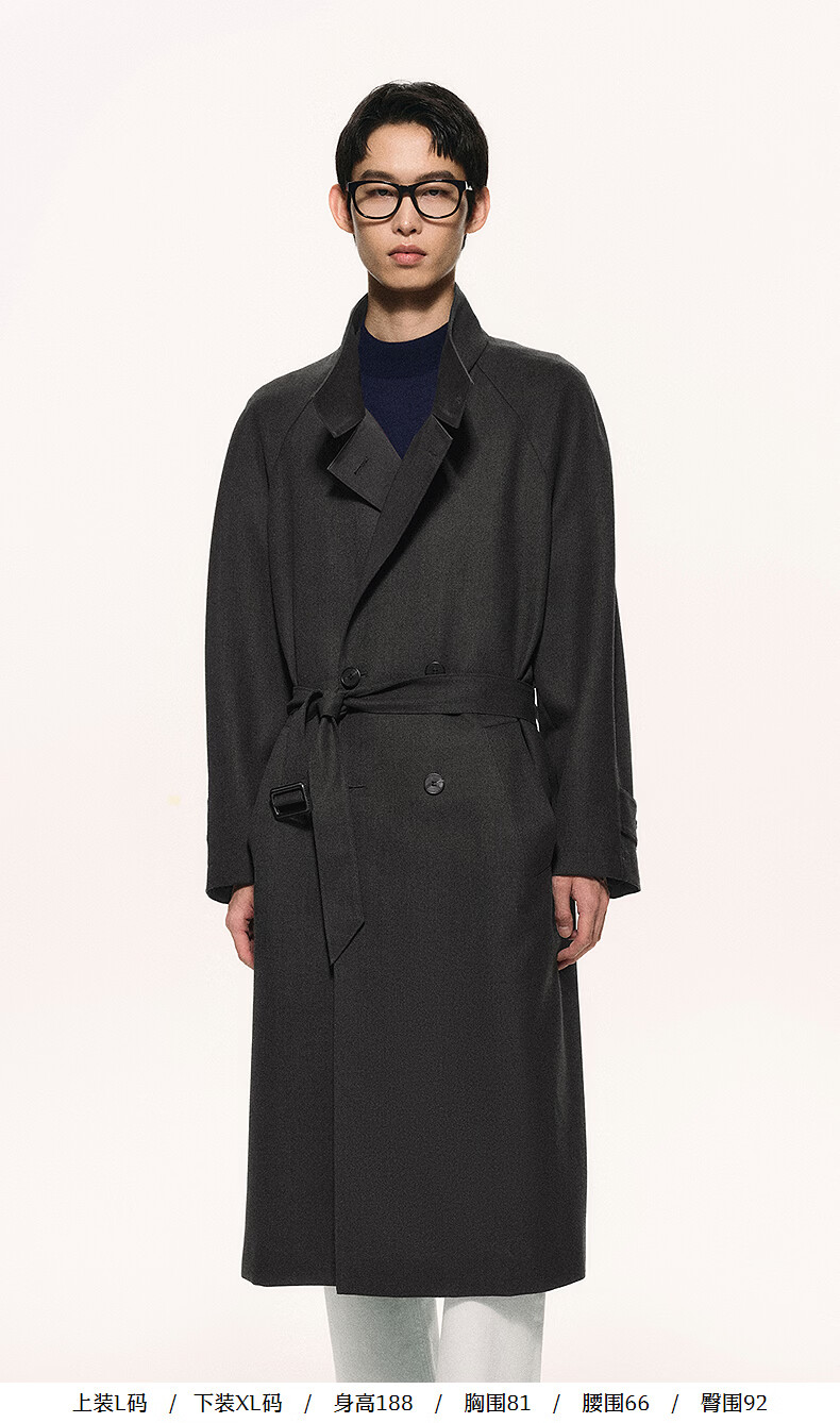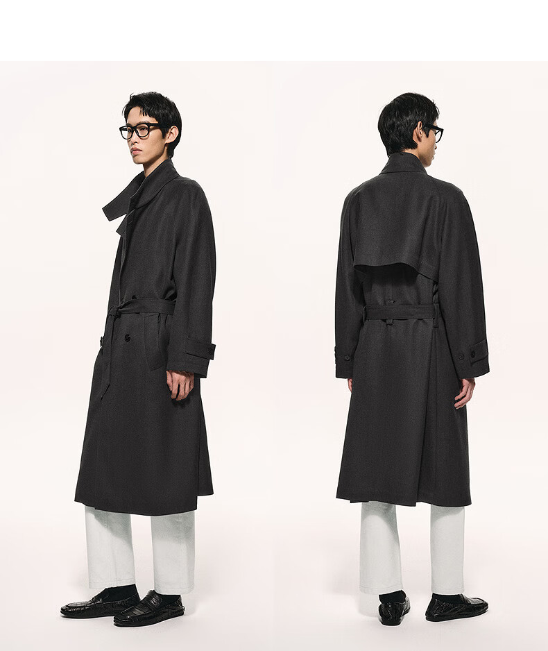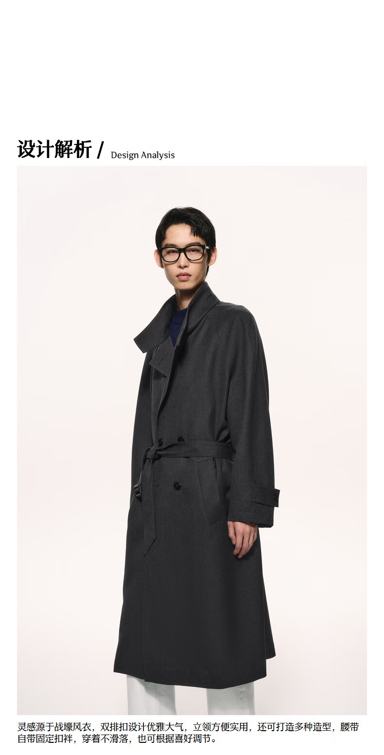 速写男装2026春新品风衣H型宽松立领插肩袖长款9Q1911560 011炭黑 S