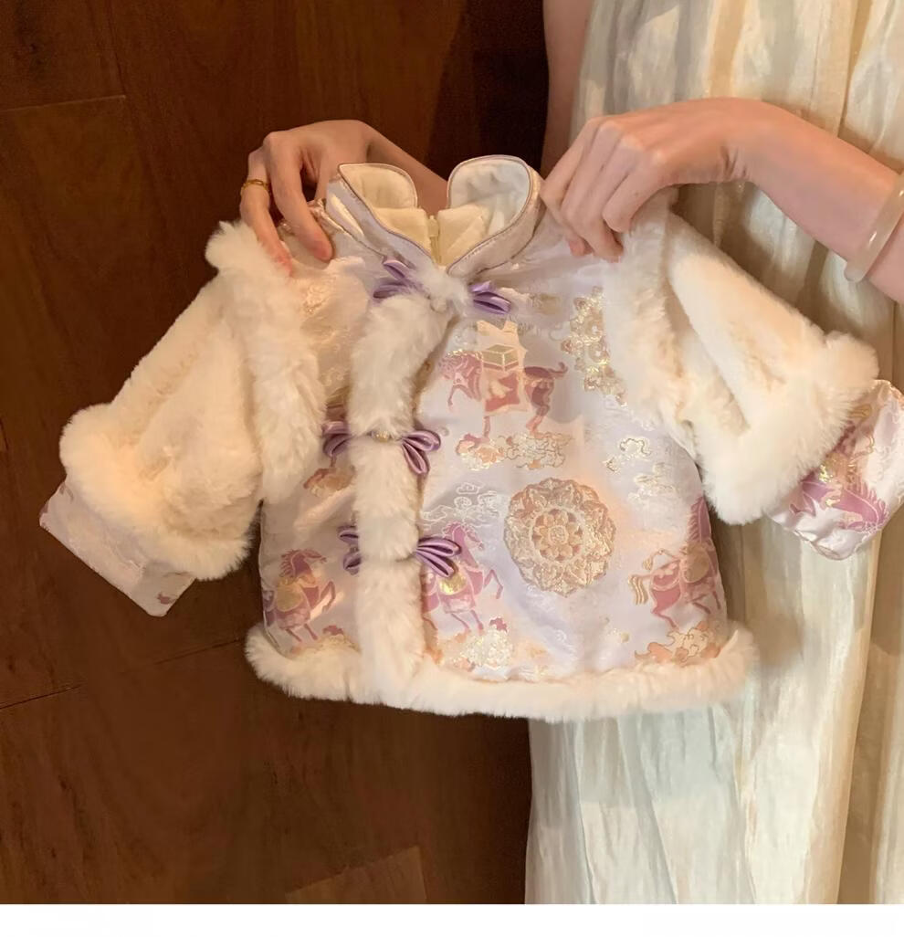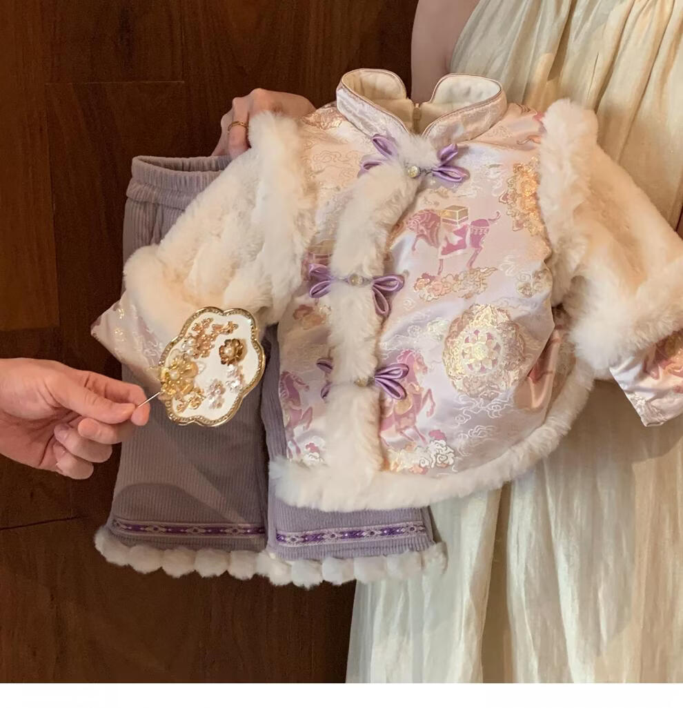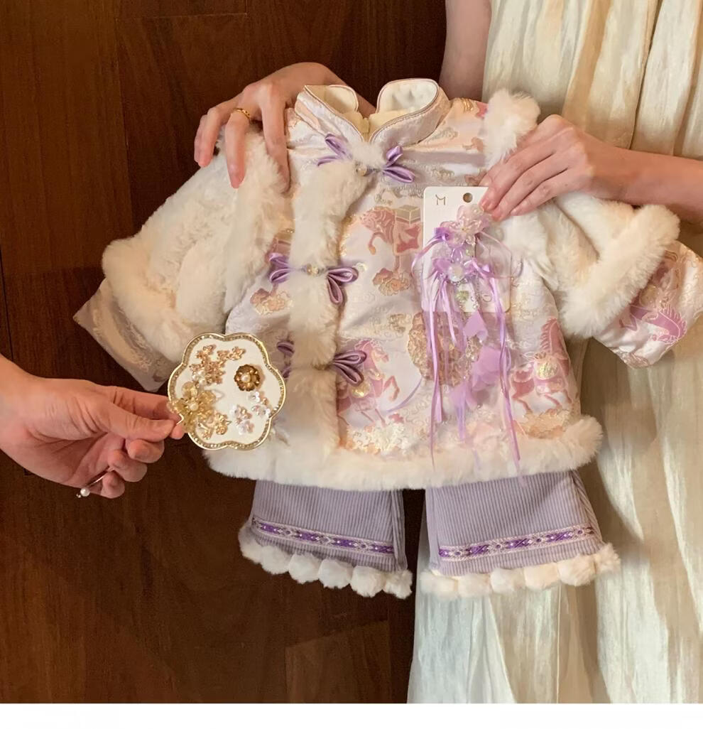 2026 New Little Mumu Girls New Year's Wear Set Winter Little Girl Baby National Style Two-piece Set New Year's Eve Purple (Genuine) 80