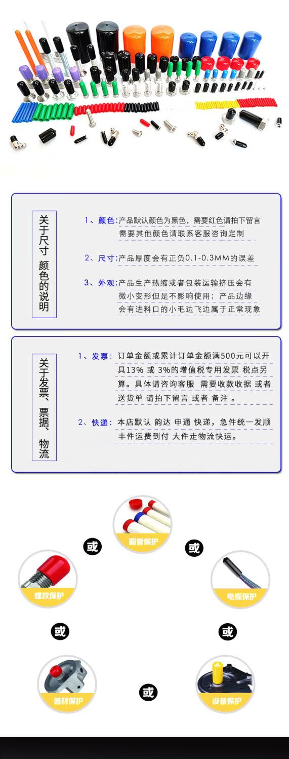 Thread protective sleeve bolt rubber cap PVC rubber cylinder dust cap colored glue black inner diameter 1.5 (1000 pieces)