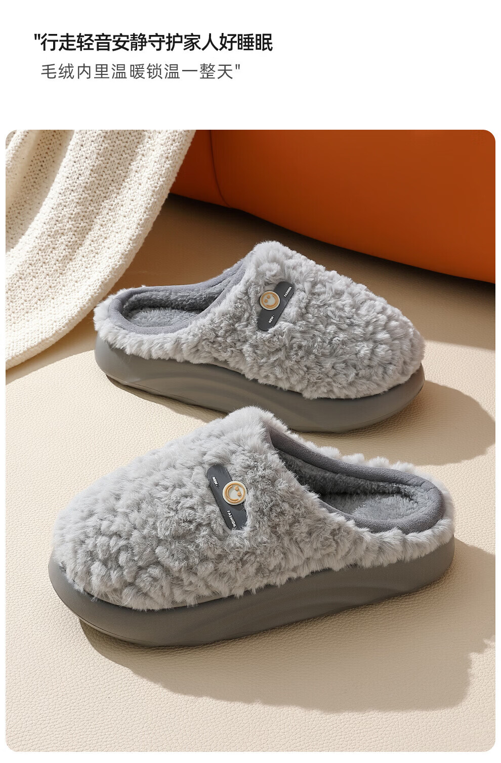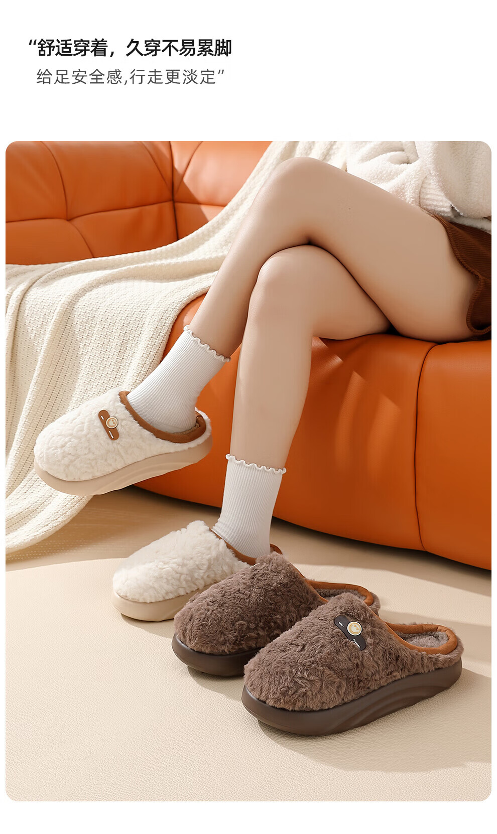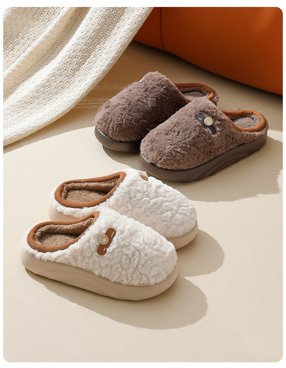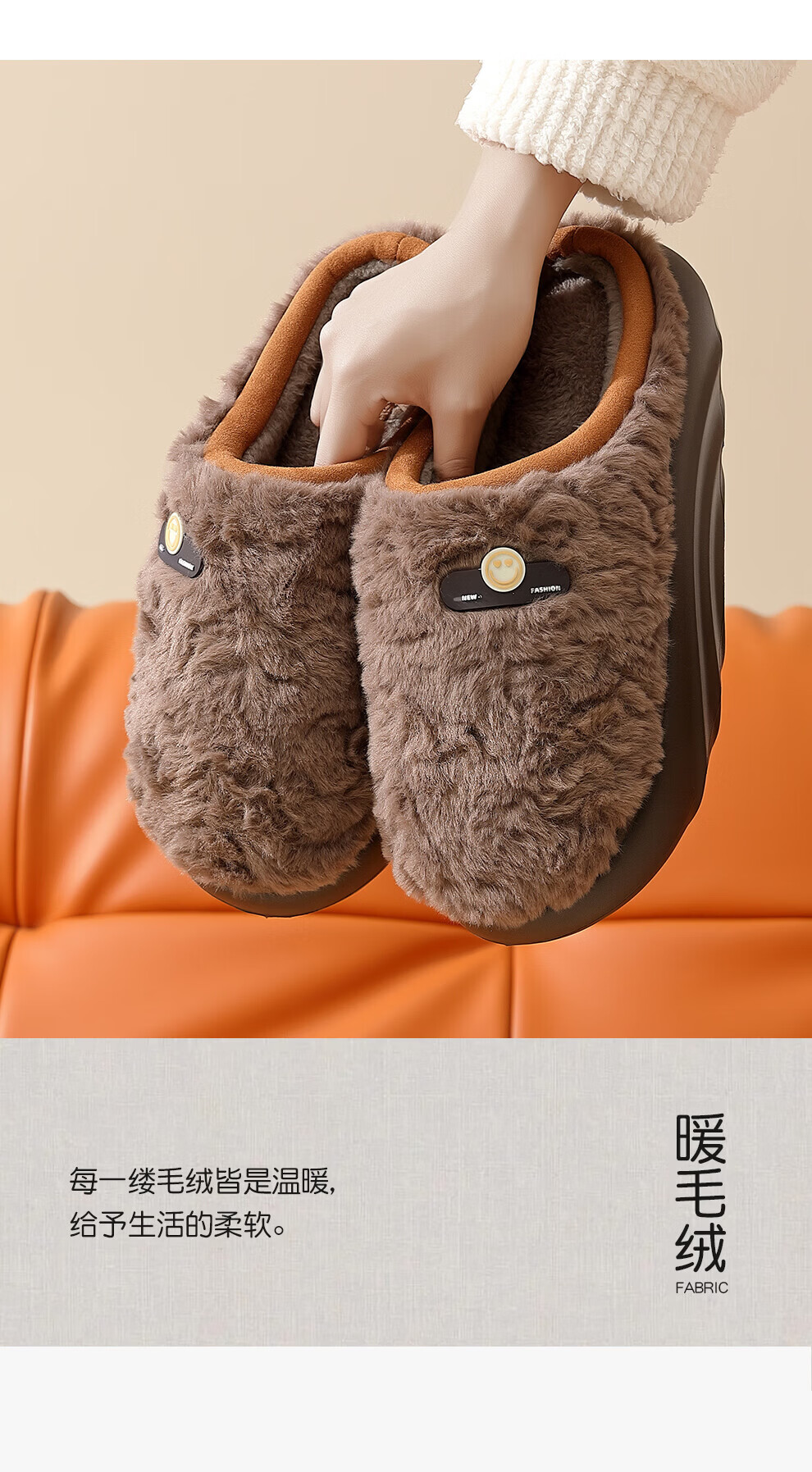 DMPD light luxury plush warm cotton slippers for women autumn and winter home soft elastic comfortable skin-friendly plush non-slip wear-resistant thick-soled slippers coffee color 44-45