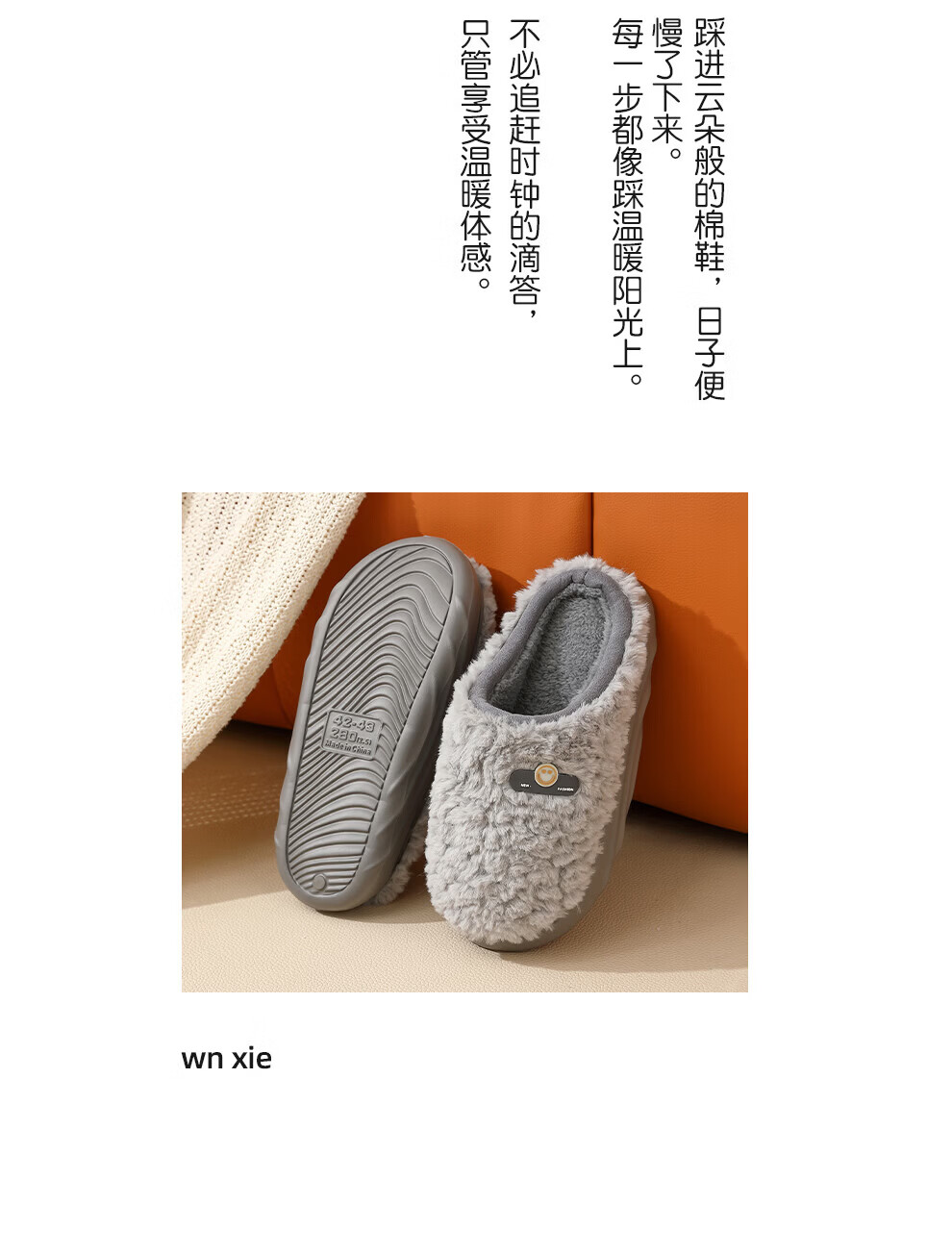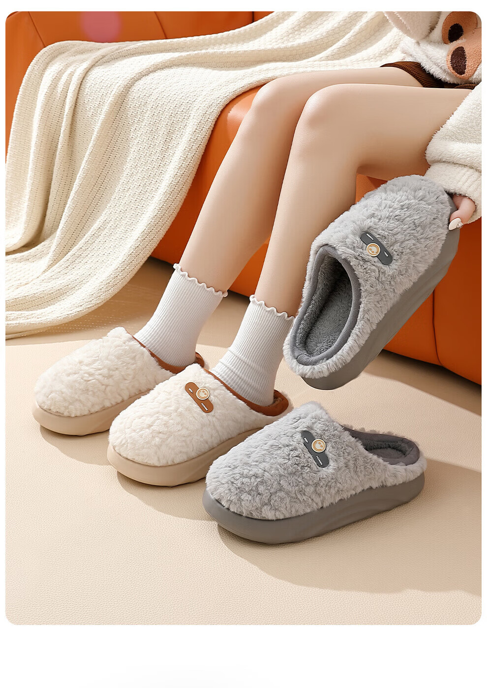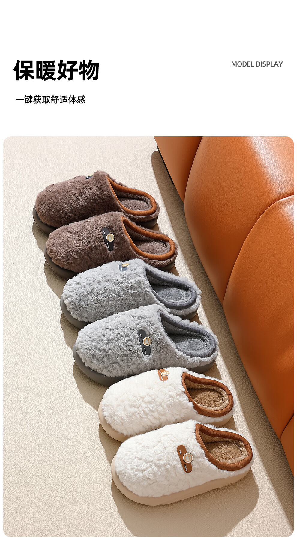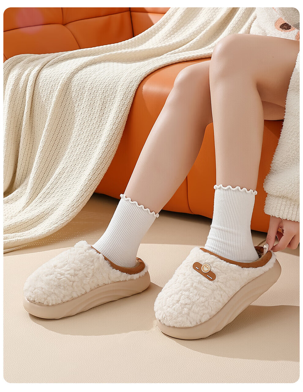 DMPD light luxury plush warm cotton slippers for women autumn and winter home soft elastic comfortable skin-friendly plush non-slip wear-resistant thick-soled slippers coffee color 44-45