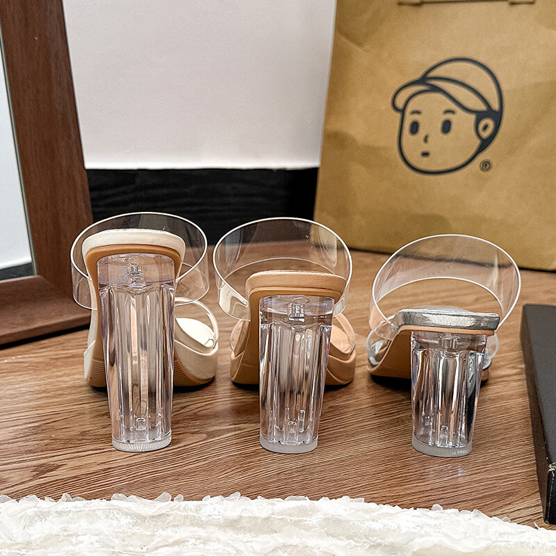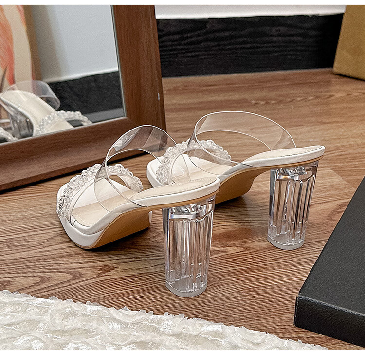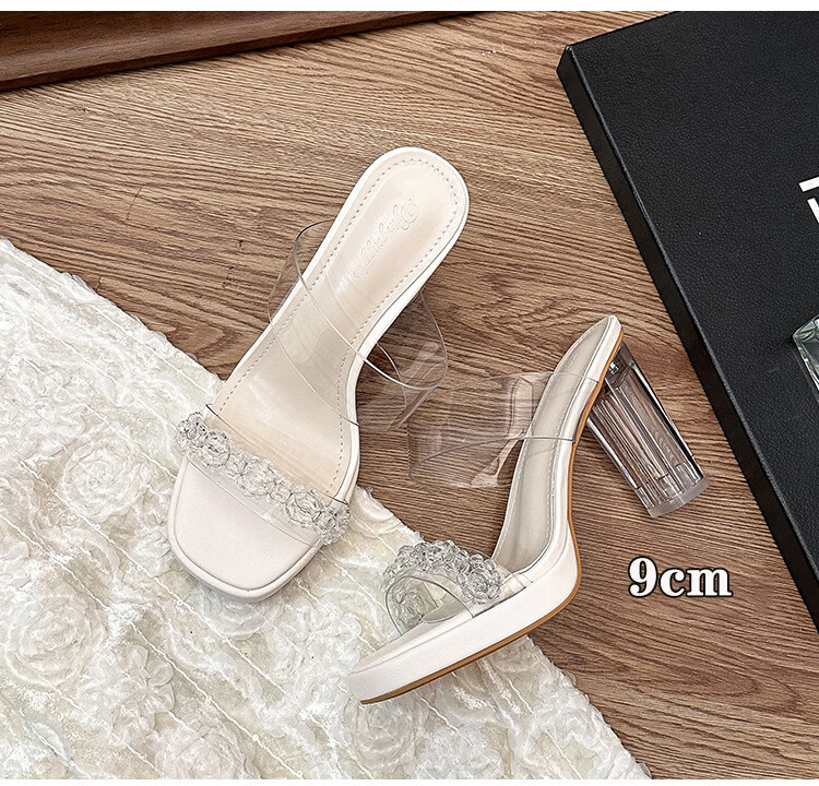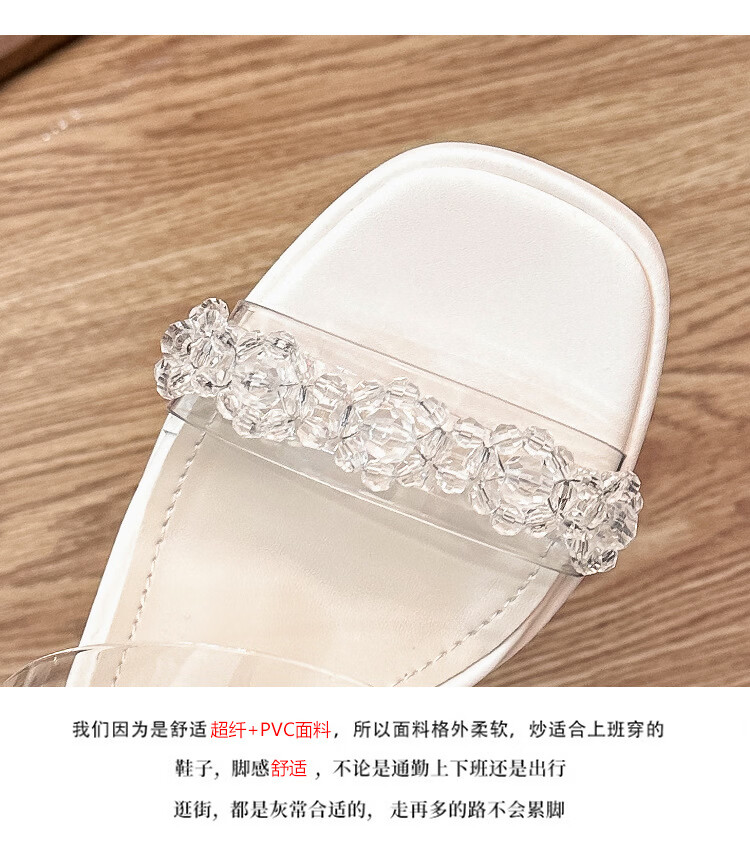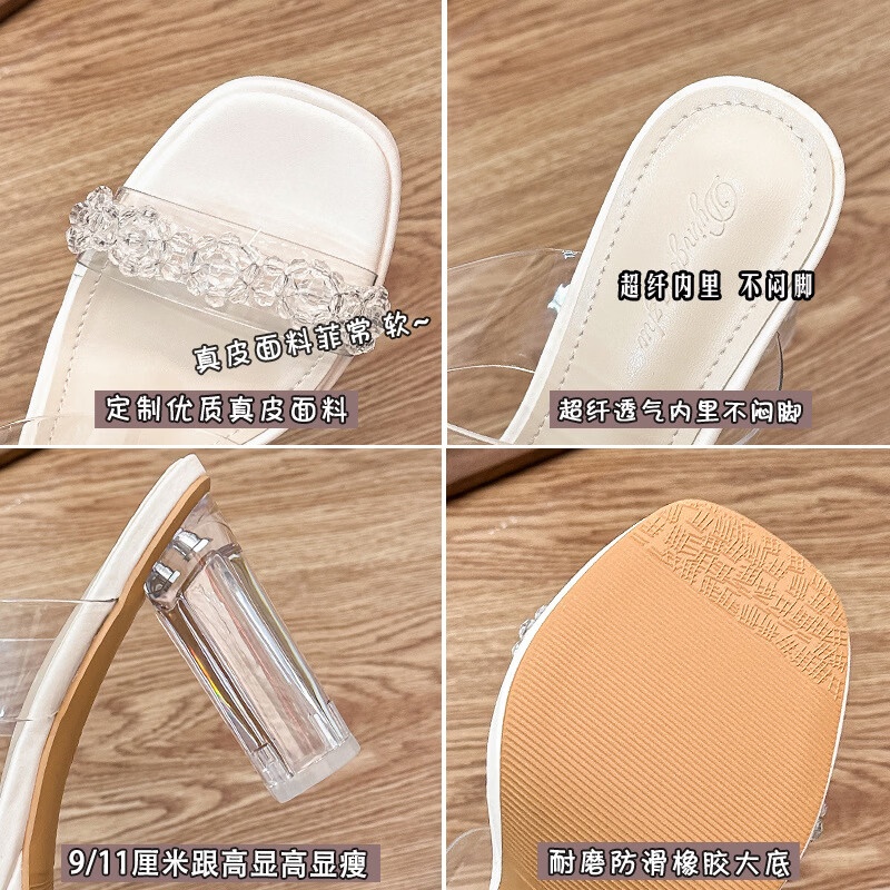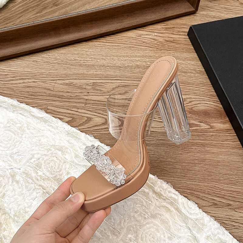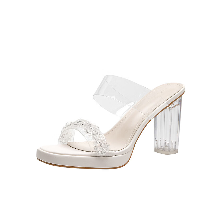 Woodpecker transparent high-heeled sandals for women 2026 new summer outer wear fairy style Internet celebrity crystal thick heel waterproof platform slippers off-white 8 cm 32