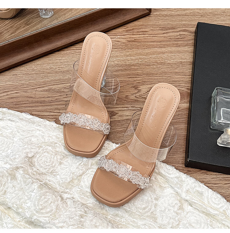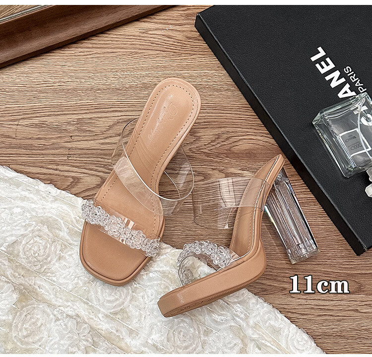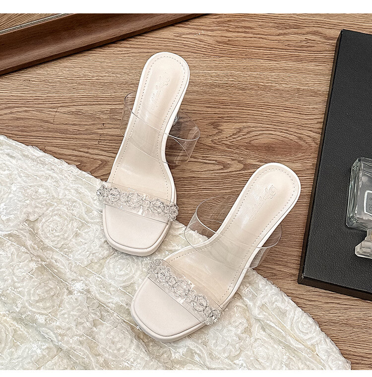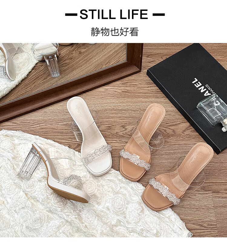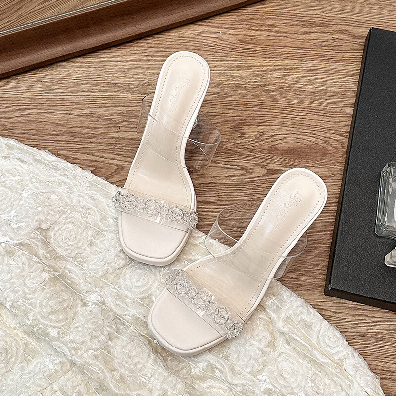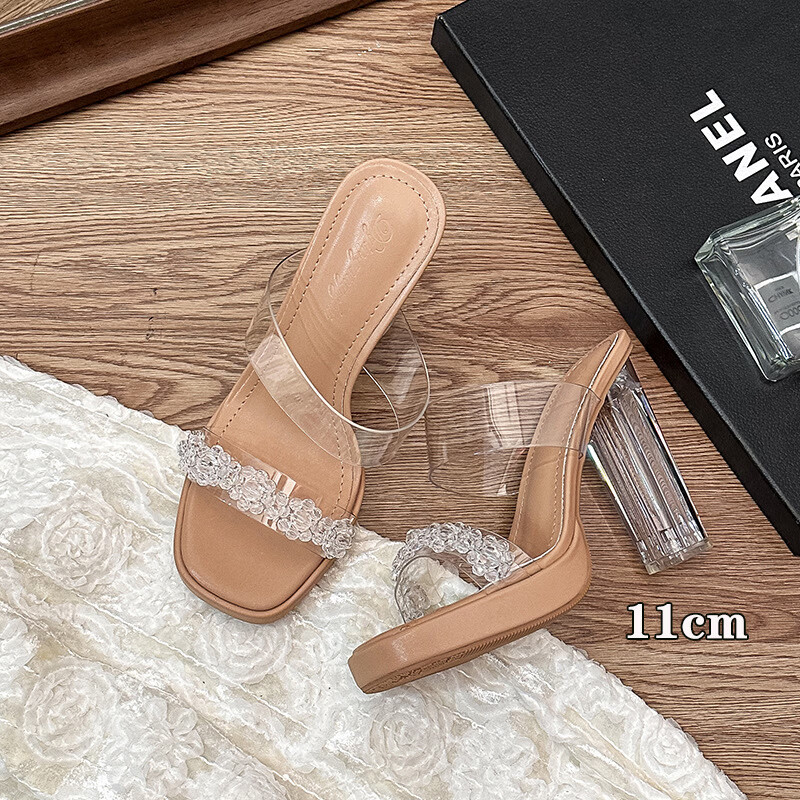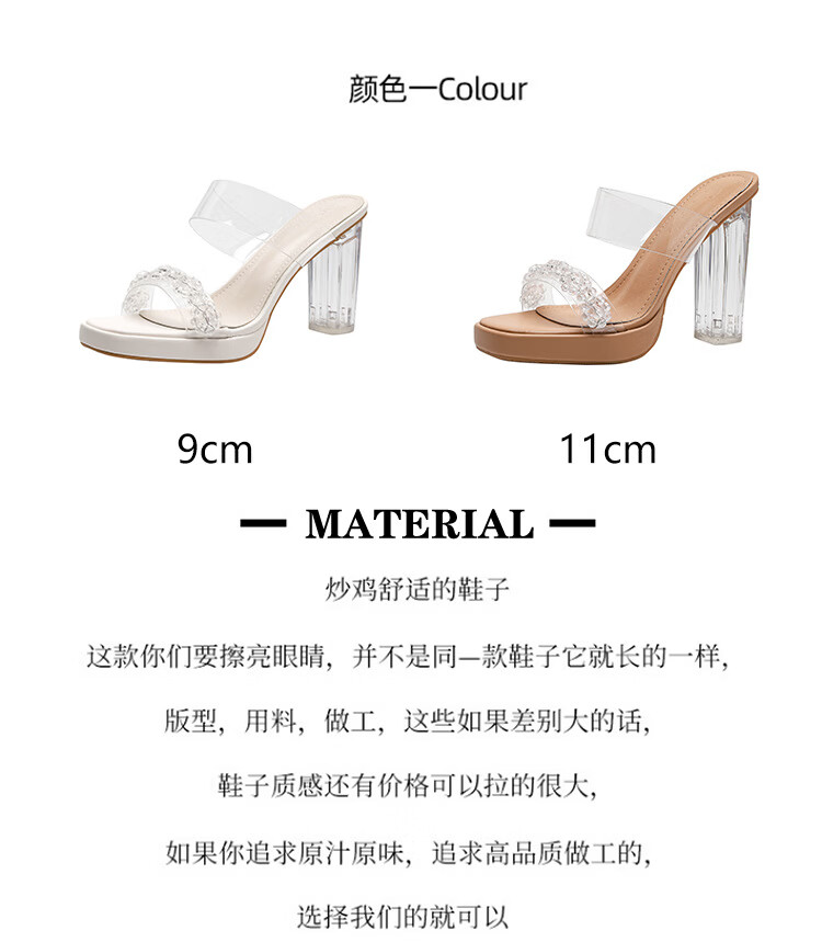 Woodpecker transparent high-heeled sandals for women 2026 new summer outer wear fairy style Internet celebrity crystal thick heel waterproof platform slippers off-white 8 cm 32