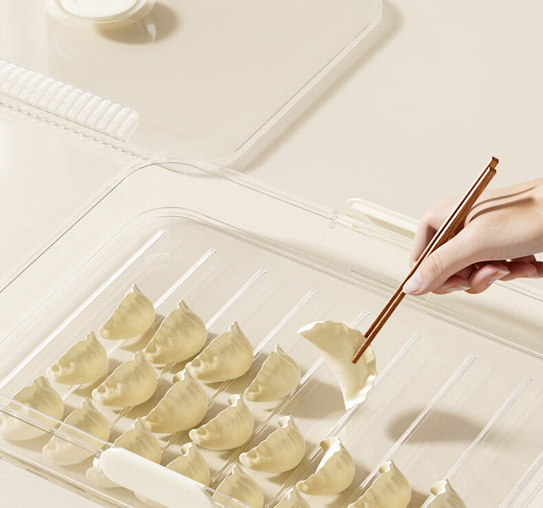 Mangong German quality dumpling storage box dumpling box home kitchen frozen quick-frozen wonton dumplings crisper box refrigerator-tight, one layer and one cover can hold about 70 dumplings, free of charge if frozen.