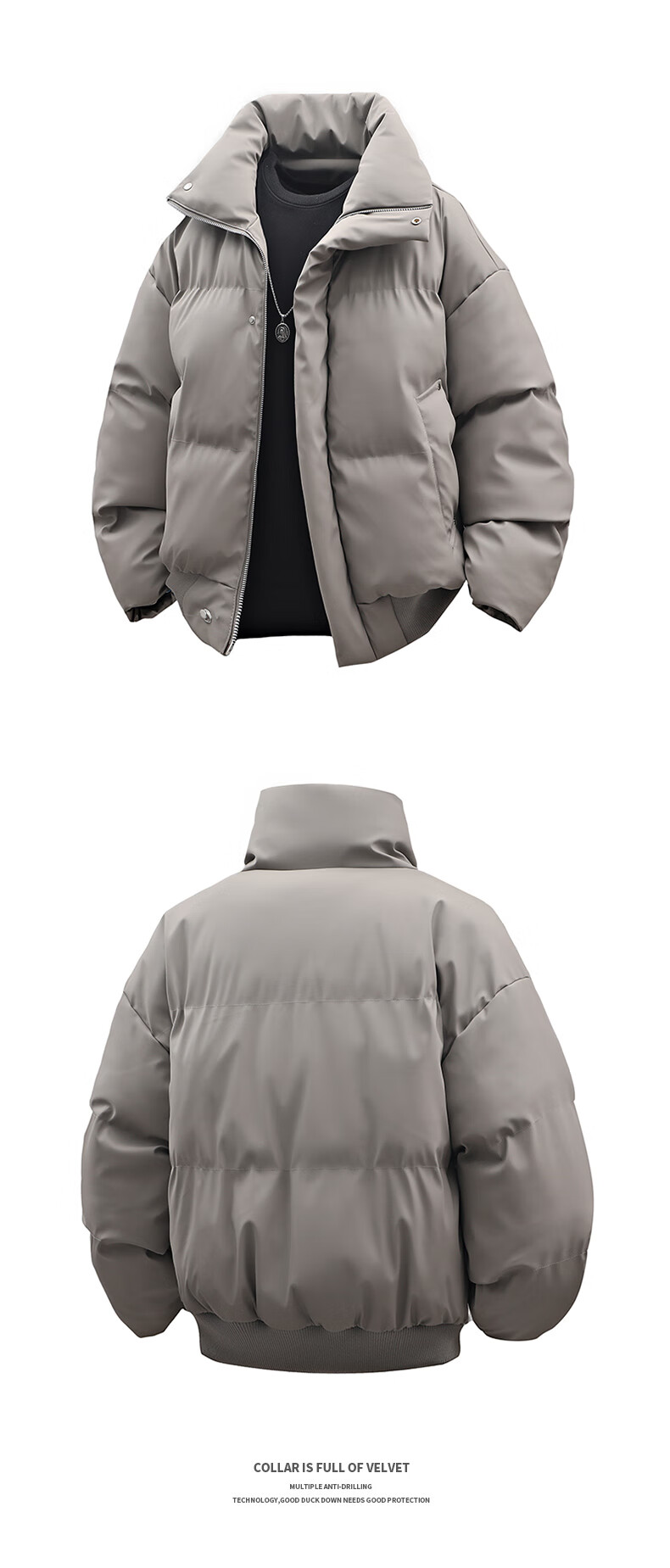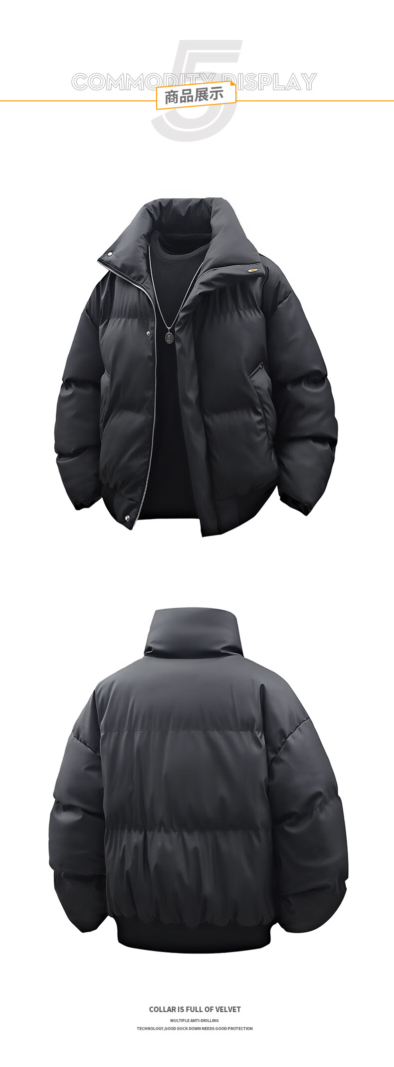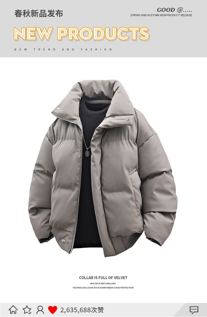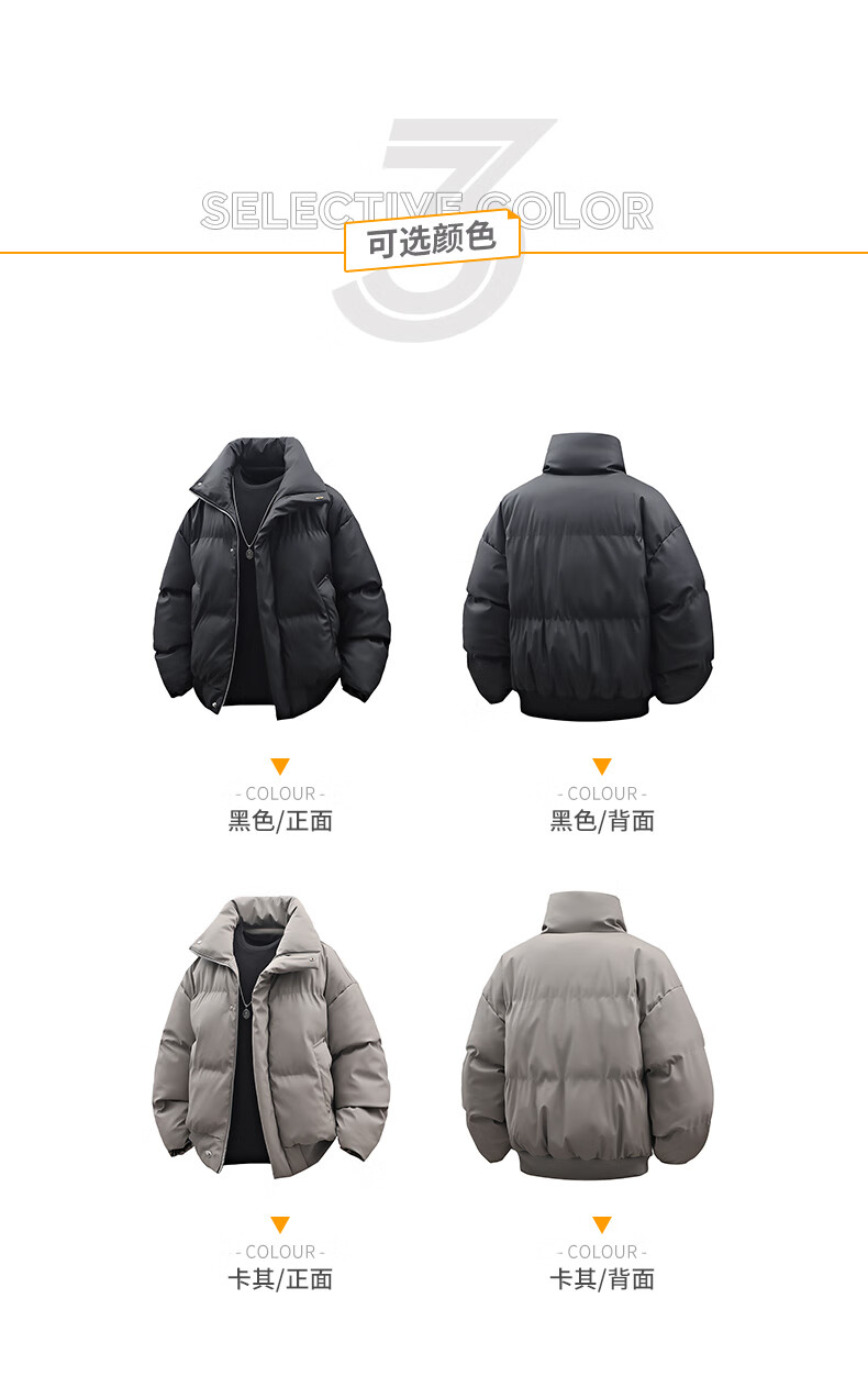 Lapel cotton coat men's autumn and winter trendy versatile warm sports style coat warm bread coat loose cotton coat black 2XL