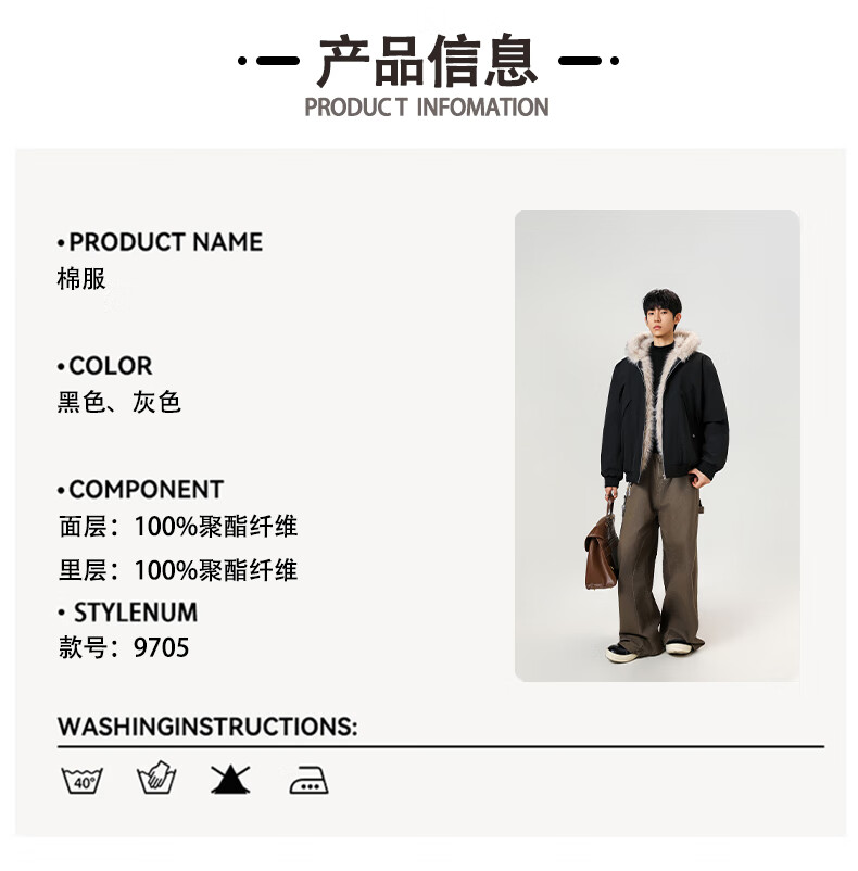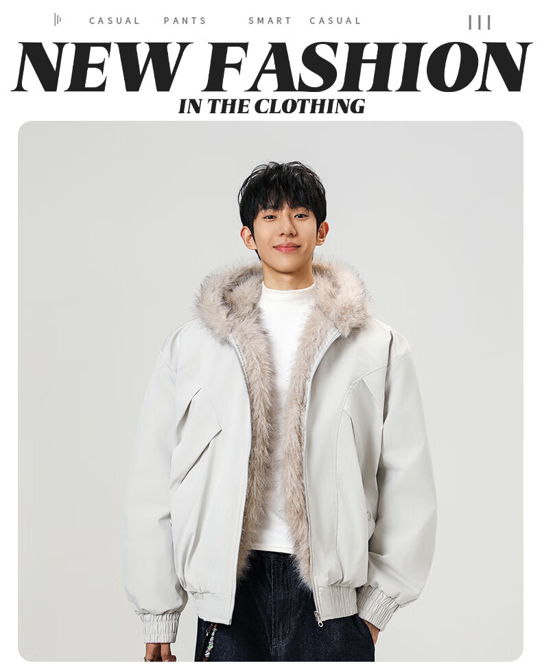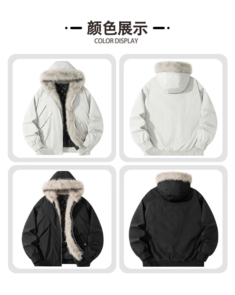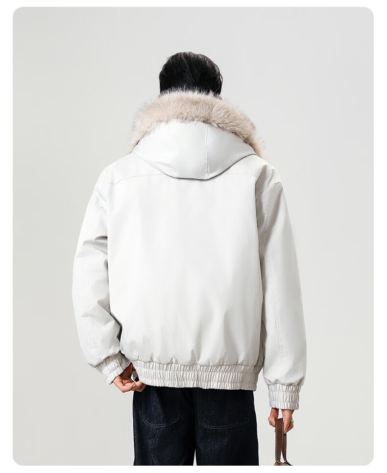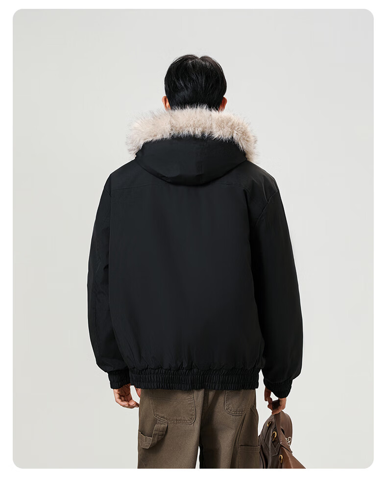 Mountain carving cotton coat fur collar hooded men's autumn and winter loose trendy pleated design warm couple cotton coat khaki 2XL