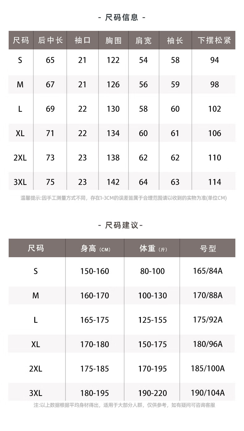 China (cm) 165 / 88-90 170 / 96-98 175 / 108-110 180 / 118-122 185 / 126-130
