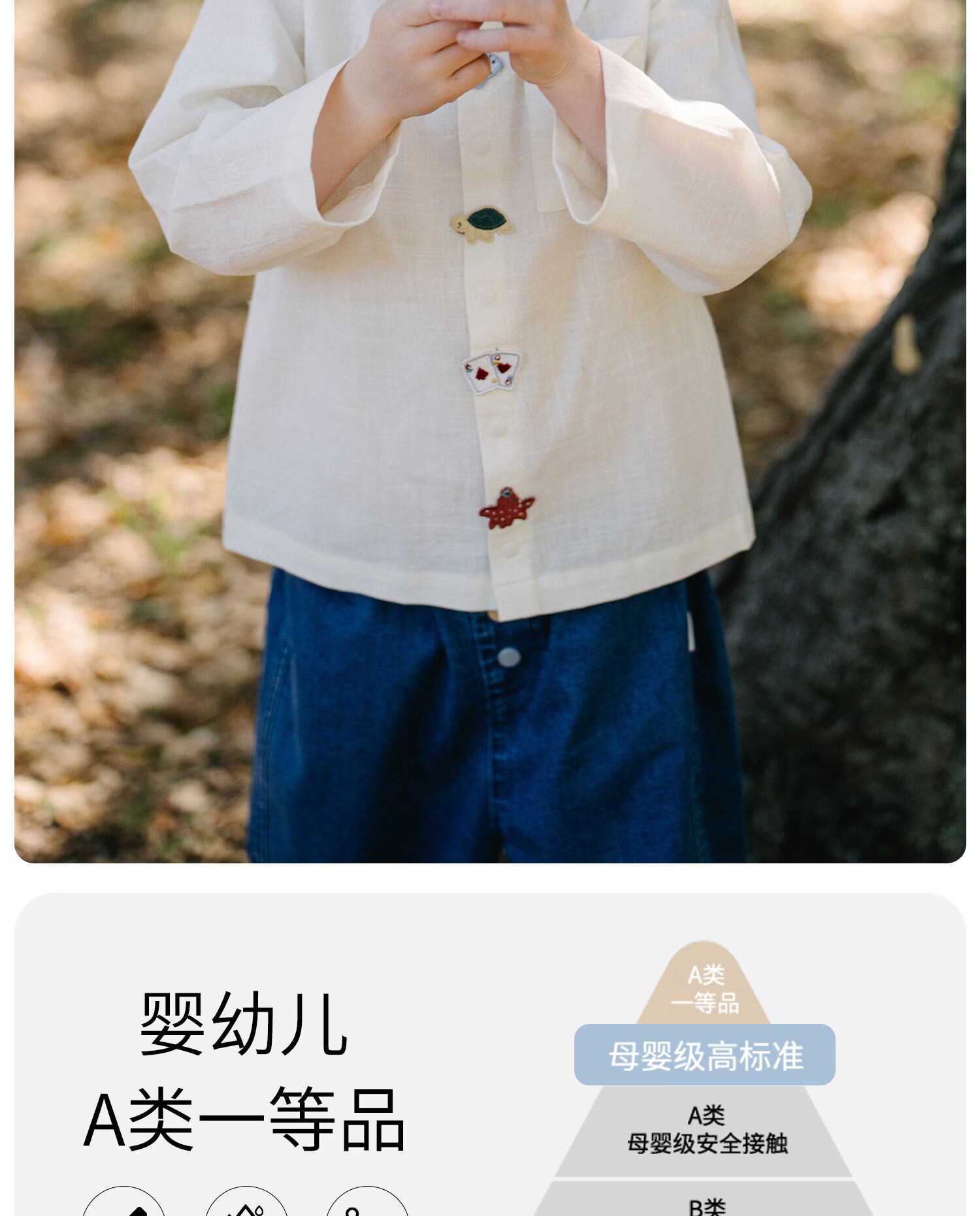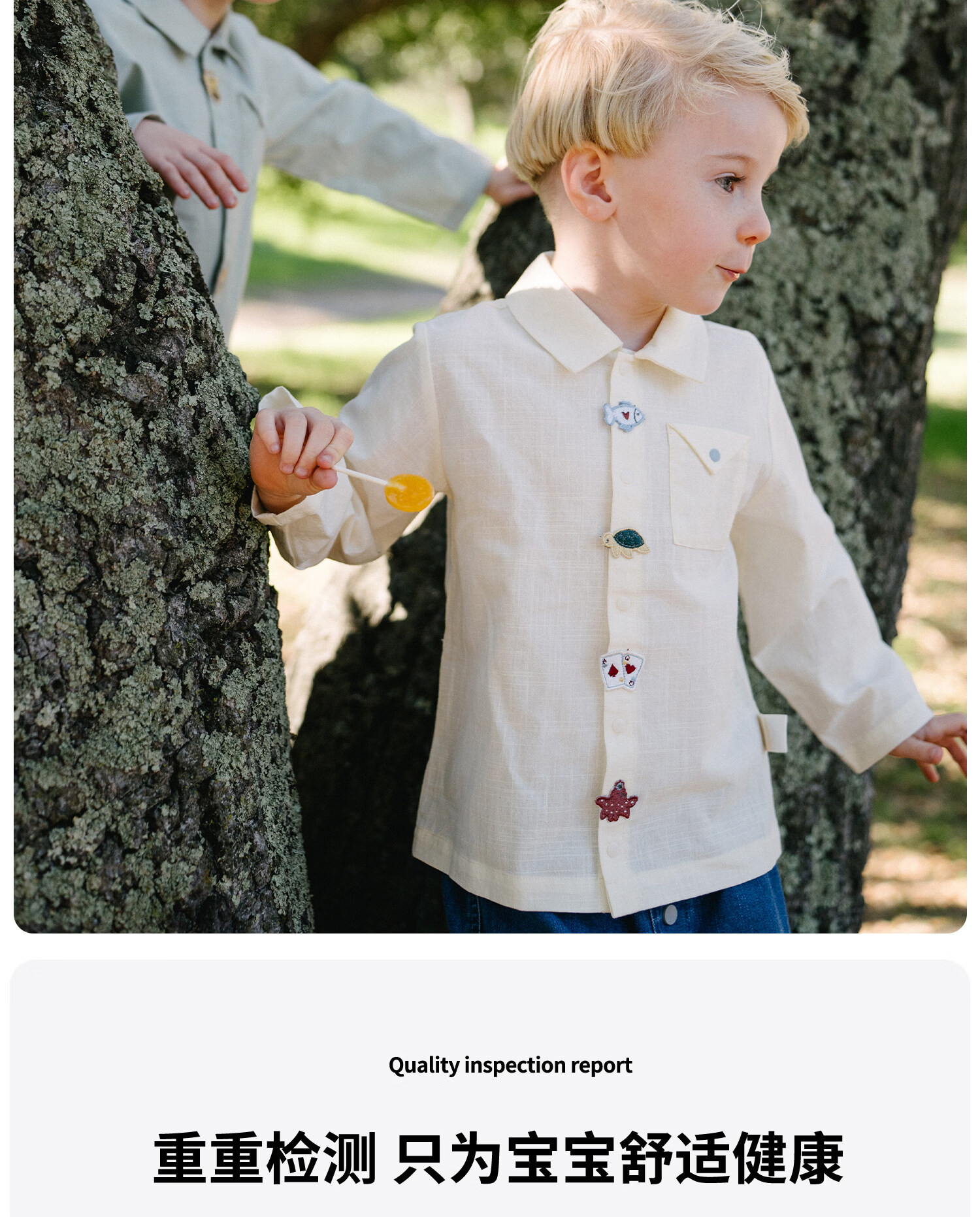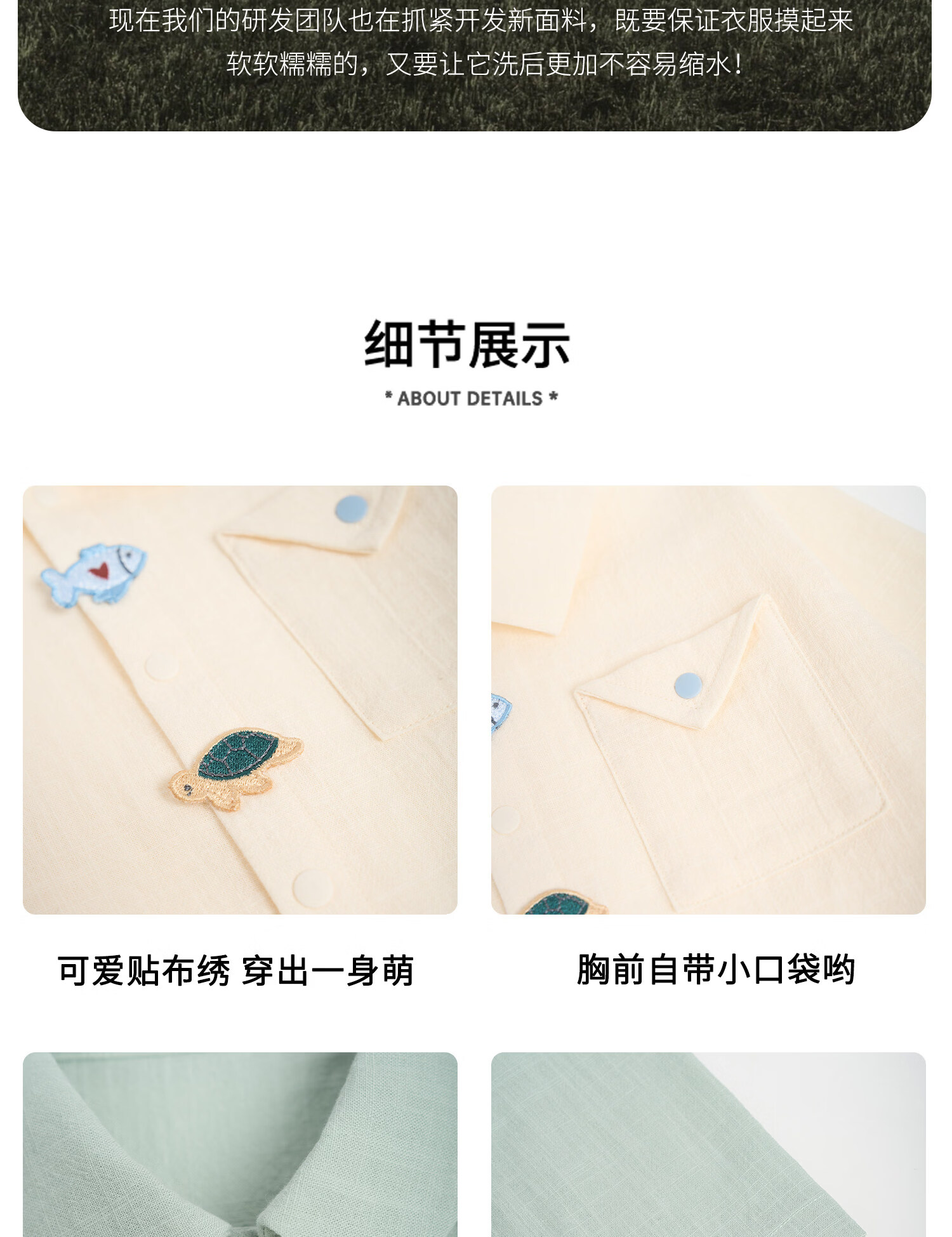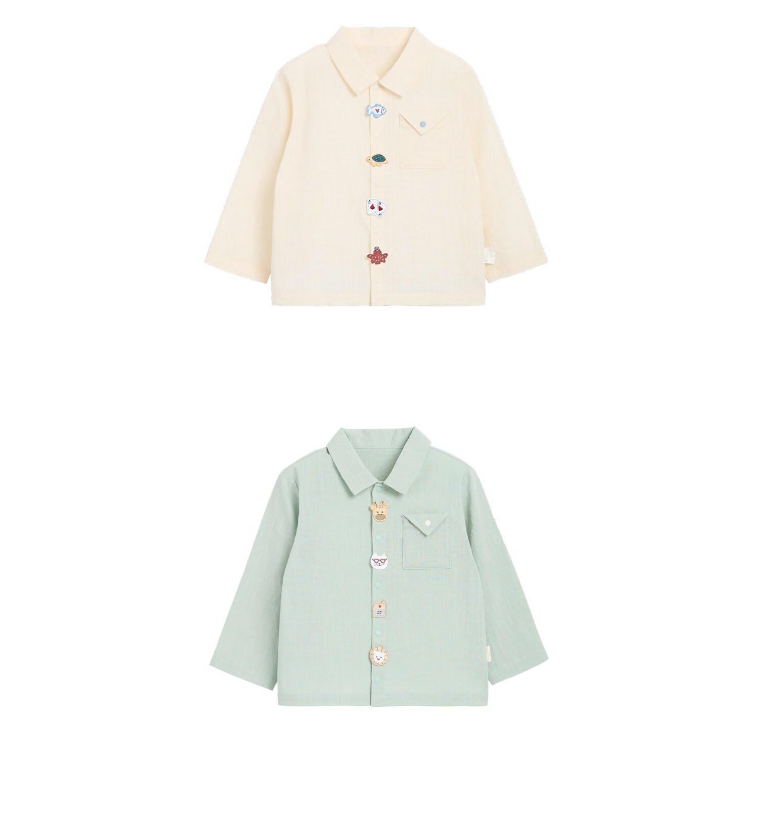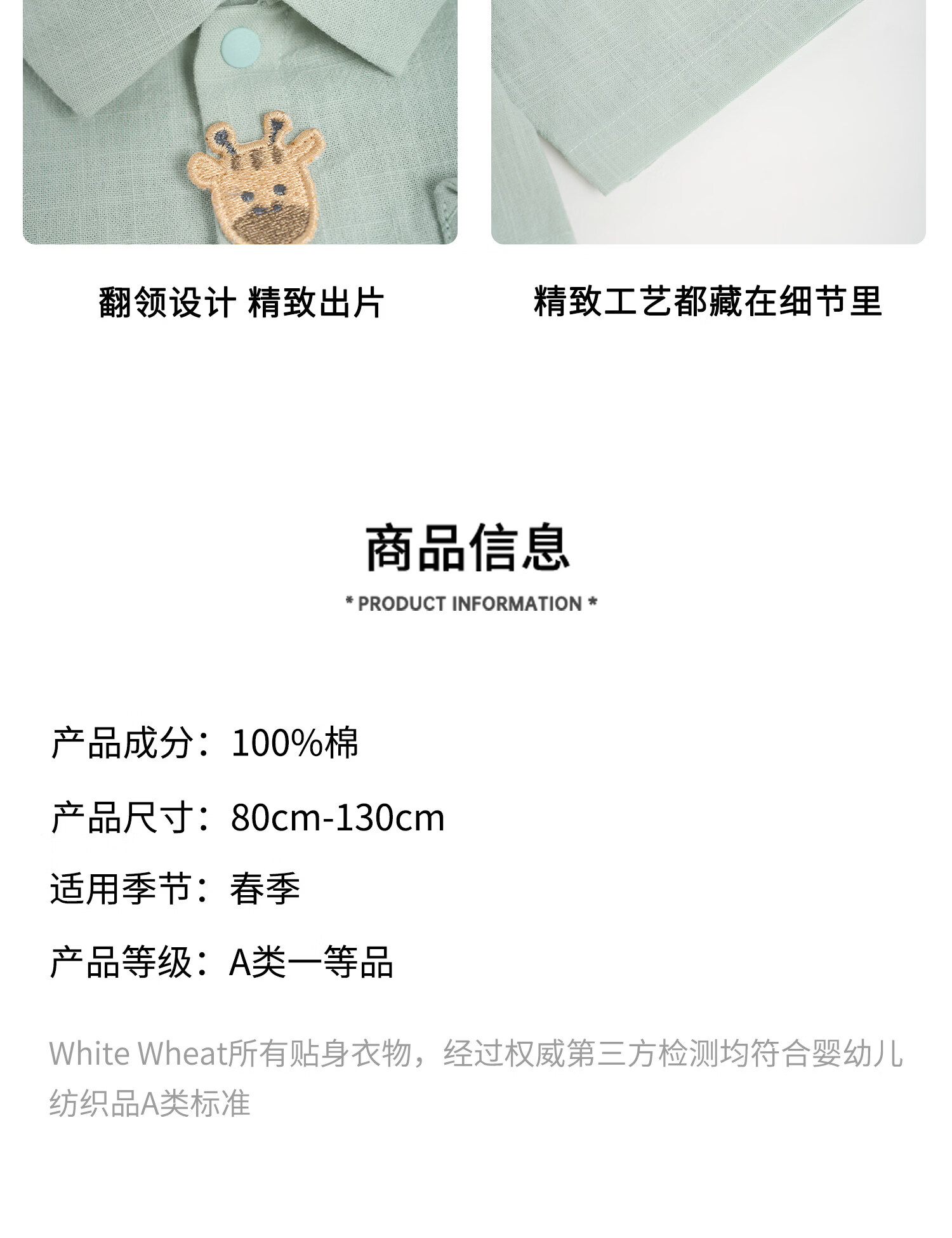 White wheat children's 26 spring new tops for boys and girls cute embroidered logo shirt baby bamboo cotton shirt green 90 cm