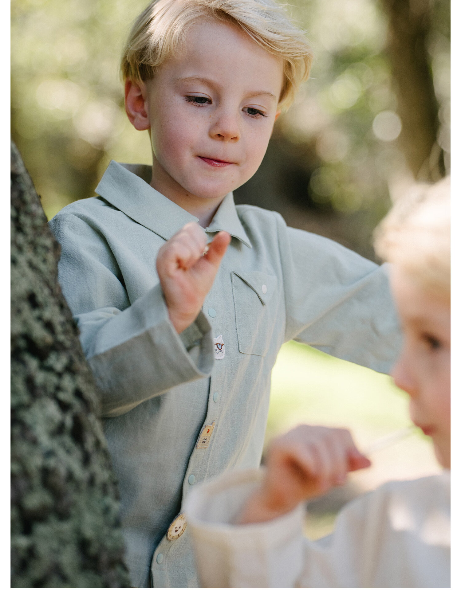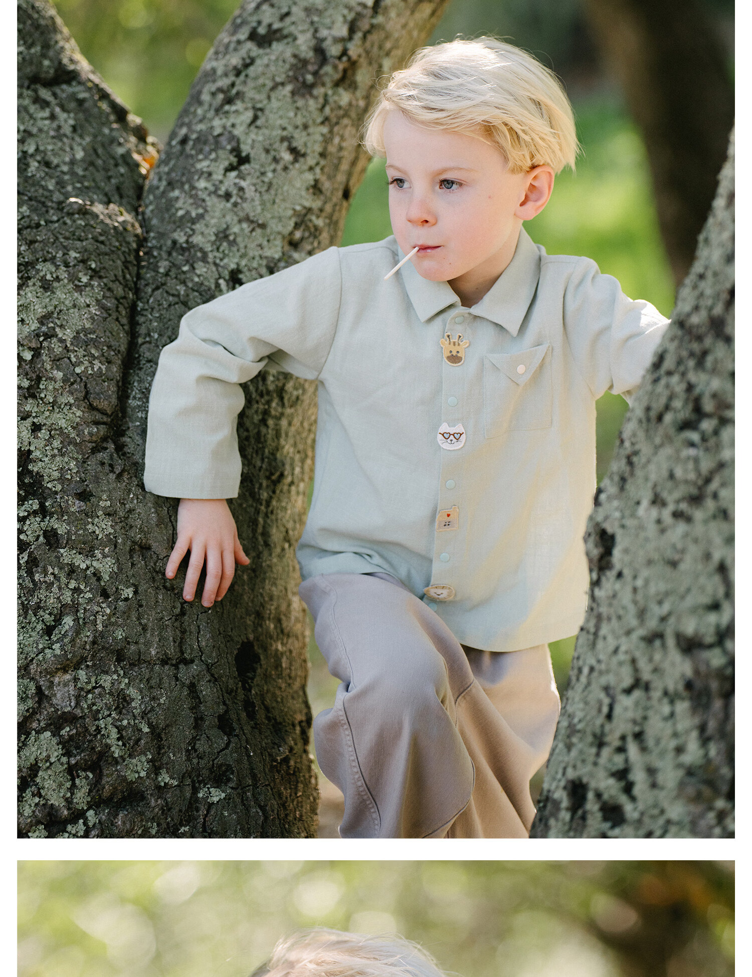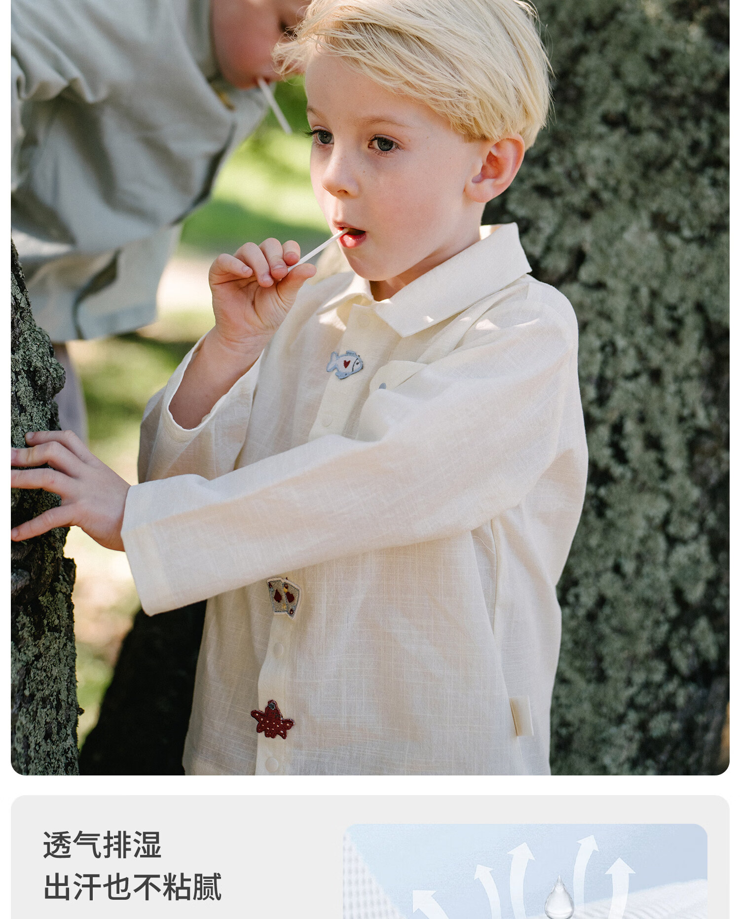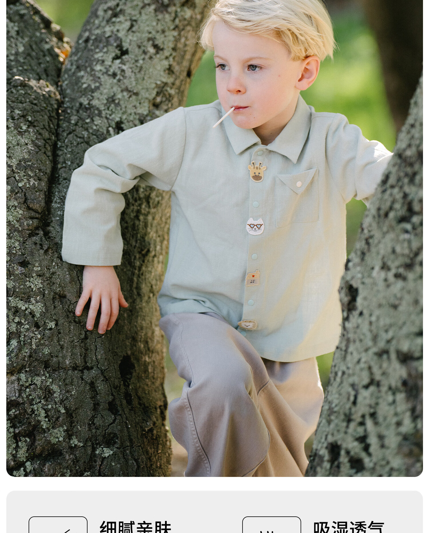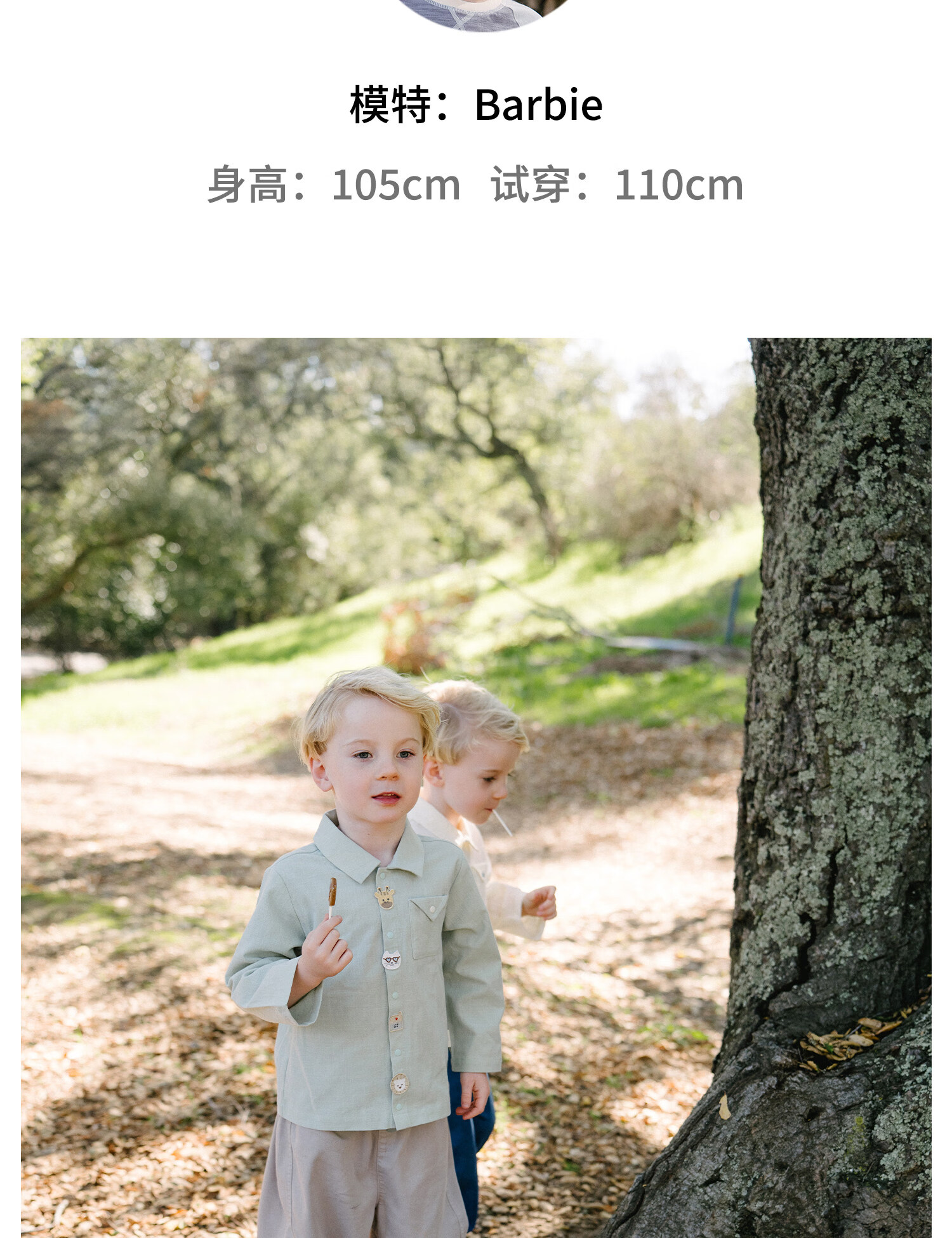 White wheat children's 26 spring new tops for boys and girls cute embroidered logo shirt baby bamboo cotton shirt green 90 cm