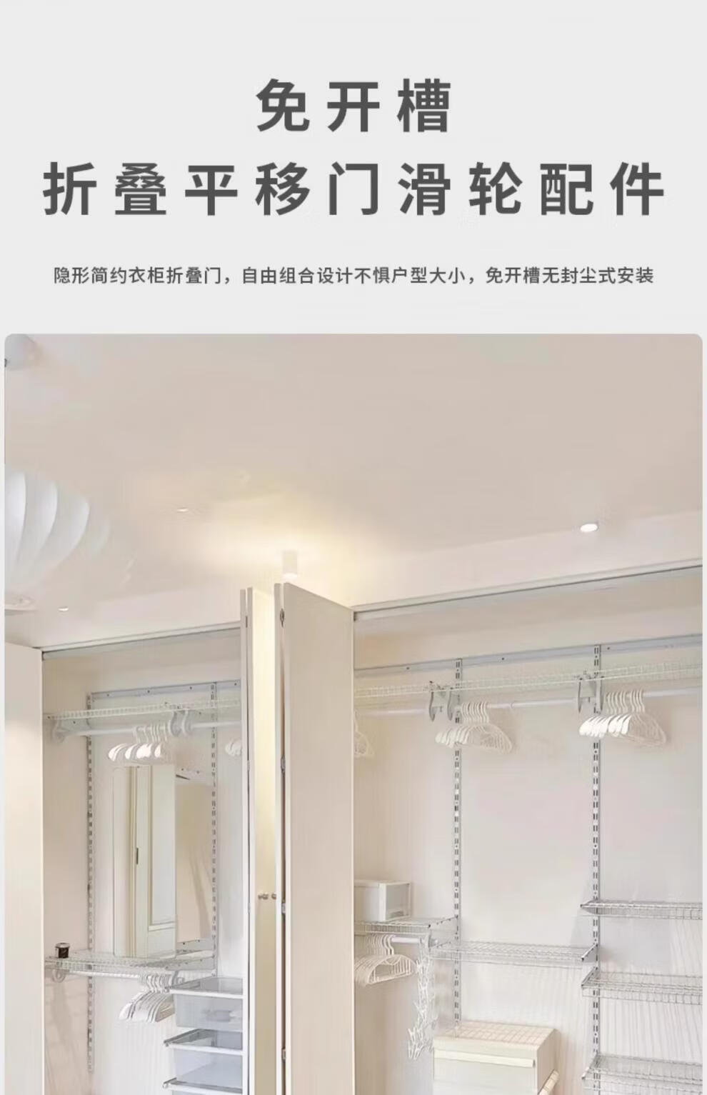 Hejiangong Japanese style wardrobe folding sliding door hanging wheel hardware accessories cloakroom folding sliding cabinet door pulley track complete set 3 meters upper and lower rails + 40% off 8 door accessories (buffer hinge type)