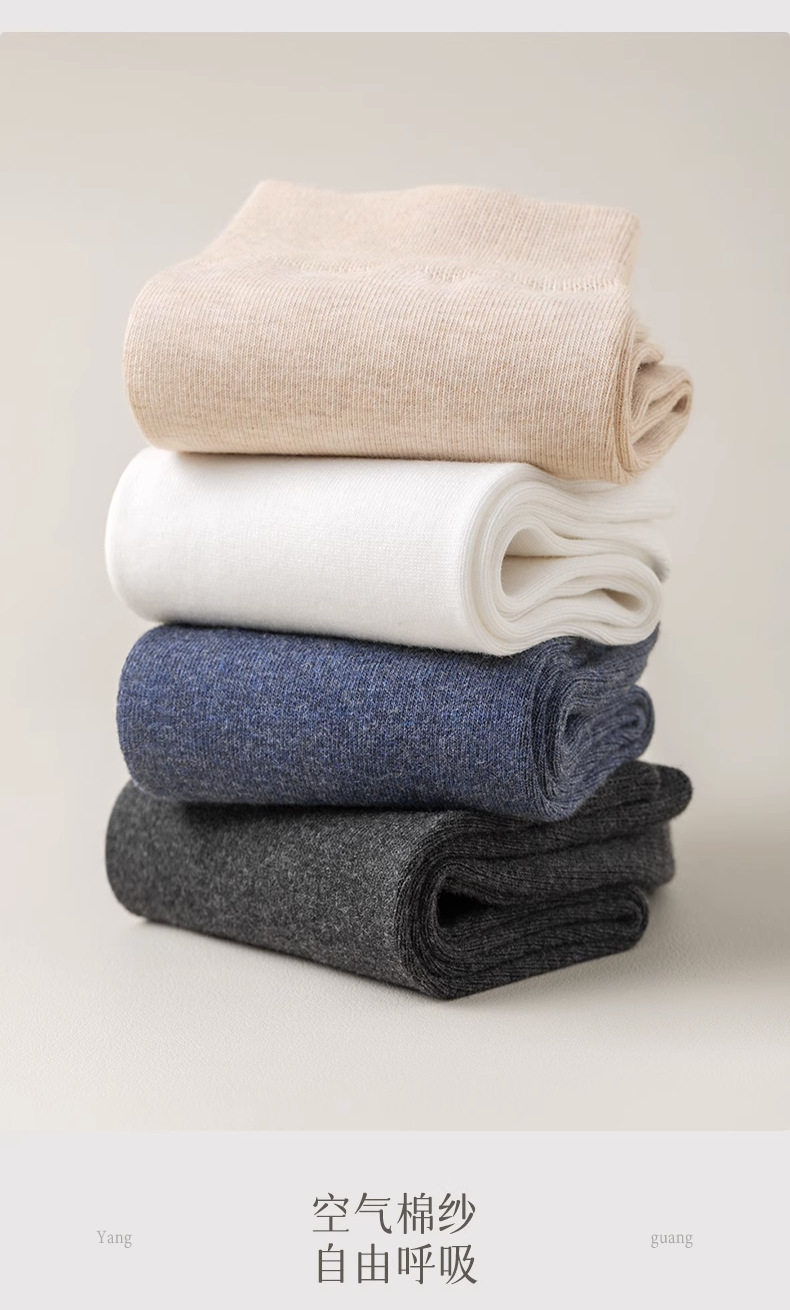 MUJI Premium Japan Direct Solid Color Cotton Socks Winter Warm Socks Deodorant Sweat Absorbent Duty Free Business Men's Socks Long Cotton Socks MUJI Black_ 5 Pairs One Size