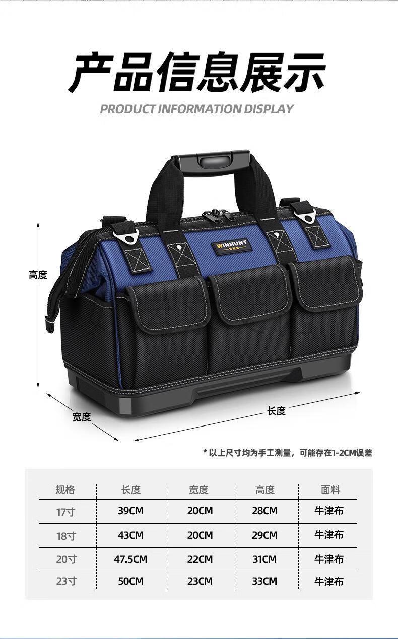 Sailoto multifunctional portable tool bag, strong and durable electrician canvas thickened woodworking tool bag repair, dark blue plastic base plate 17 inches