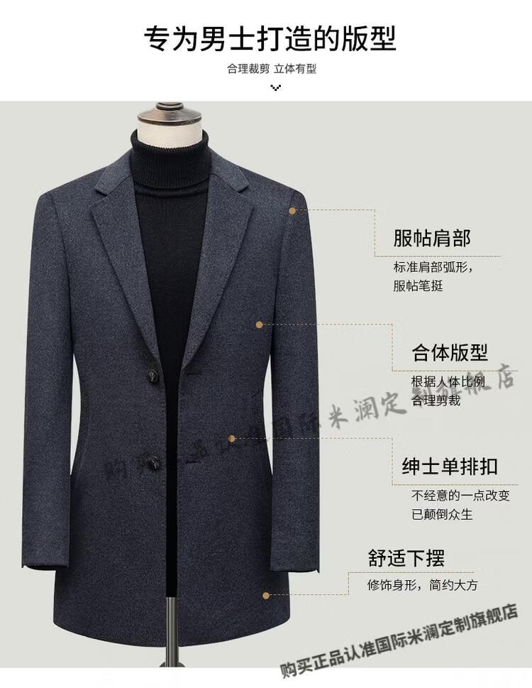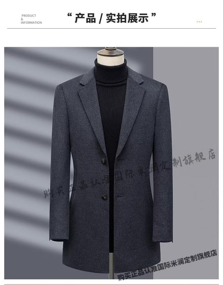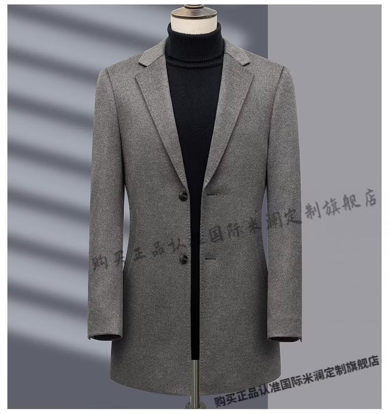 International Milan high-end double-sided woolen cashmere coat men's mid-length middle-aged business casual suit collar woolen windbreaker jacket for men SJ9991-mixed gray cashmere + sheep wool + mulberry silk XL men's high-end cashmere woolen coat 180 yards - recommended 130-155Jin Jin equals 0.5 kg
