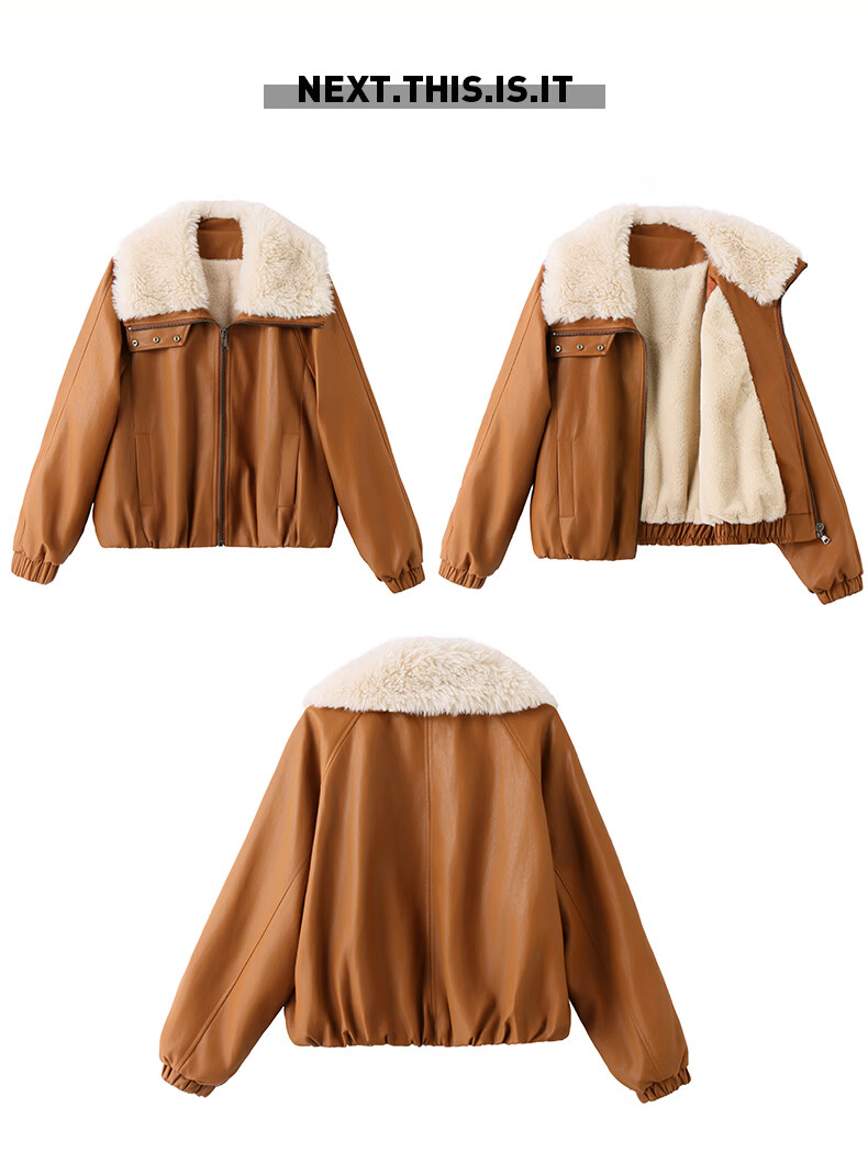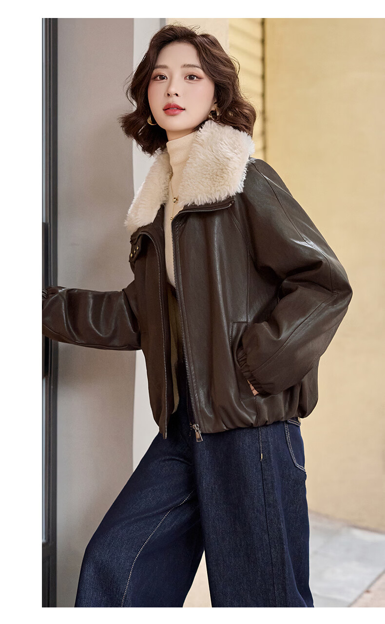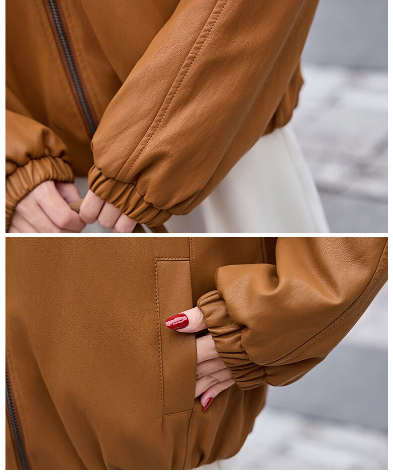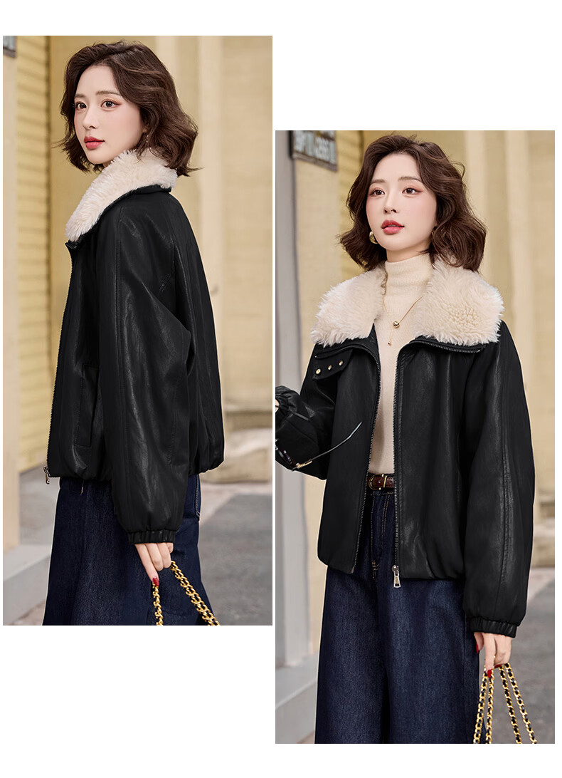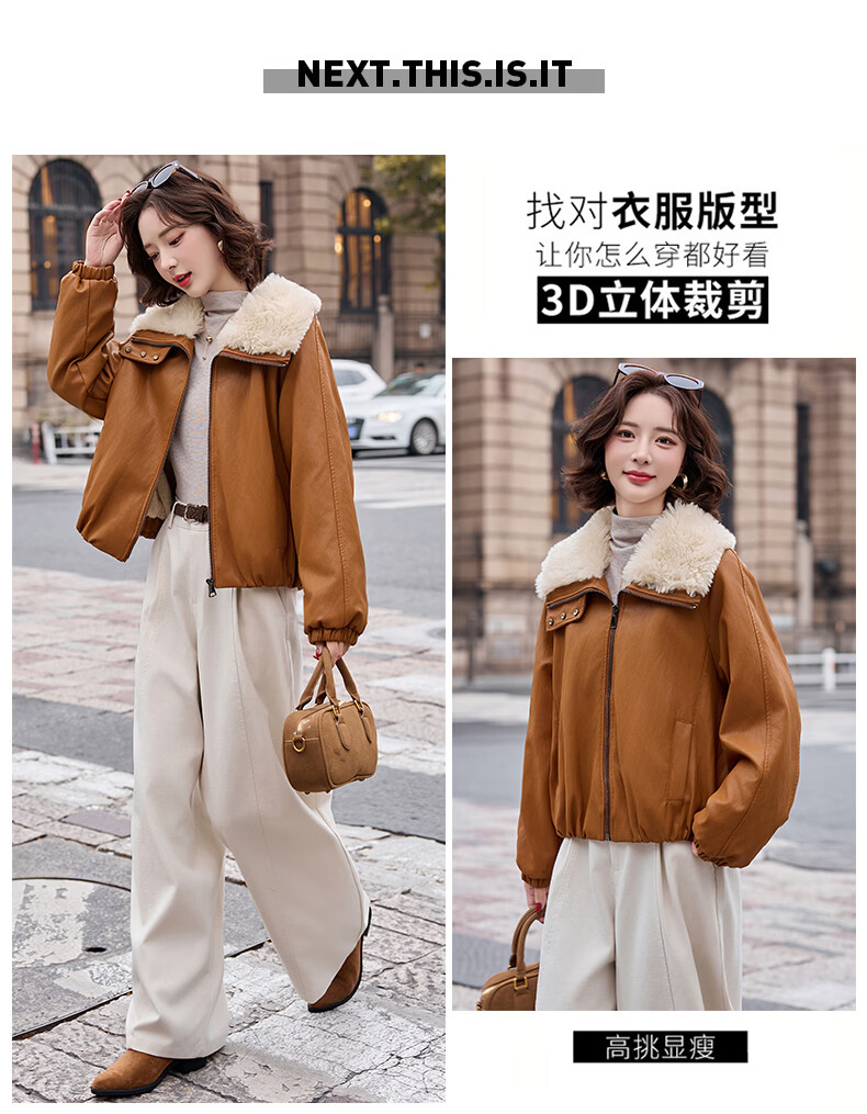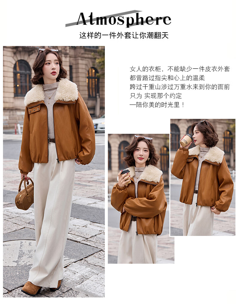 Chuxin velvet thickened PU leather jacket women's short 2025 winter new style women's retro style warm high-end jacket coffee color (velvet thickened) M