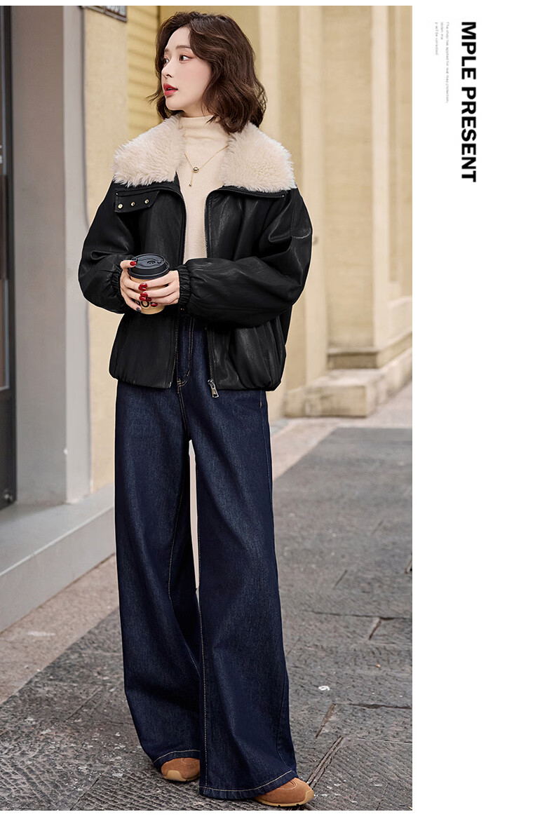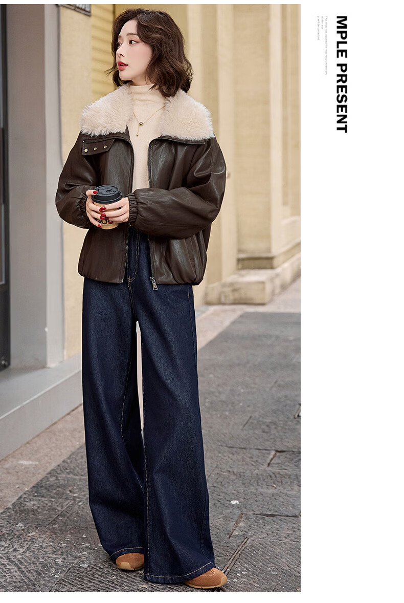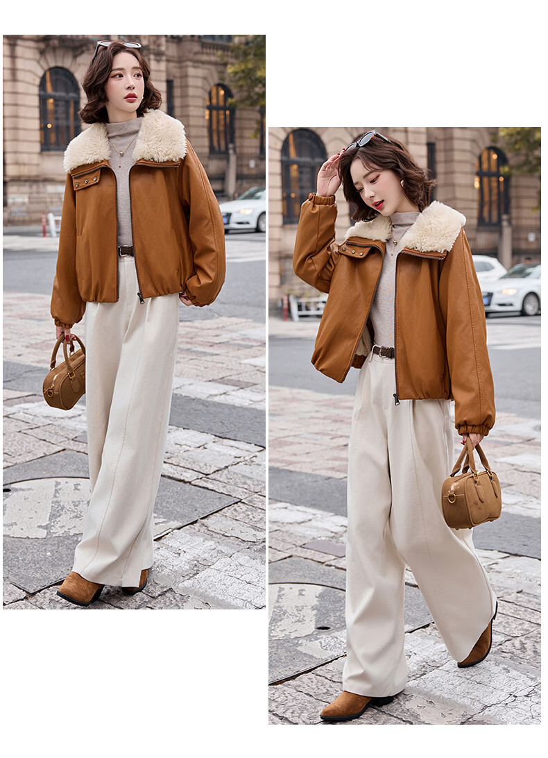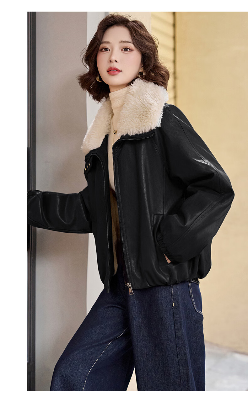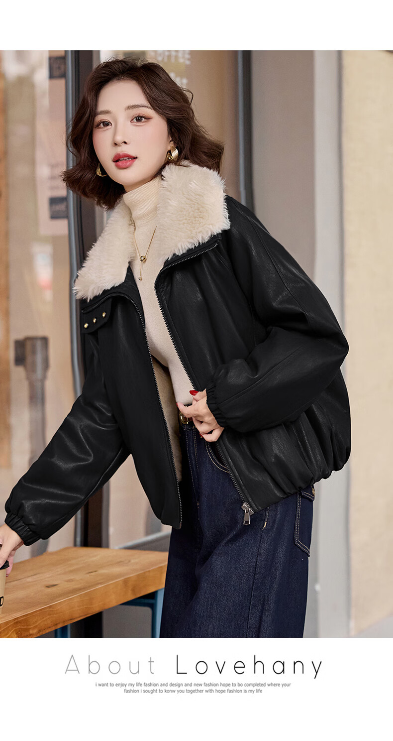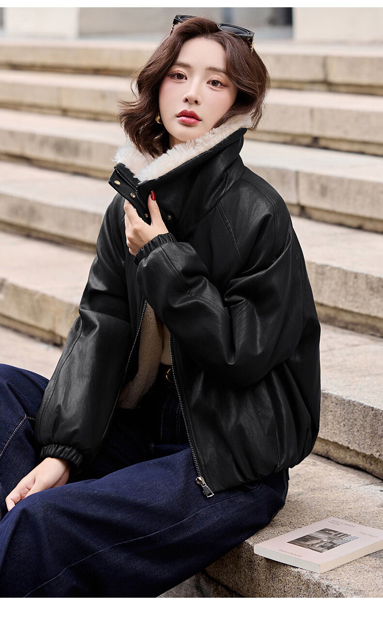 Chuxin velvet thickened PU leather jacket women's short 2025 winter new style women's retro style warm high-end jacket coffee color (velvet thickened) M