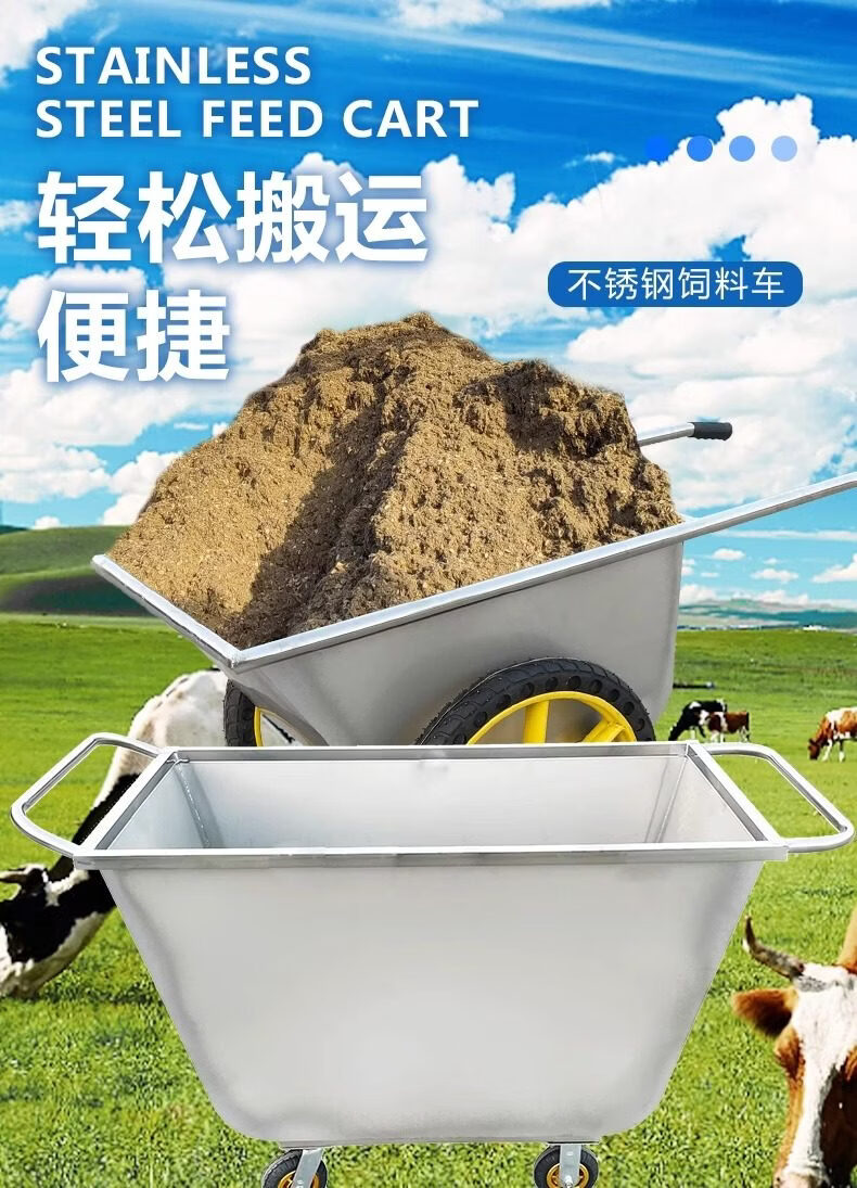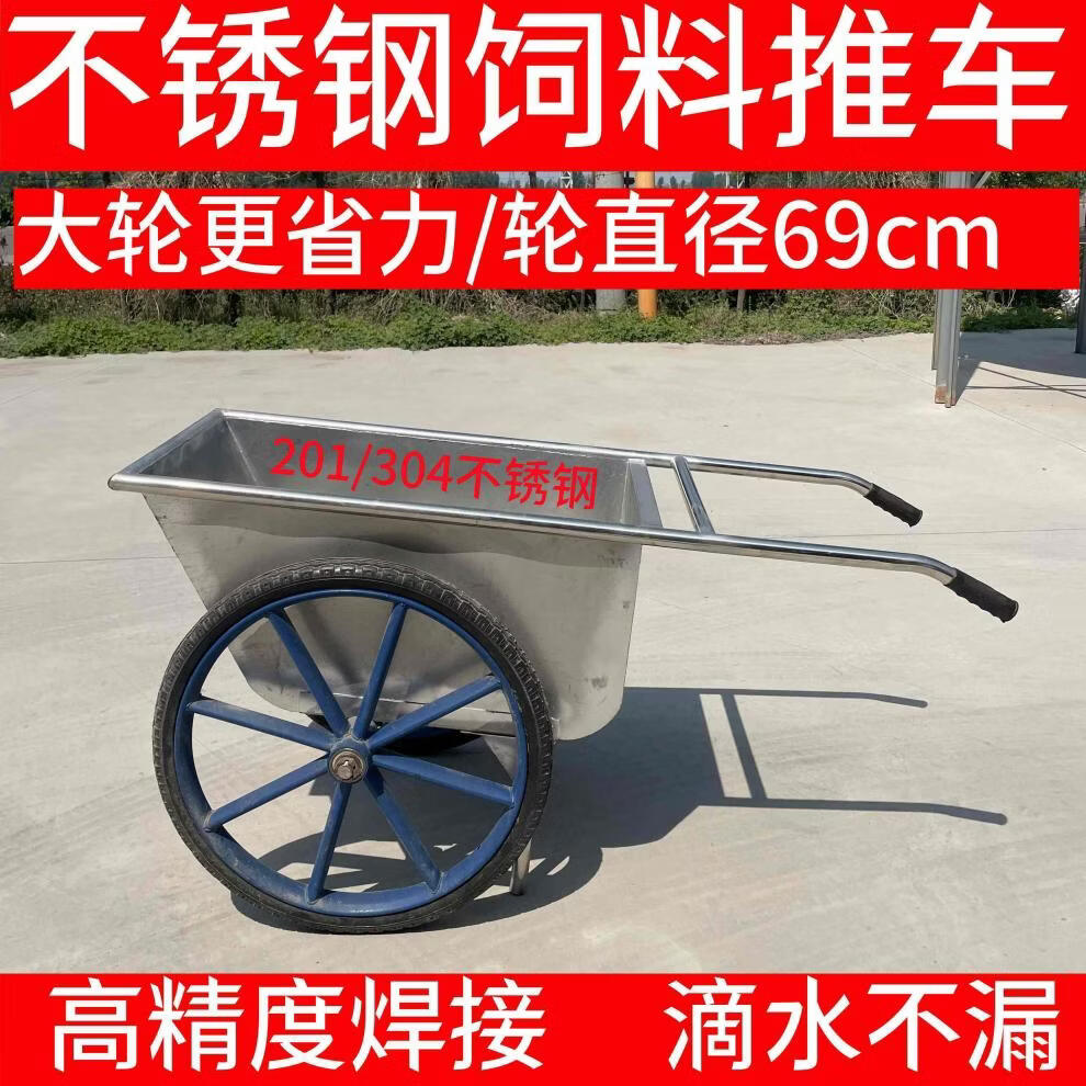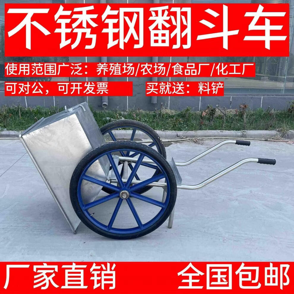 Yusenyi Stainless Steel Dumper Truck Two-wheel Bucket Trolley Farm Feed Trolley Push Cart Material Transport Trolley 304 Stainless Steel Small Bucket Truck (1.0)