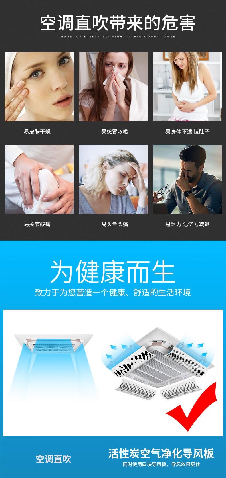 Air conditioner windshield, air conditioner outlet windshield, anti-direct blow ceiling ceiling machine universal wind deflector, complete set of 4 pieces, purification style 53CM