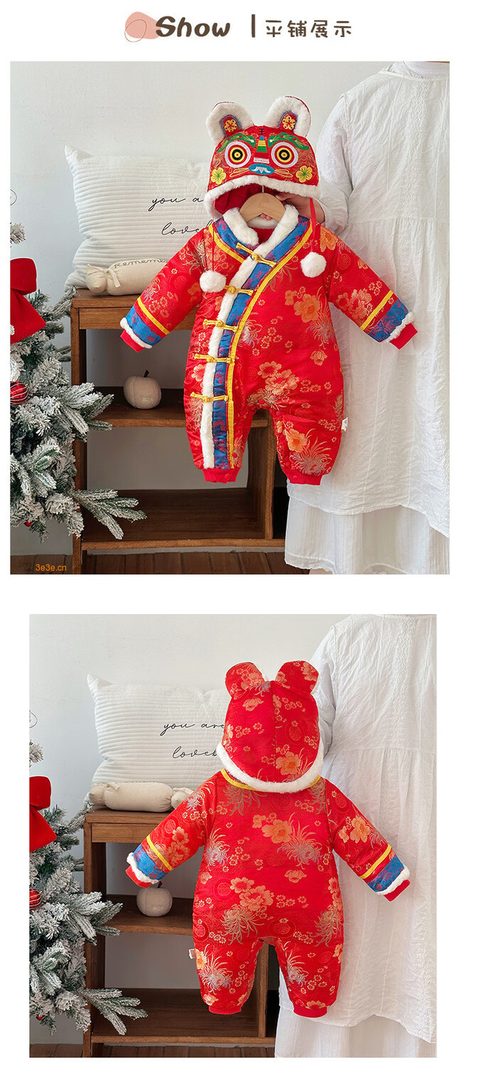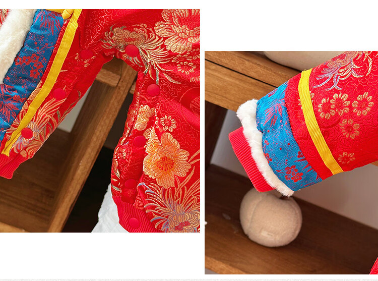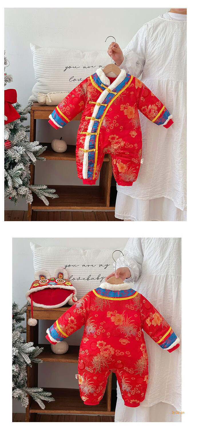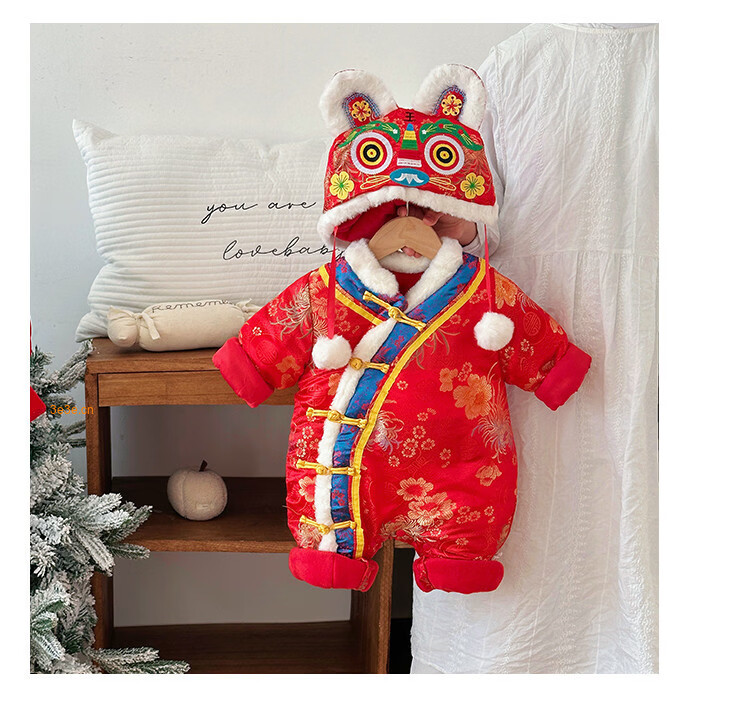 G.duck Little Yellow Duck Children's Wear Baby Weekly Clothes Thickened and Warm Winter Clothes Newborn Onesies Full Moon Chinese Style Romper Suit Red 90cm