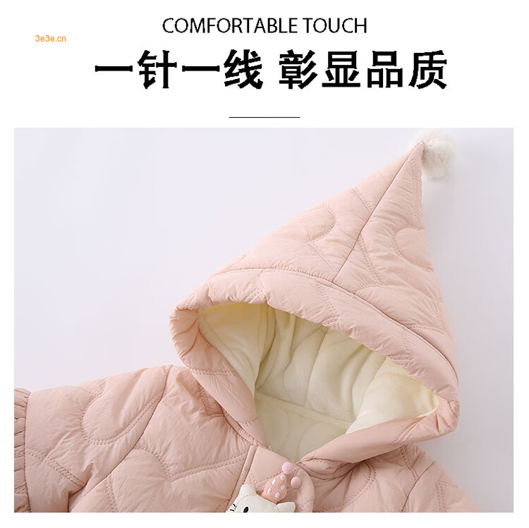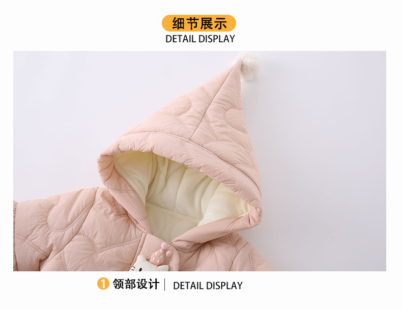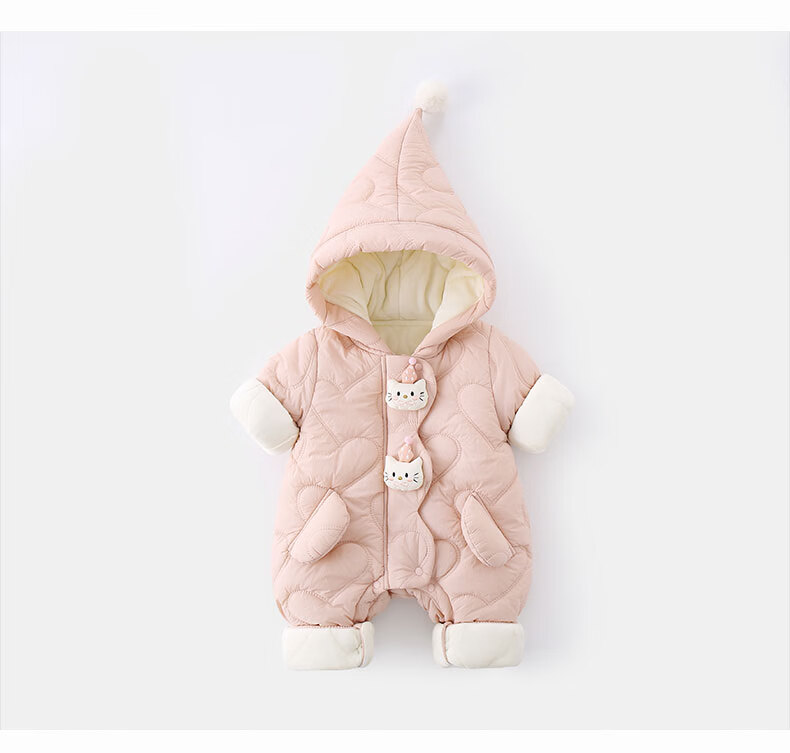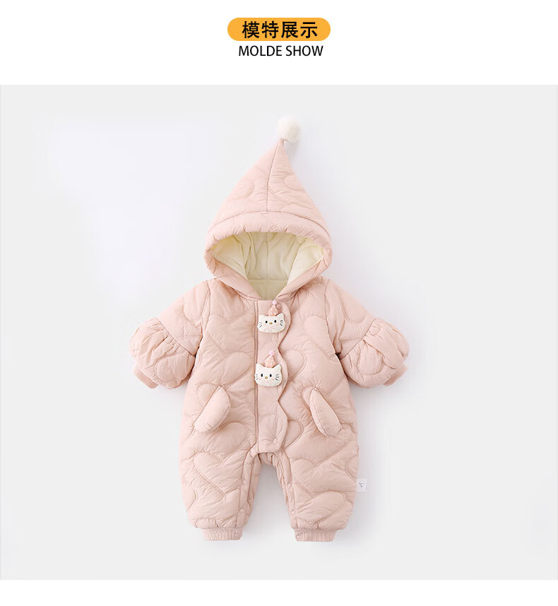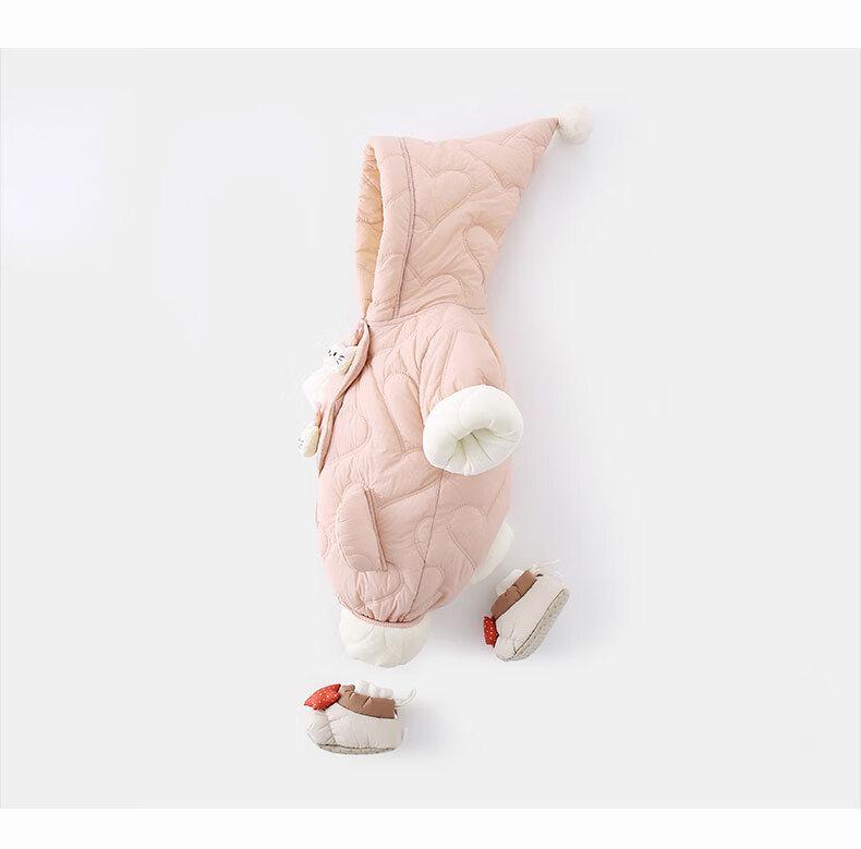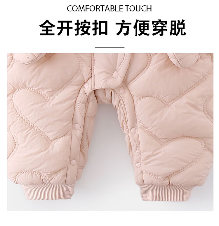 G.duck little yellow duck children's clothing baby clothes plus velvet thickening warm clothes newborn winter jumpsuit full moon climbing suit pink 66cm