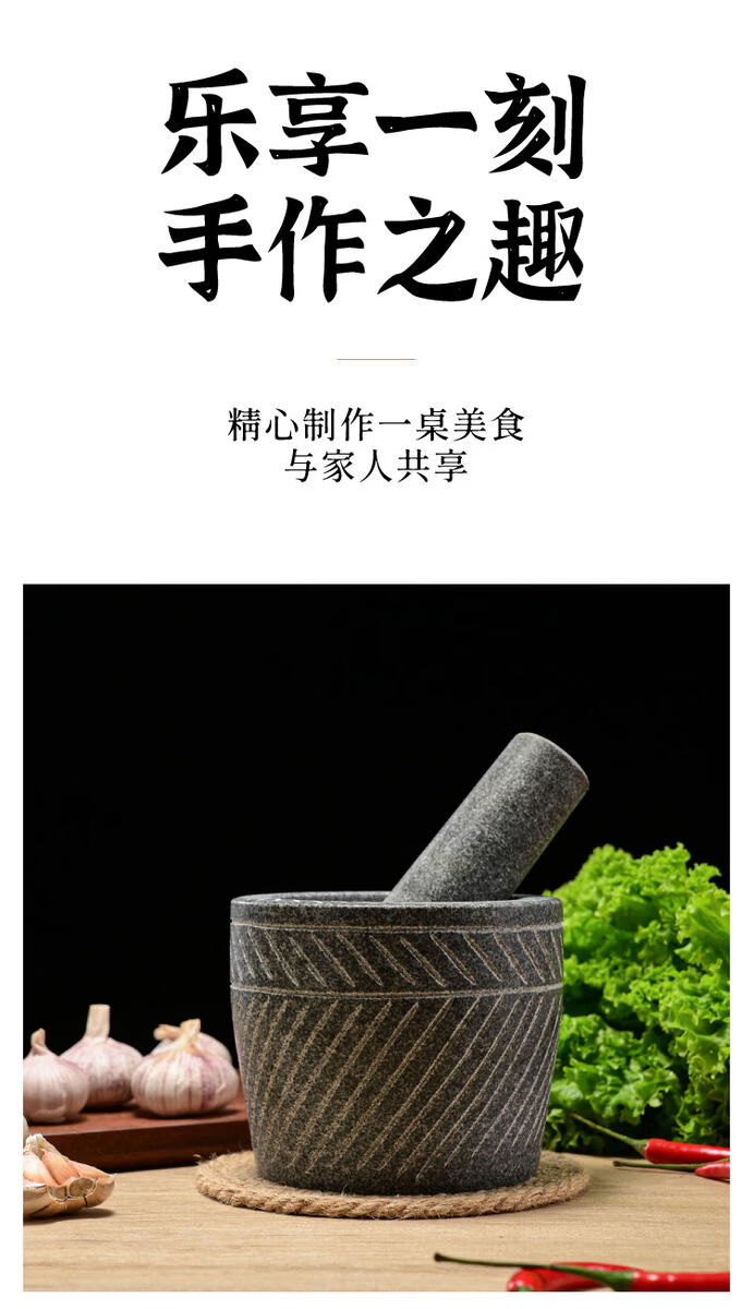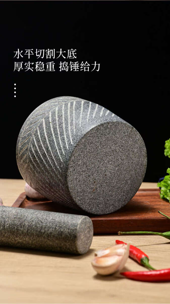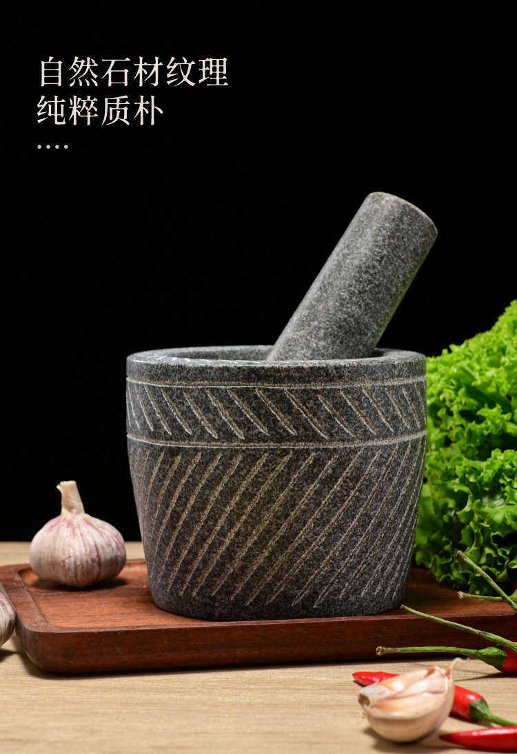 Fantasy stone stone mortar grinder large garlic press medicine jar garlic press carved model diameter 25 cm hand carved with wooden hammer