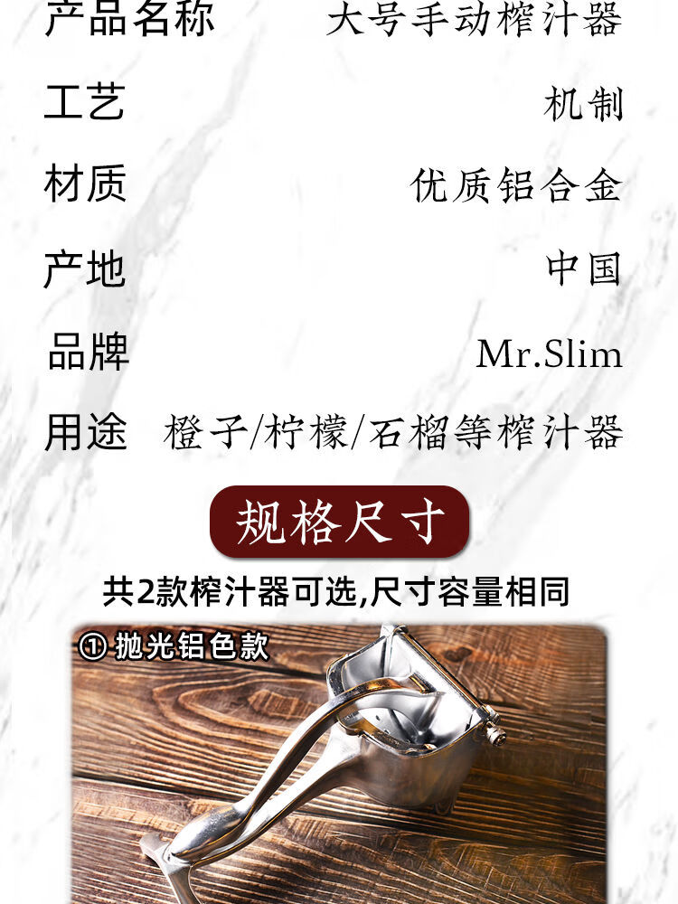Aluminum alloy detachable manual lemon juicer orange juicer lemon clip orange juice juicer matte black-large juicer