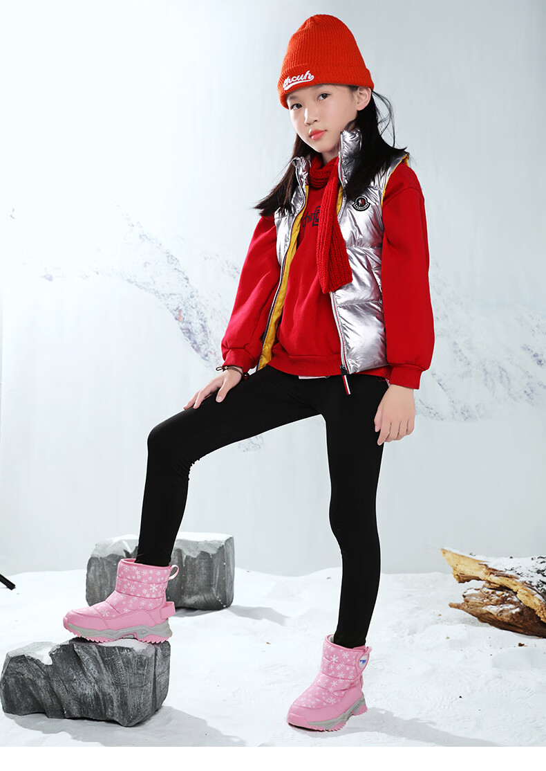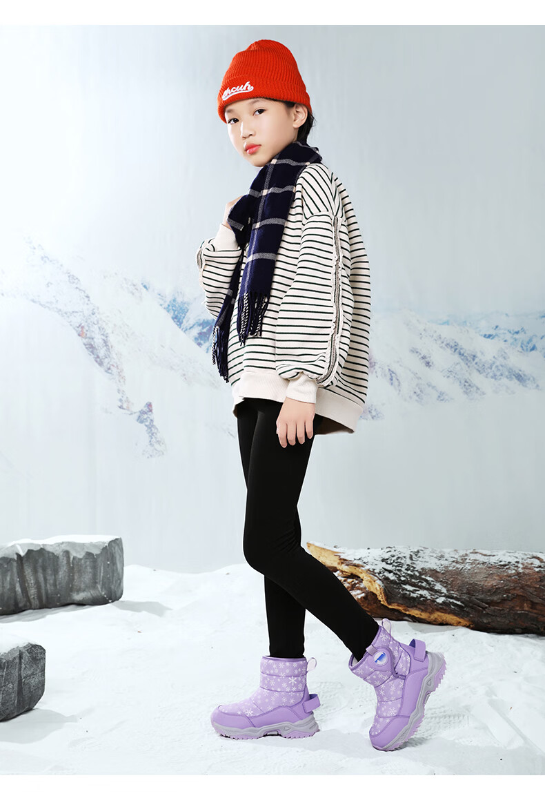 Chiyun girls' snow boots with fur integrated Northeast cold-resistant plus velvet to keep warm for middle-aged and older children high cotton boots winter 2026 Mi Ju 26