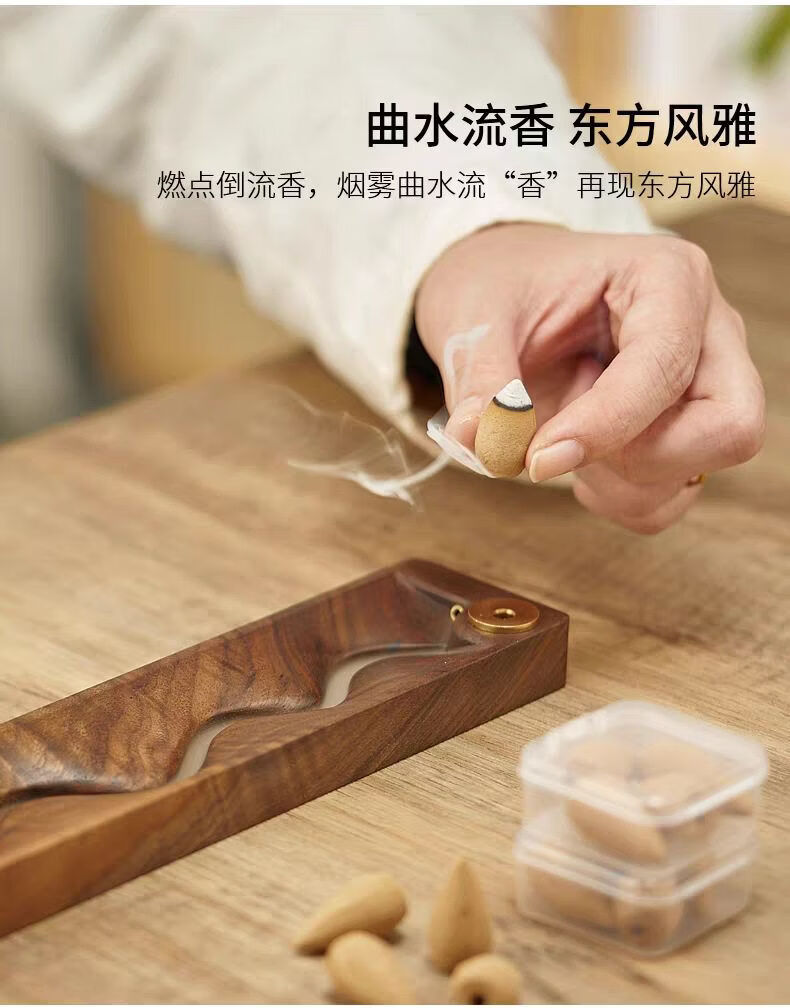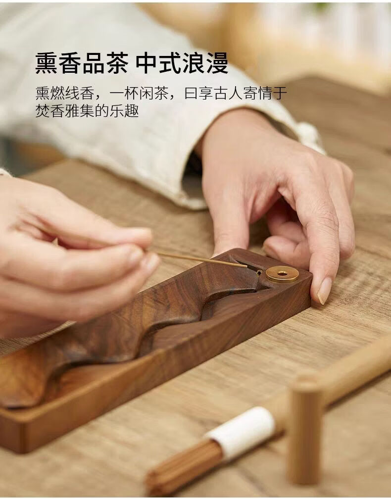 Shantou Lincun Sandalwood Thread Incense Burner Wooden Backflow Incense Burner Incense Holder Stop Cloud Quze_Dual-purpose Stove_Line_Backflow