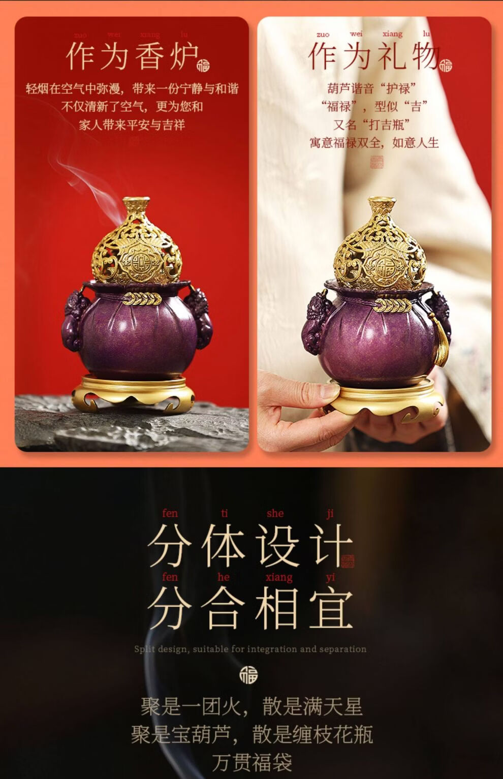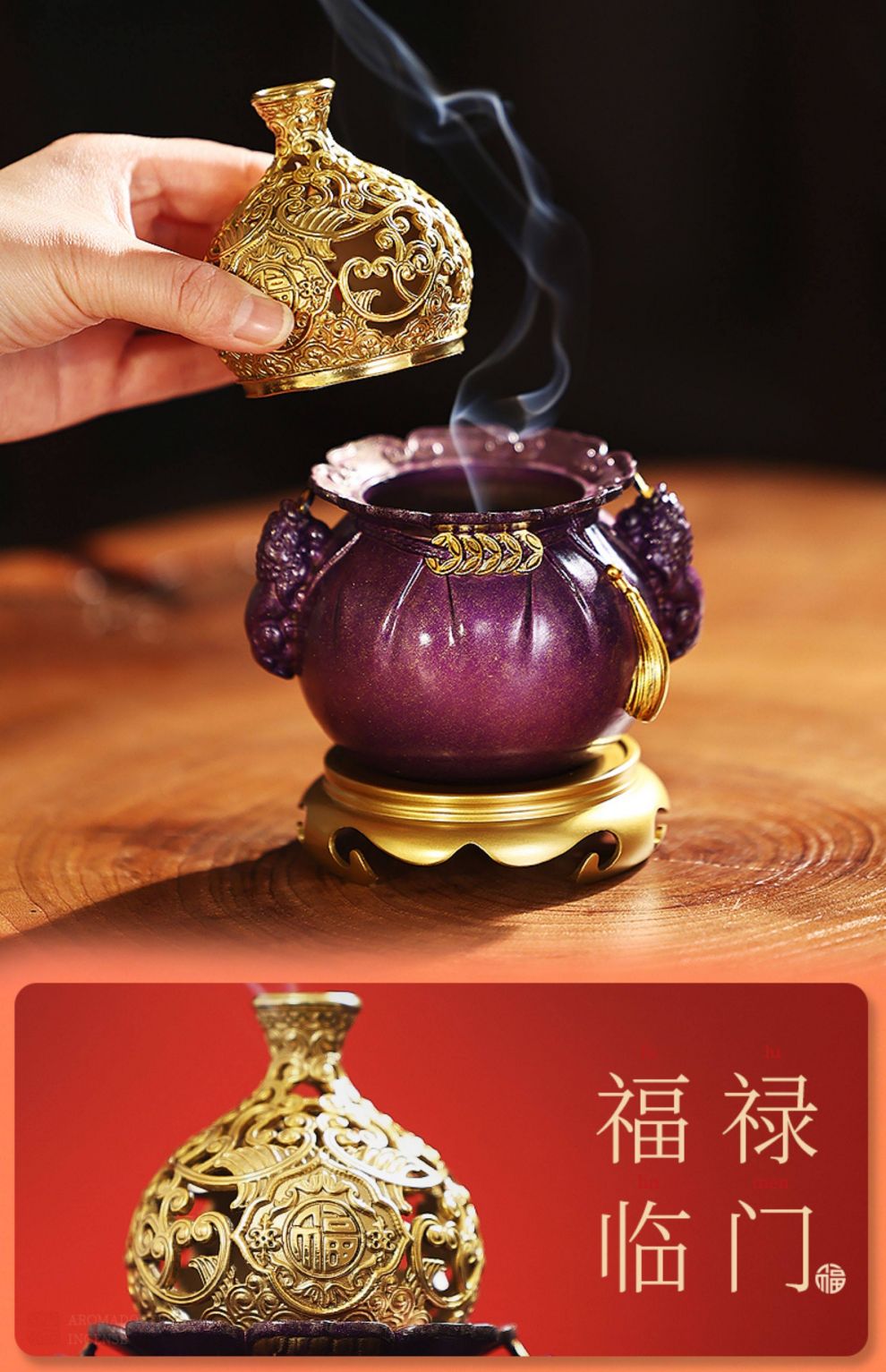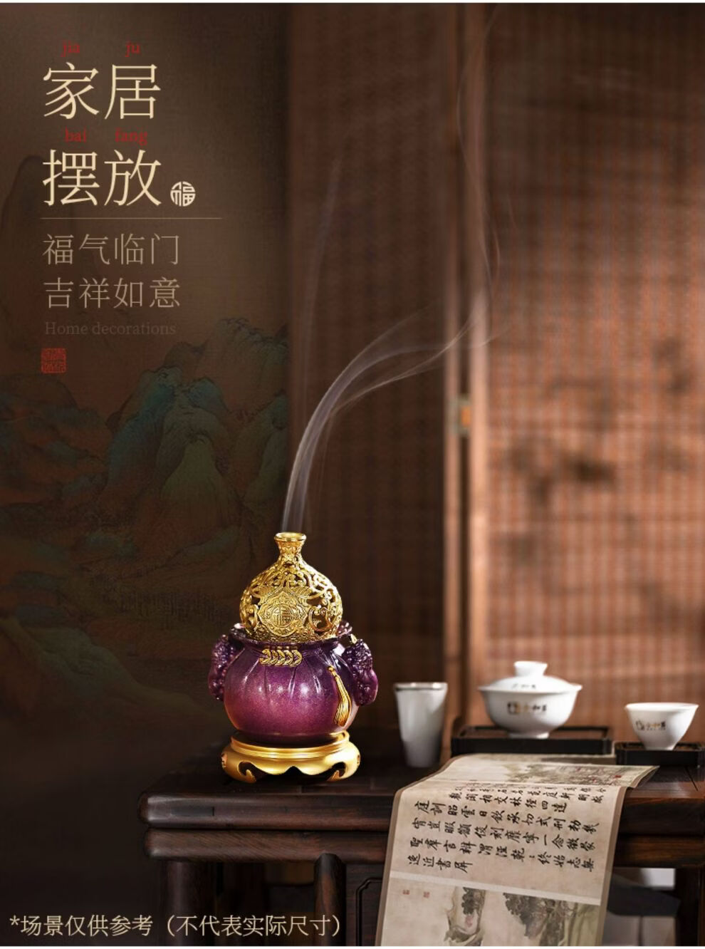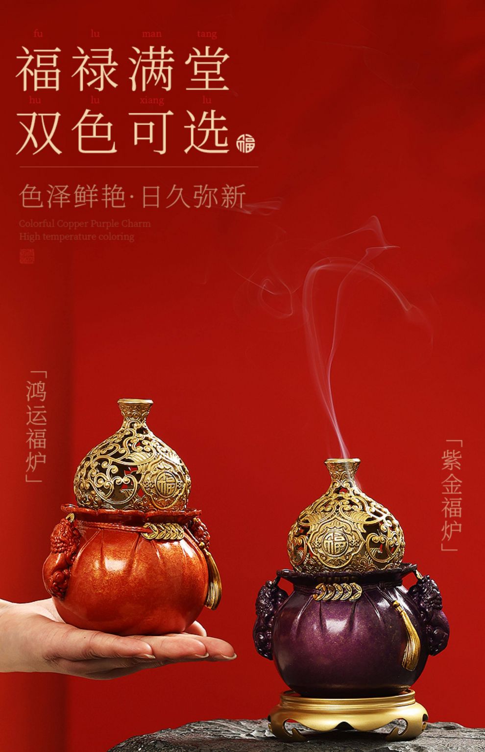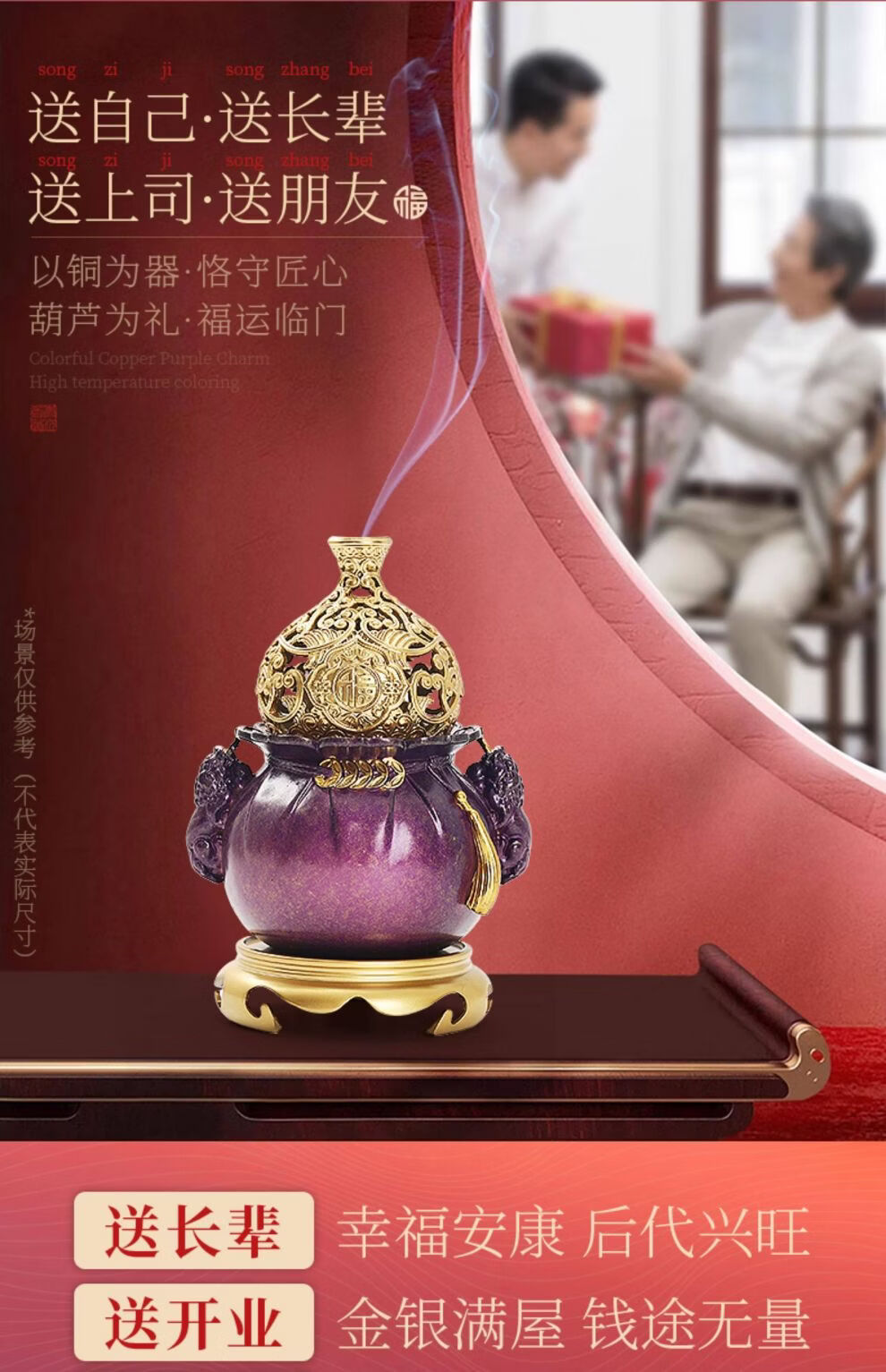 Shantou Lincun Copper Gourd Incense Burner Home Tea Ceremony Decoration Gift Choice Purple Gold Furnace