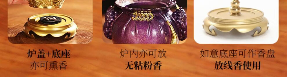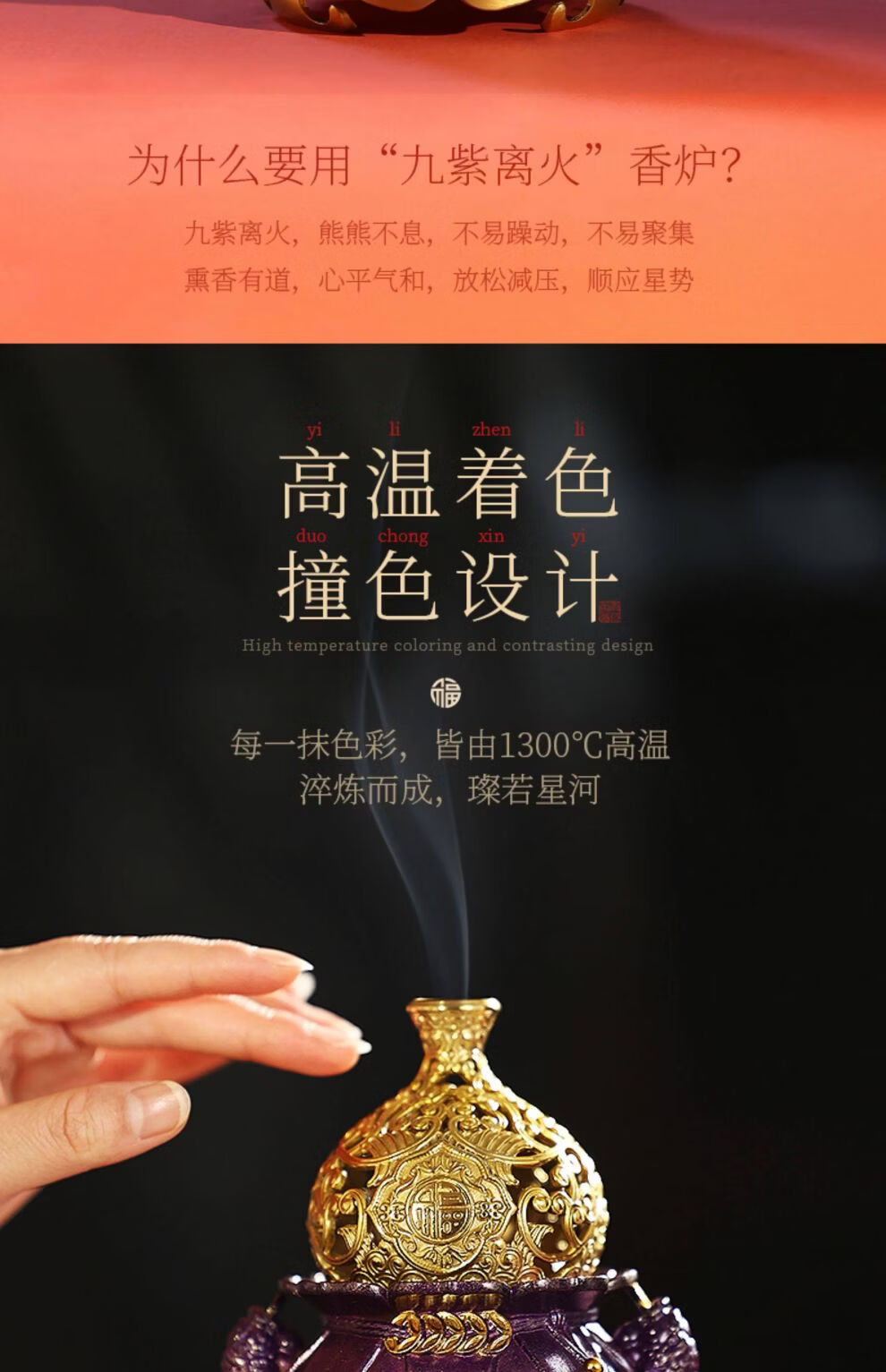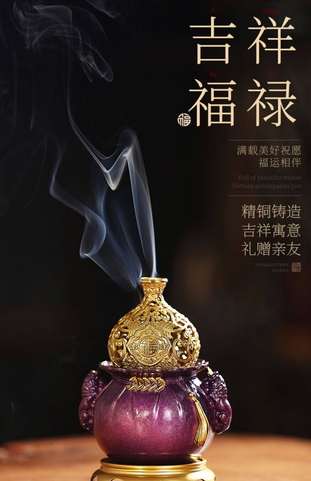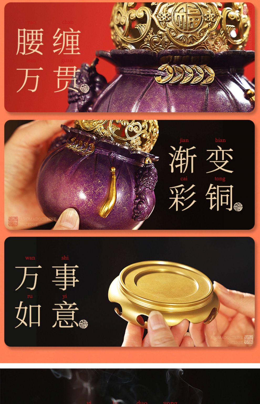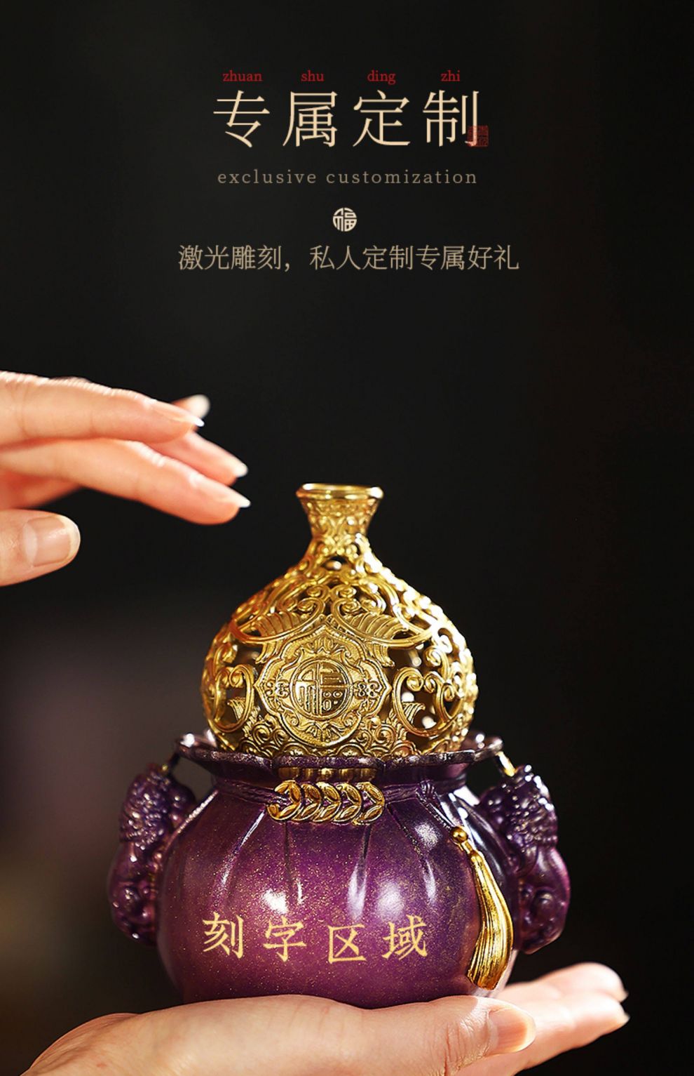 Shantou Lincun Copper Gourd Incense Burner Home Tea Ceremony Decoration Gift Choice Purple Gold Furnace
