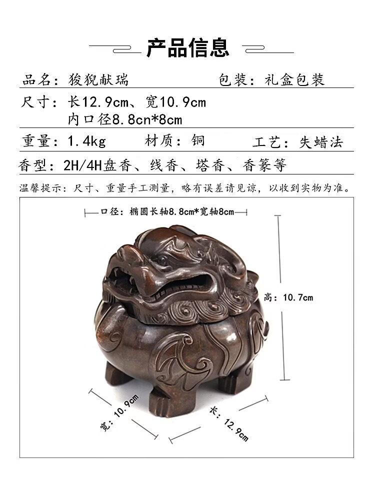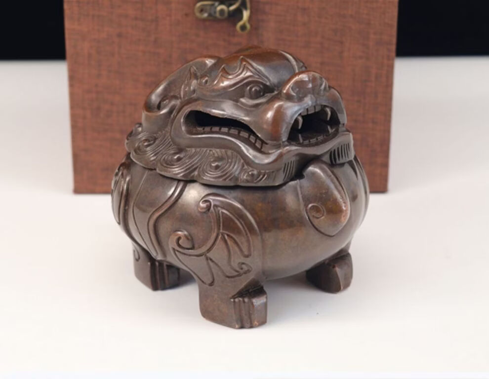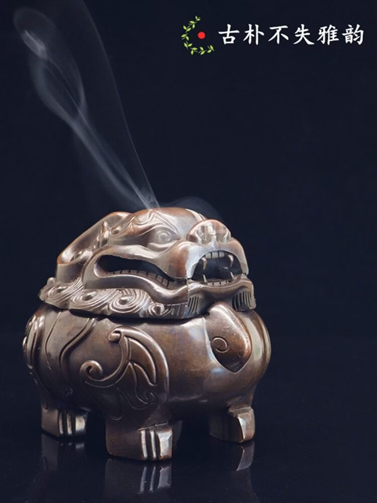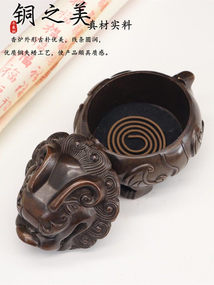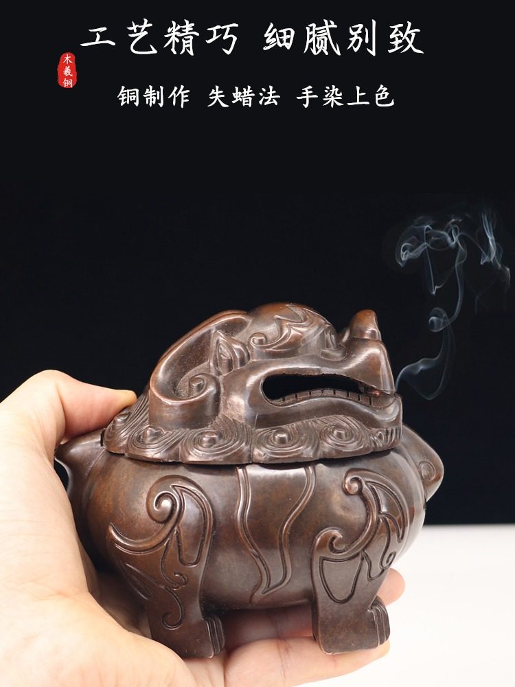 Shantou Lincun pure copper Suan Ni incense burner household tea ceremony ornaments imitation antique copper stove hair style stove