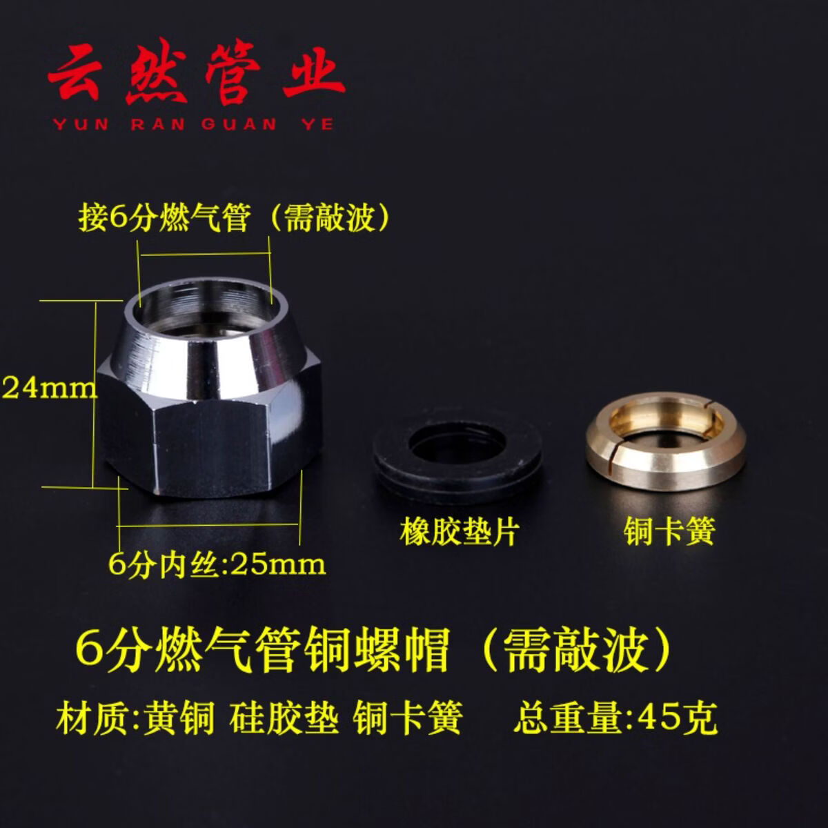 Yonghuan gas gas bellows nut gas screw joint gas pipe nut 4 points 6 points 4 points gas steel nut (knock wave)