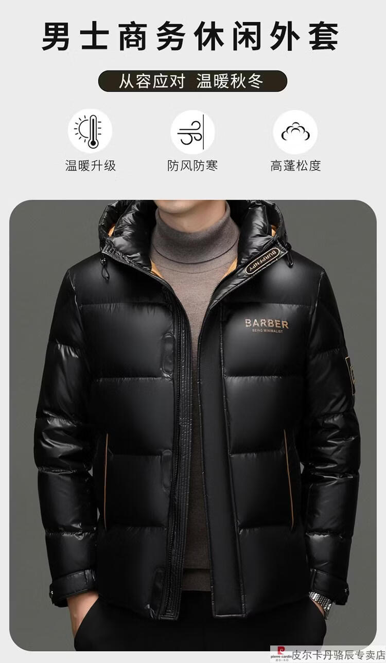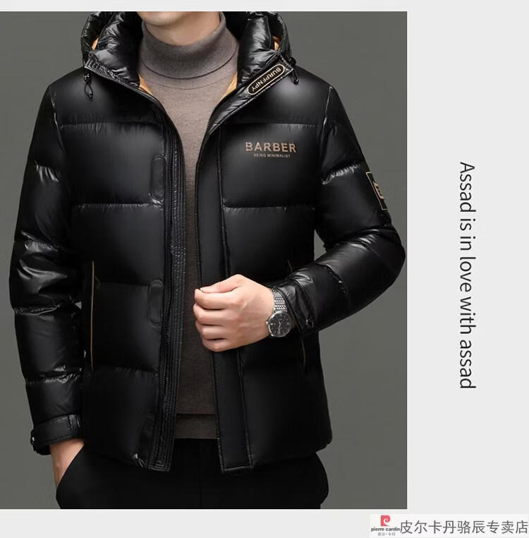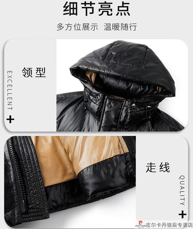 皮尔卡丹(pierre cardin)高端大牌羽绒服男士2025新款白鸭绒加厚保暖可脱帽抗寒休闲外套 黑色【白鸭绒羽绒服】 XL 175(建议体重140-160斤)