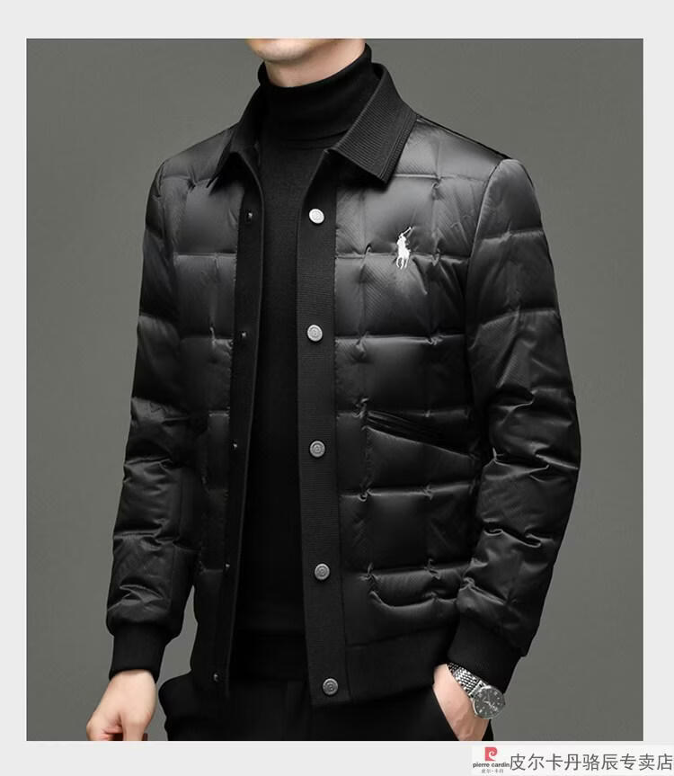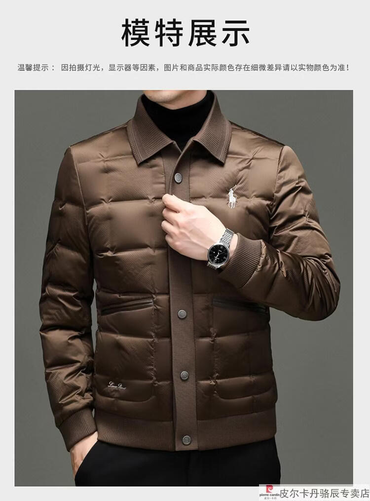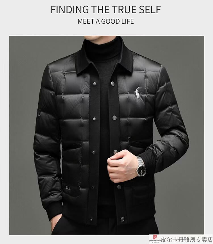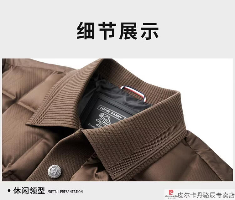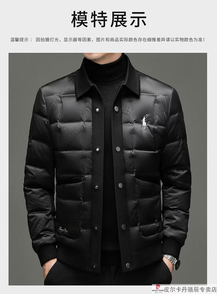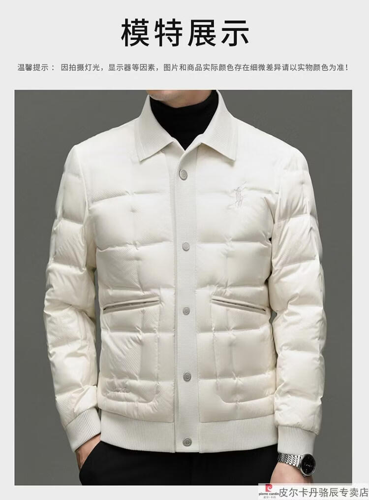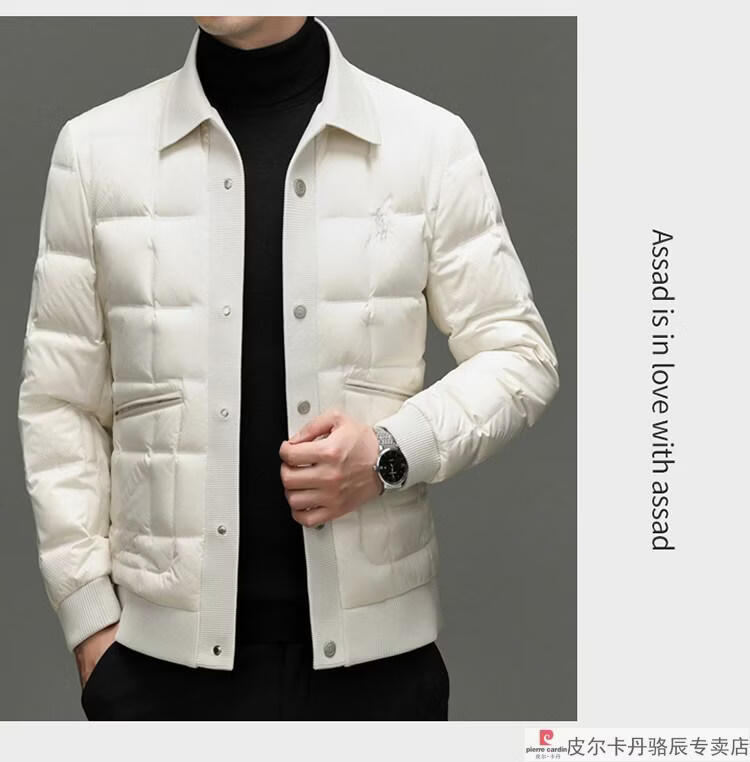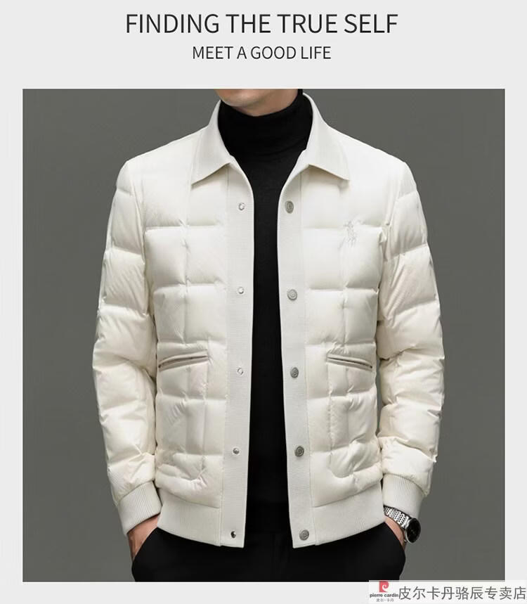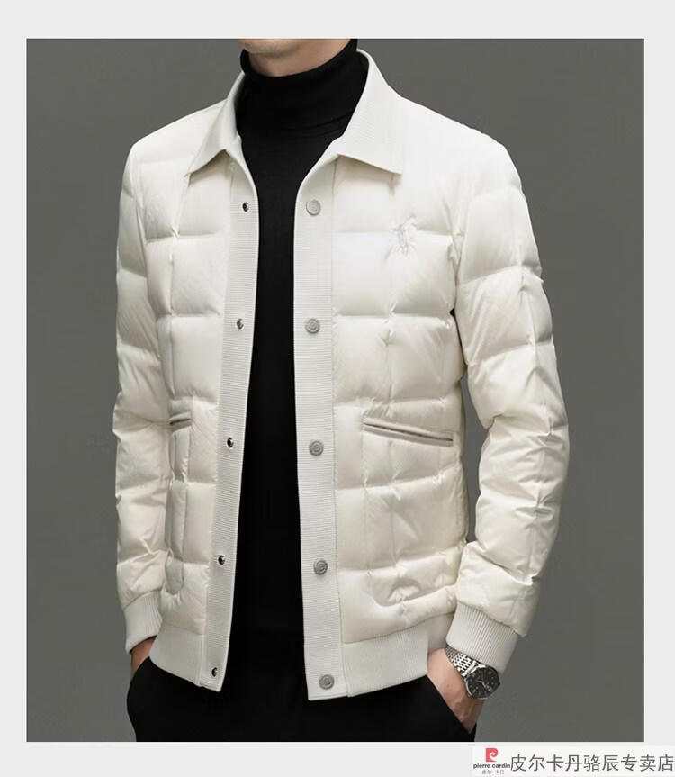 Pierre Cardin high-end big-name down jacket men's winter new business casual high-end fashion knitted warm white duck down jacket white down jacket men's 2025 model XL 175 (recommended weight 140-160Jin Jin equals 0.5 kg)