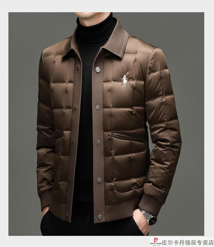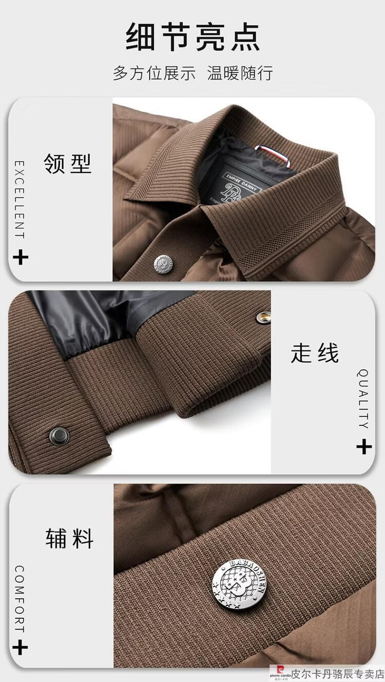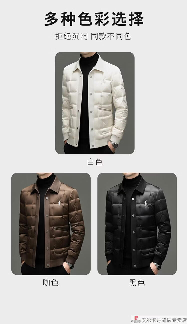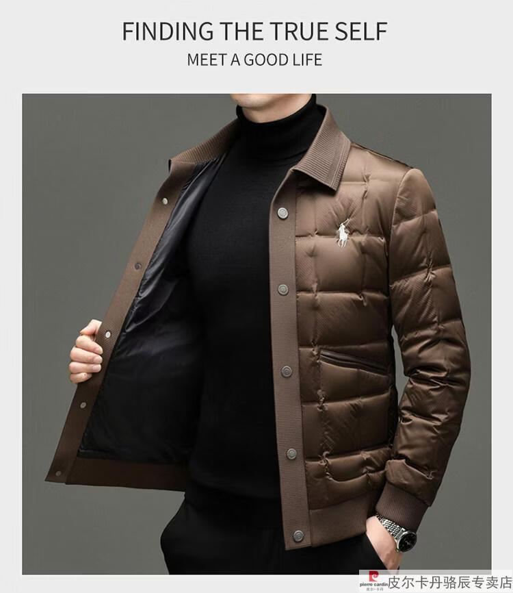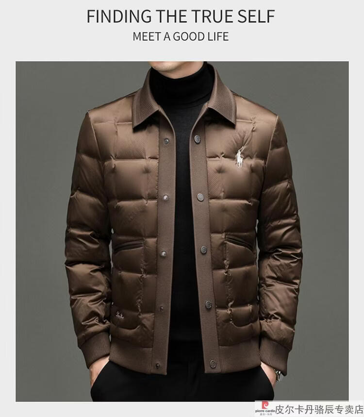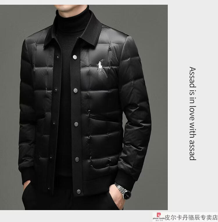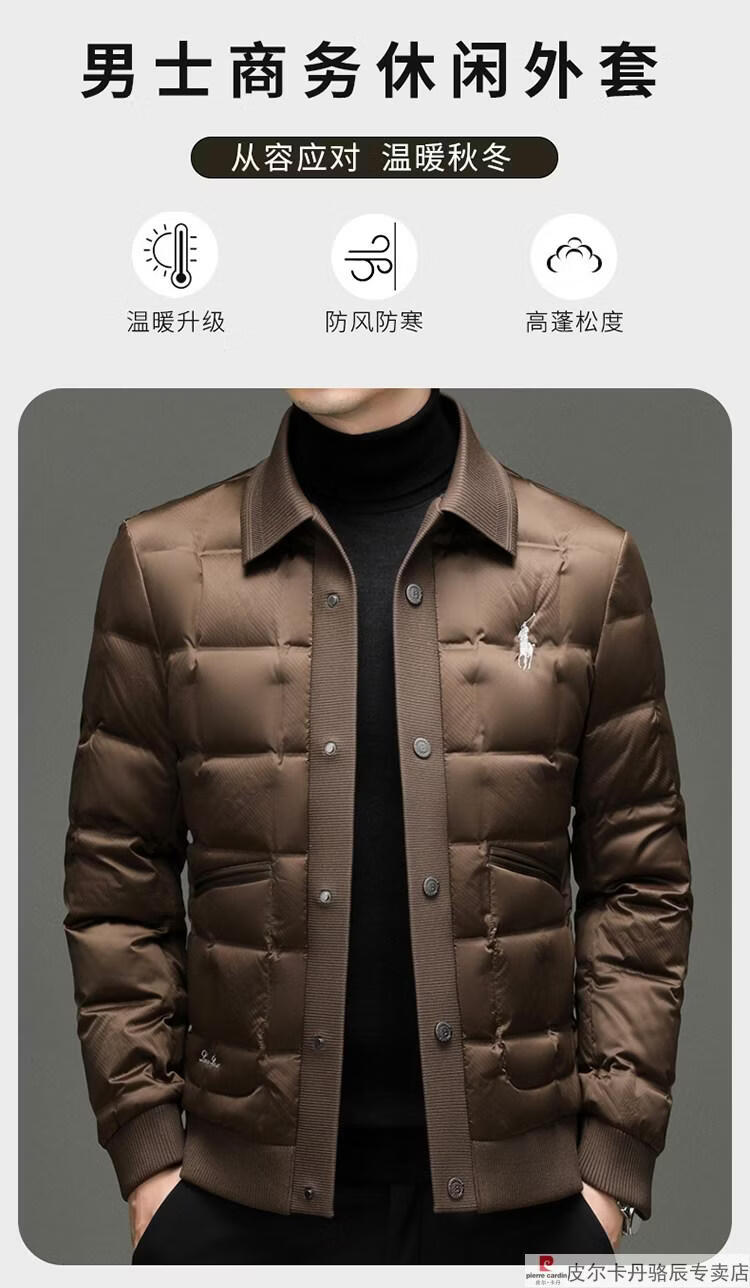 Pierre Cardin high-end big-name down jacket men's winter new business casual high-end fashion knitted warm white duck down jacket white down jacket men's 2025 model XL 175 (recommended weight 140-160Jin Jin equals 0.5 kg)