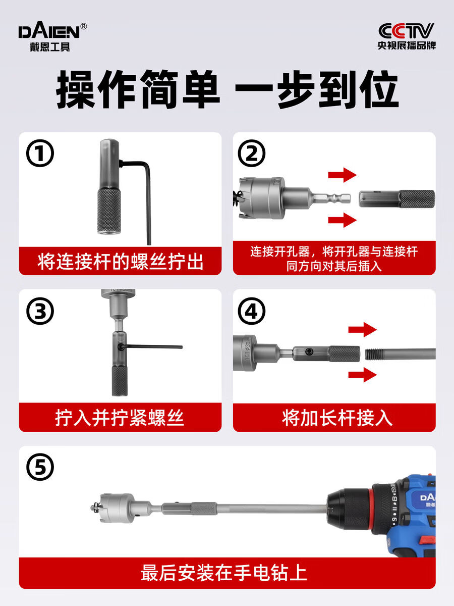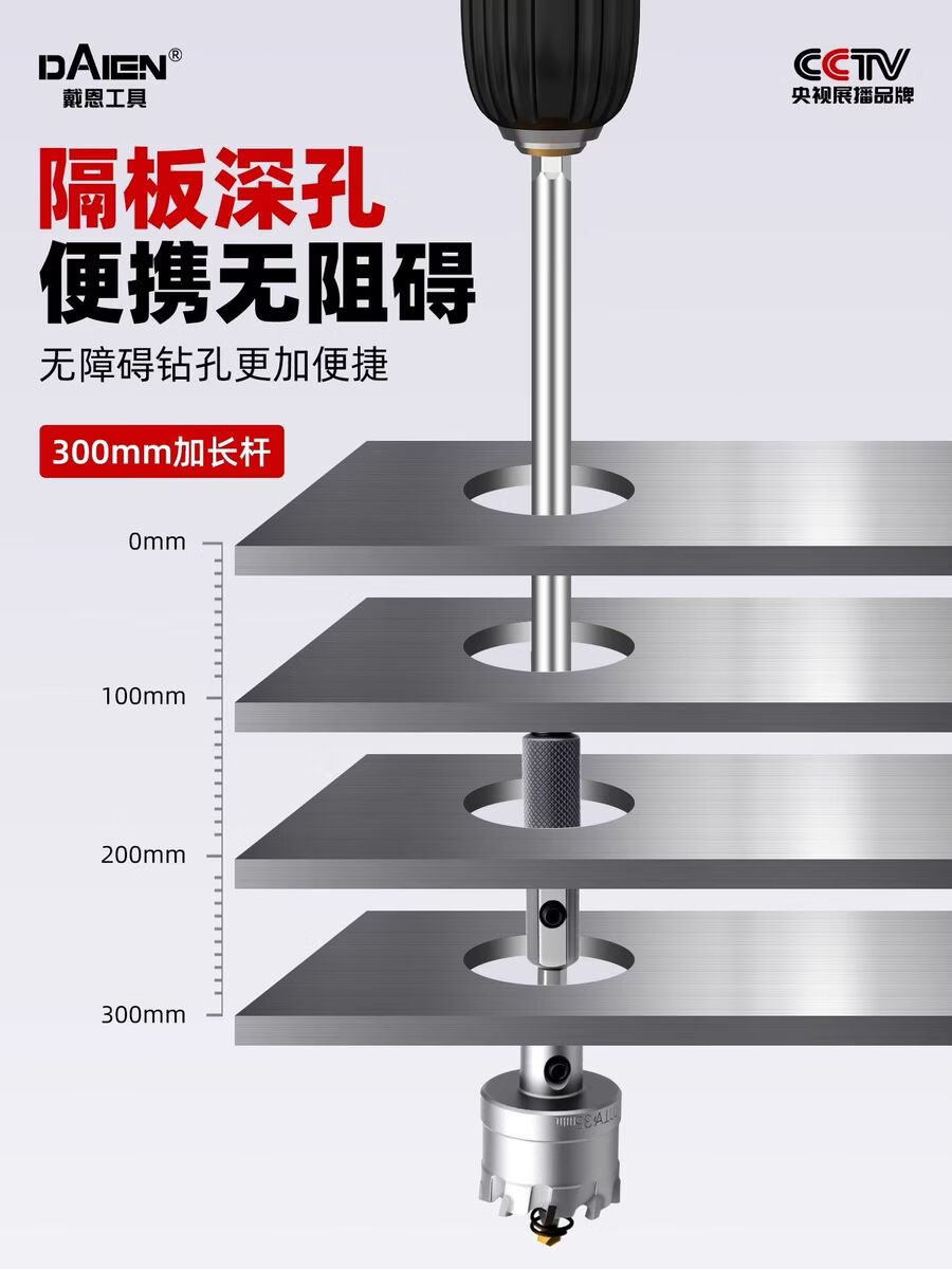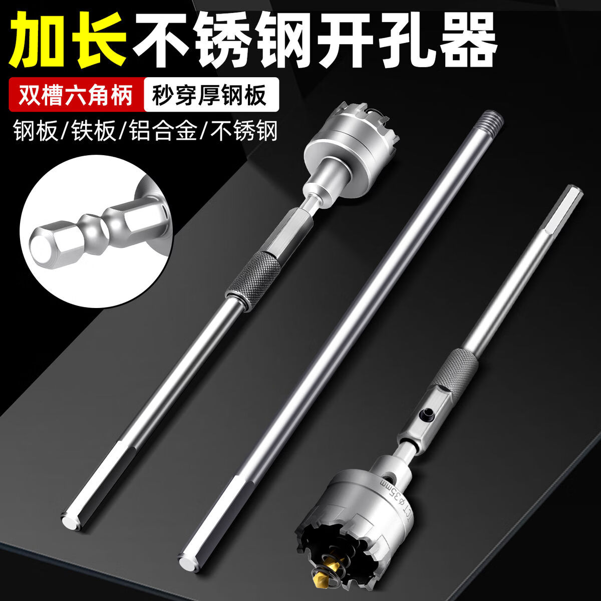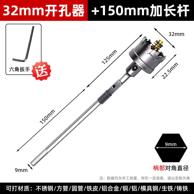 Fantasy extended hole opener drill bit hexagonal handle punching steel drilling aluminum gusset plate expansion 300mm hexagonal handle extension rod alloy hole opener 25mm