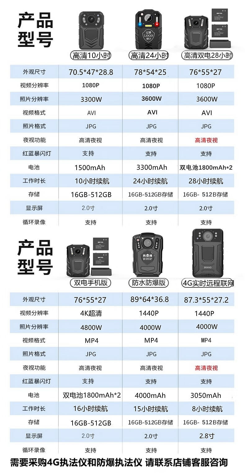 Yusenyi 4G explosion-proof and waterproof recorder HD 4K infrared night vision chest wearable field work duty recorder HD 10 hours battery life infrared night vision without memory