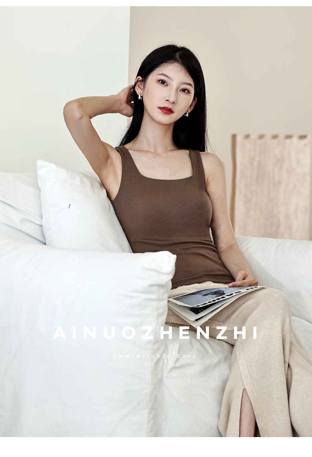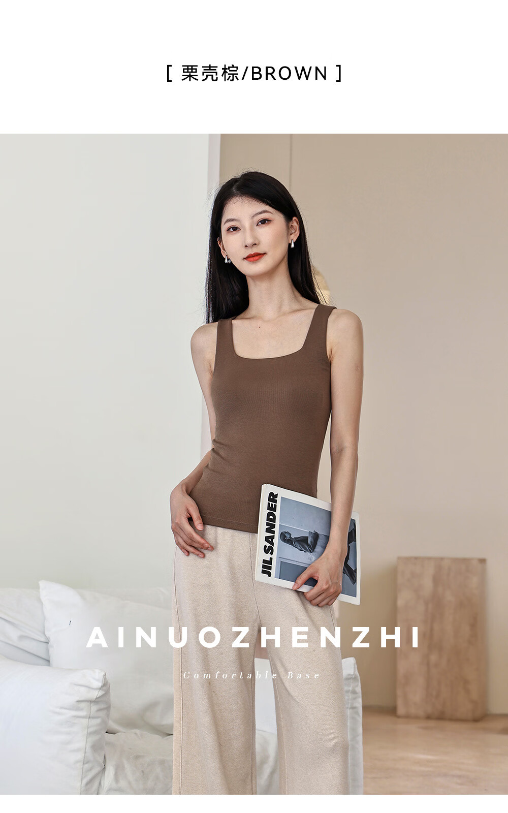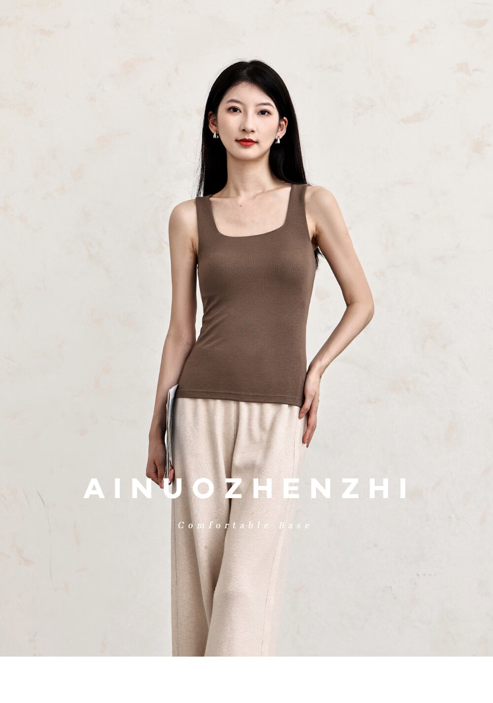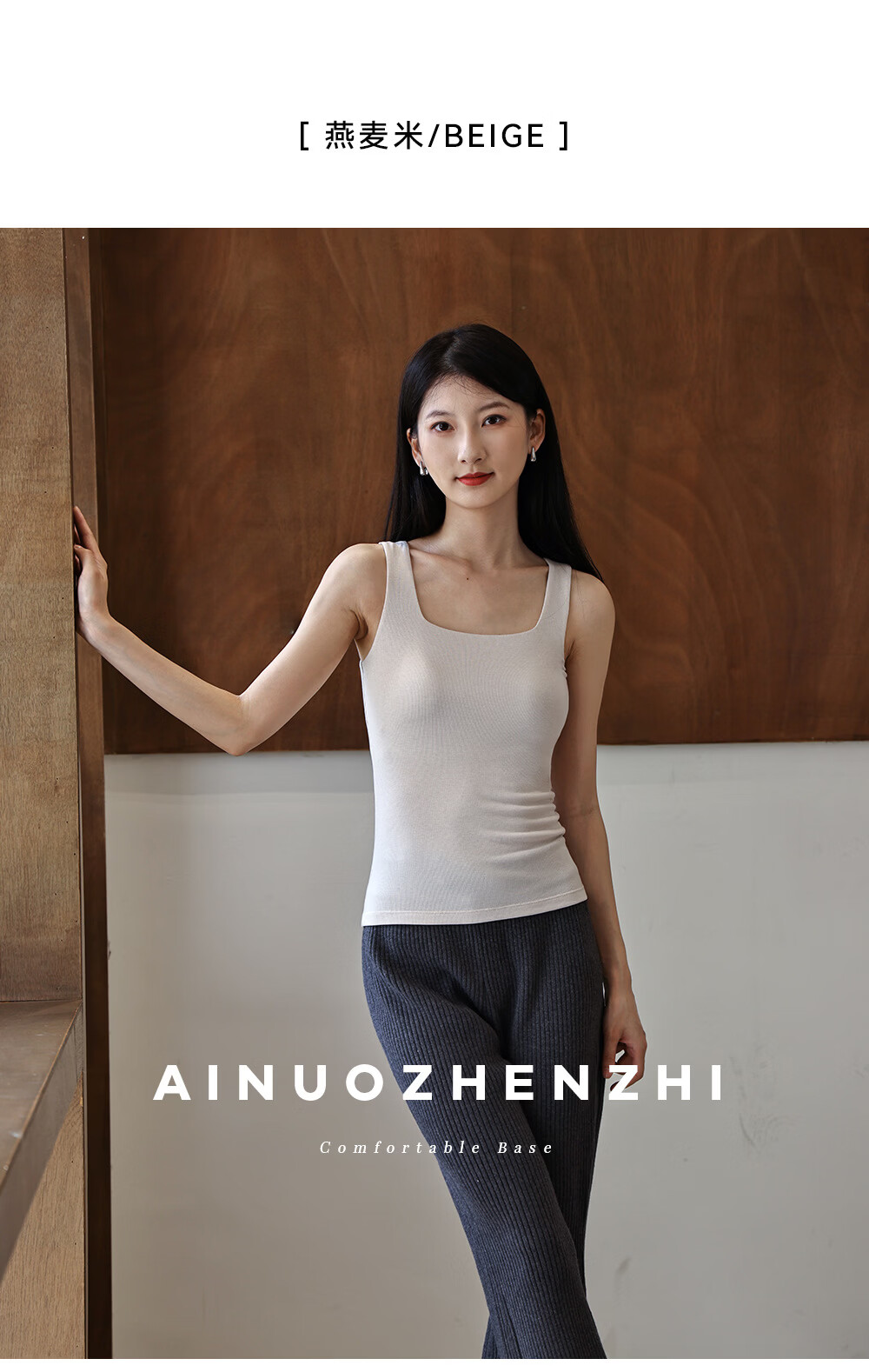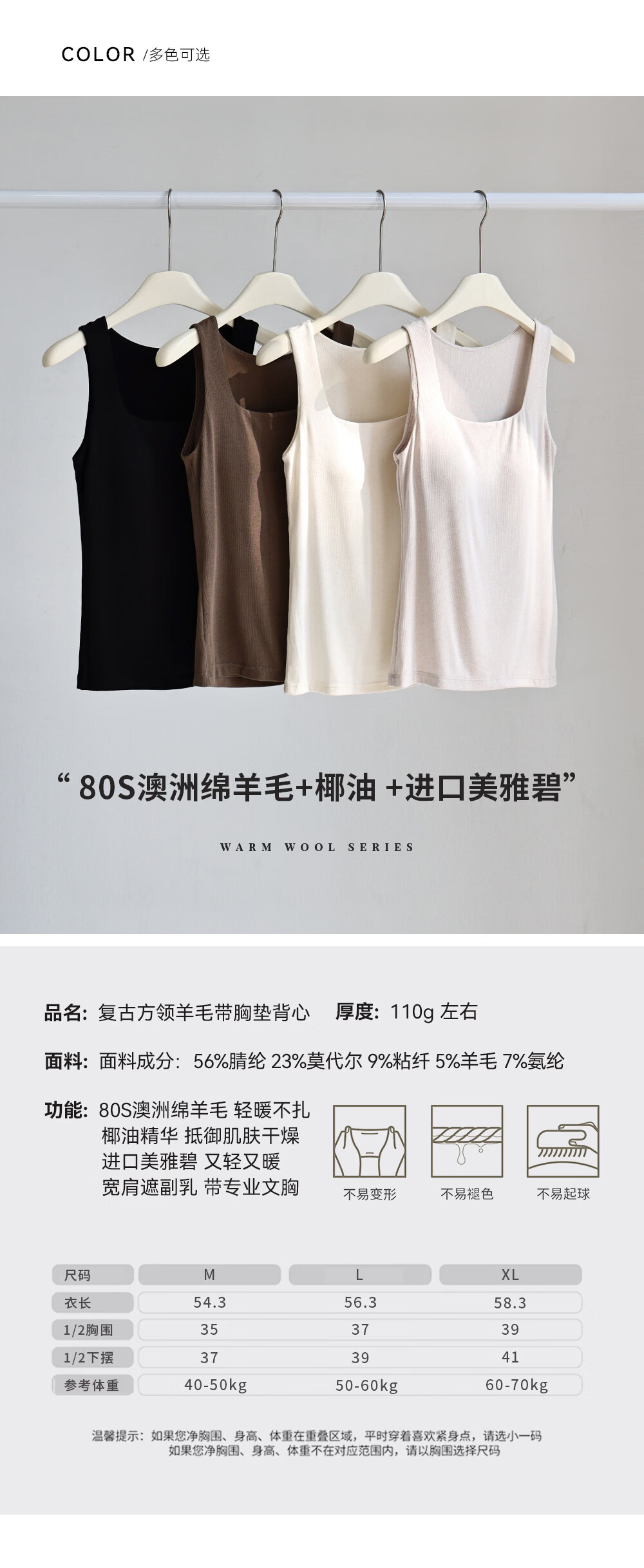 Autumn and winter wool Mayabi thermal vest for women with breast pads, wide shoulder suspender top, slim bottoming, can be worn inside and outside, coconut milk white M (recommended 80-100Jin Jin equals 0.5kg