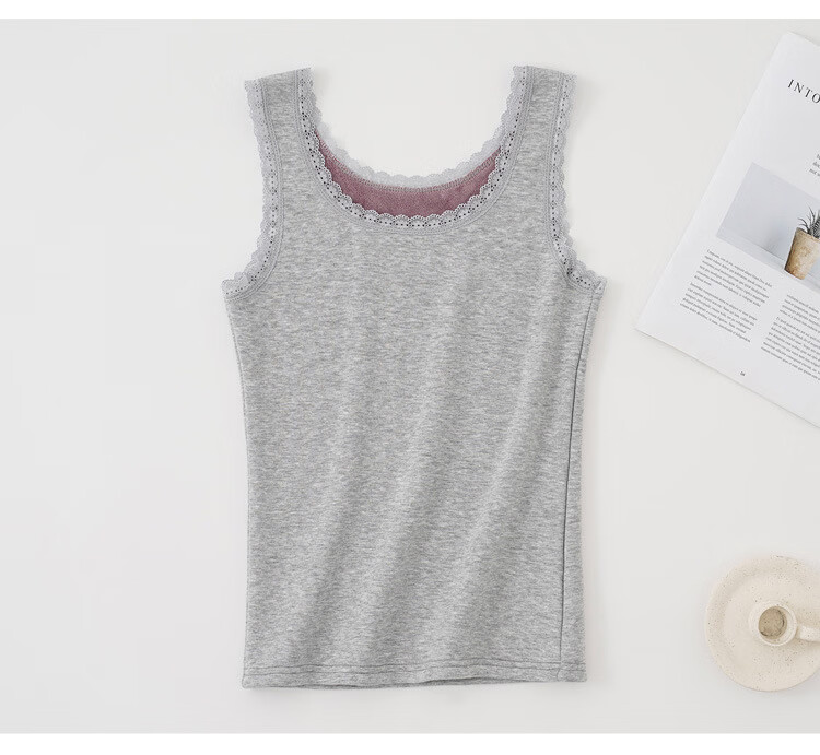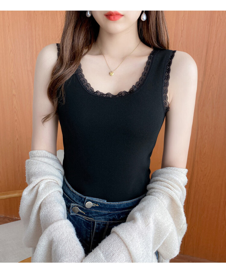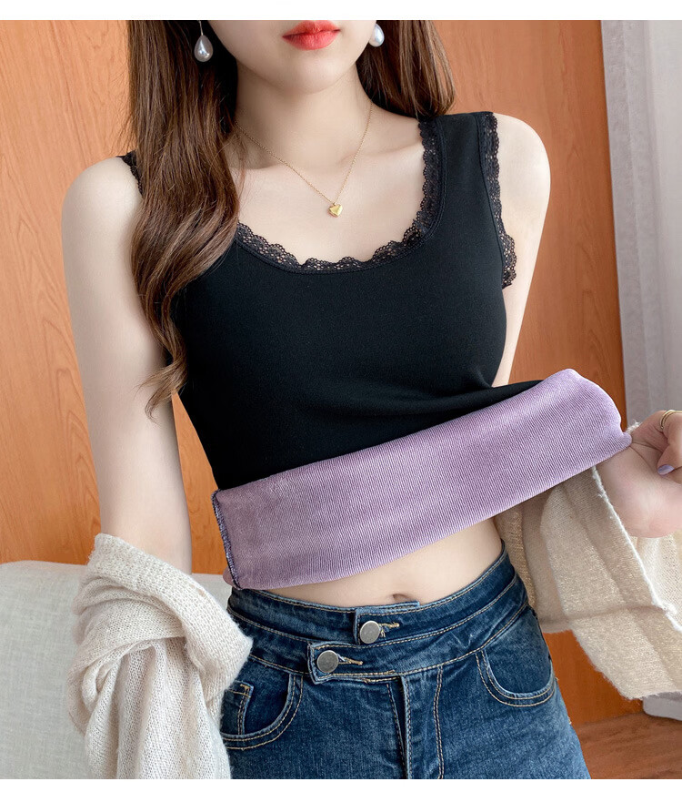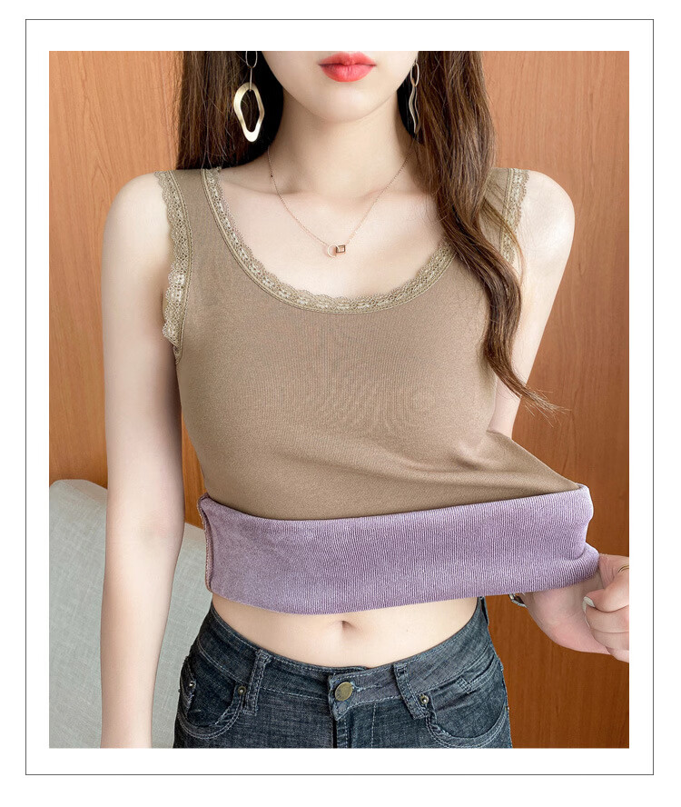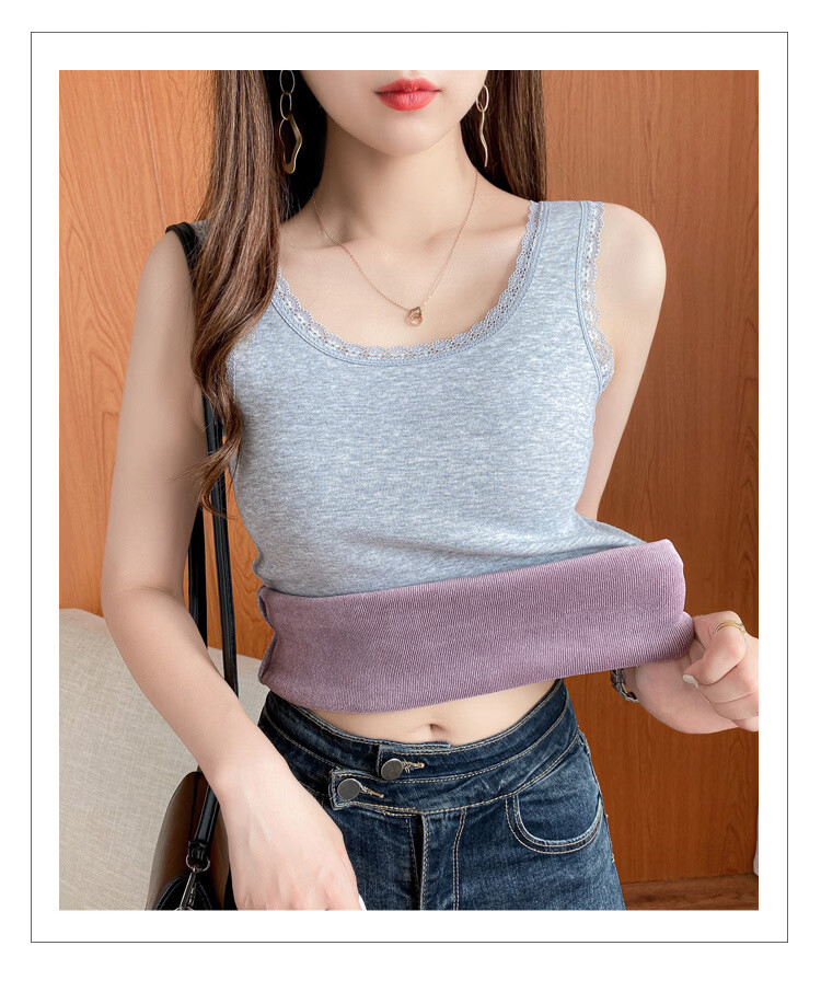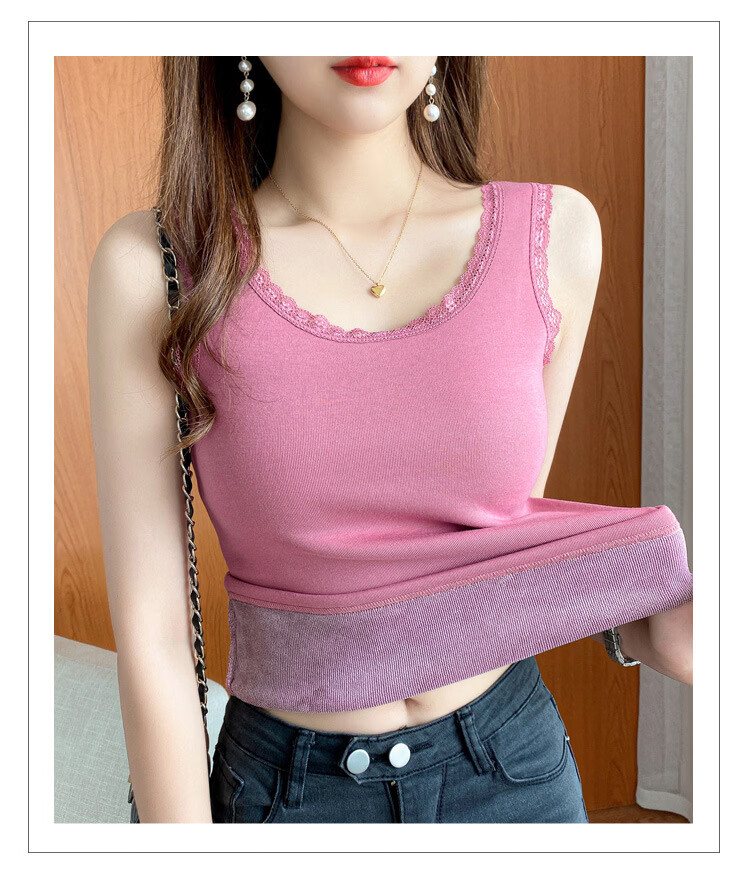 Thermal Vest Women's Velvet Thickened One-piece Velvet Lace Round Neck Autumn and Winter Warm Top Women's Slim Bottoming Shirt White One Size