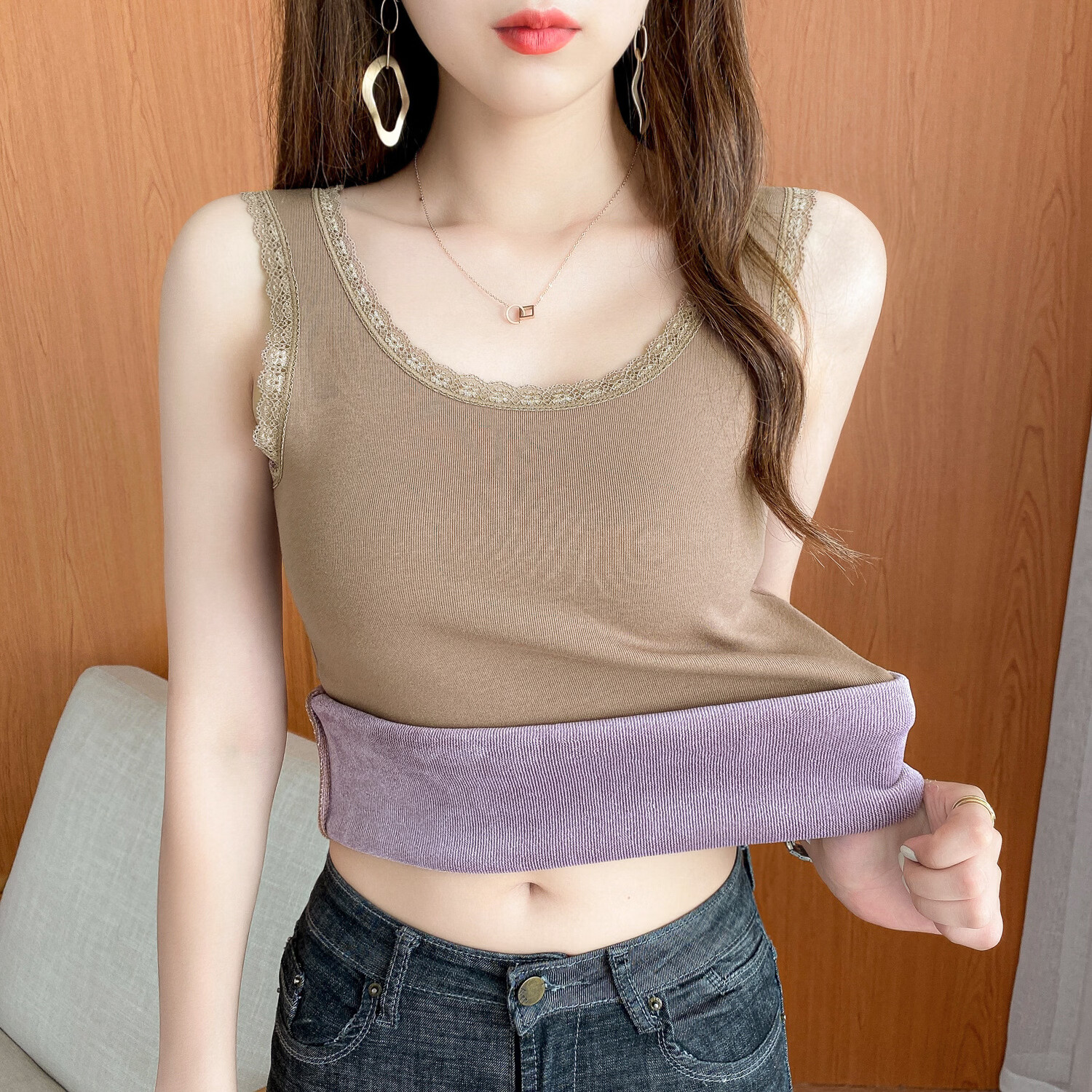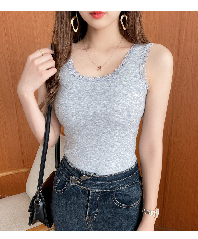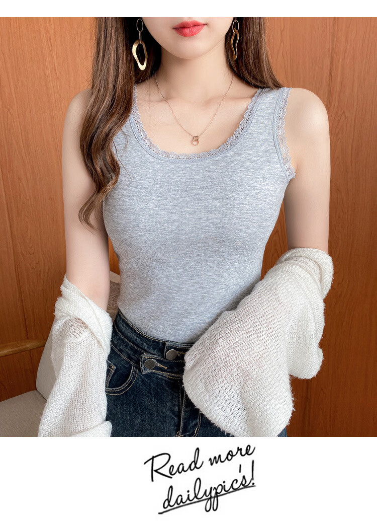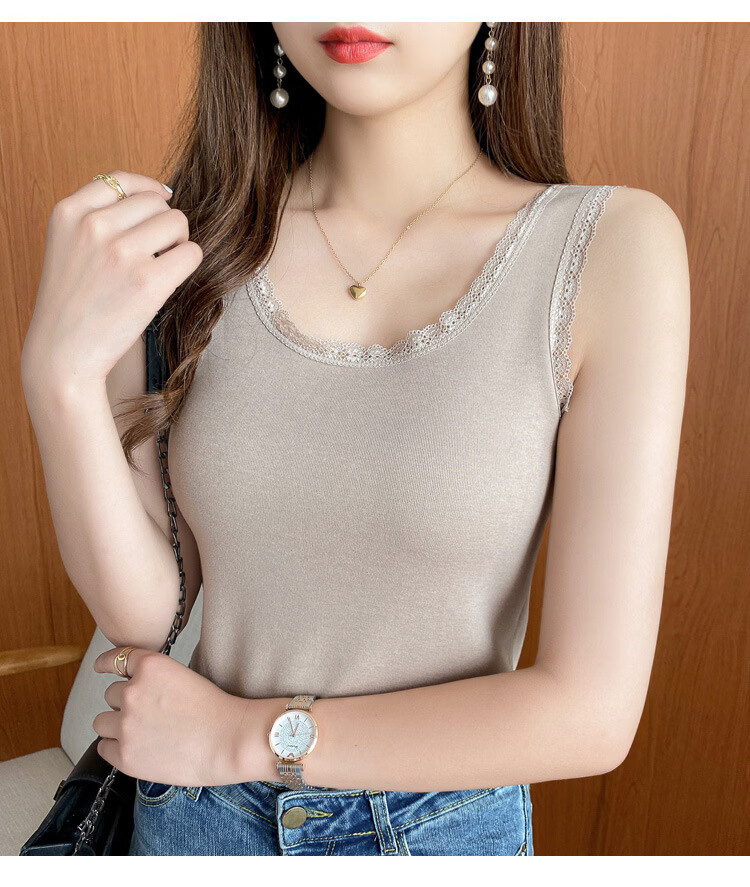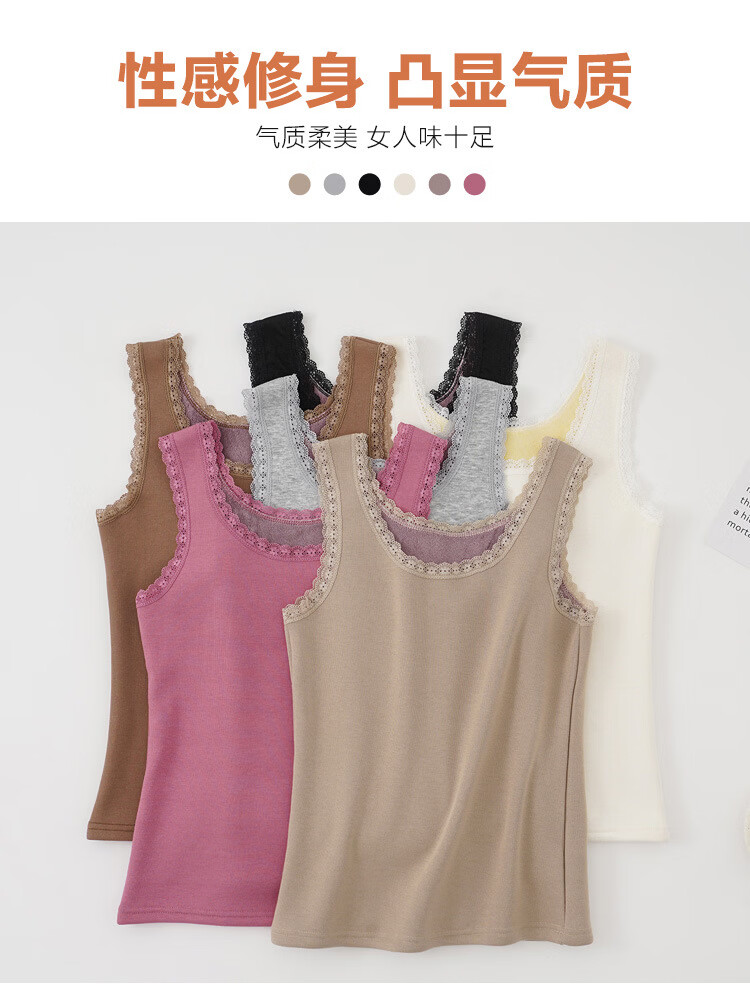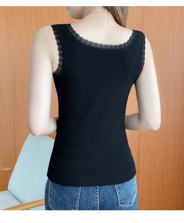 Thermal Vest Women's Velvet Thickened One-piece Velvet Lace Round Neck Autumn and Winter Warm Top Women's Slim Bottoming Shirt White One Size
