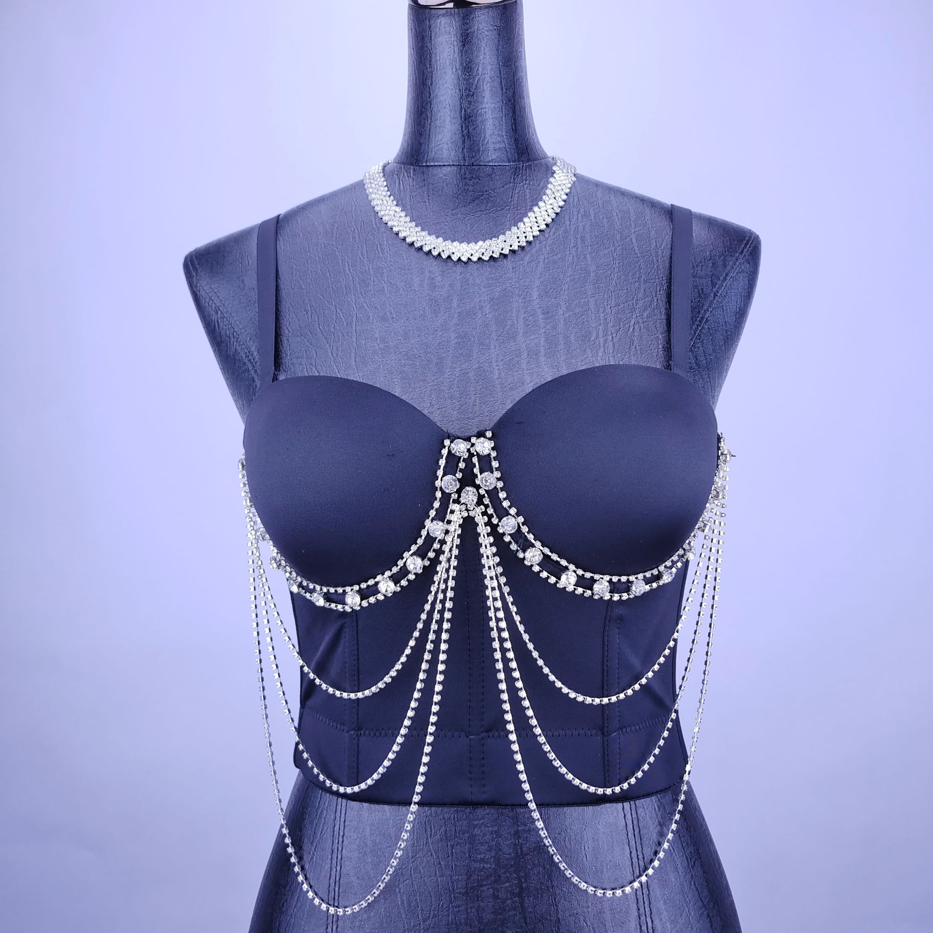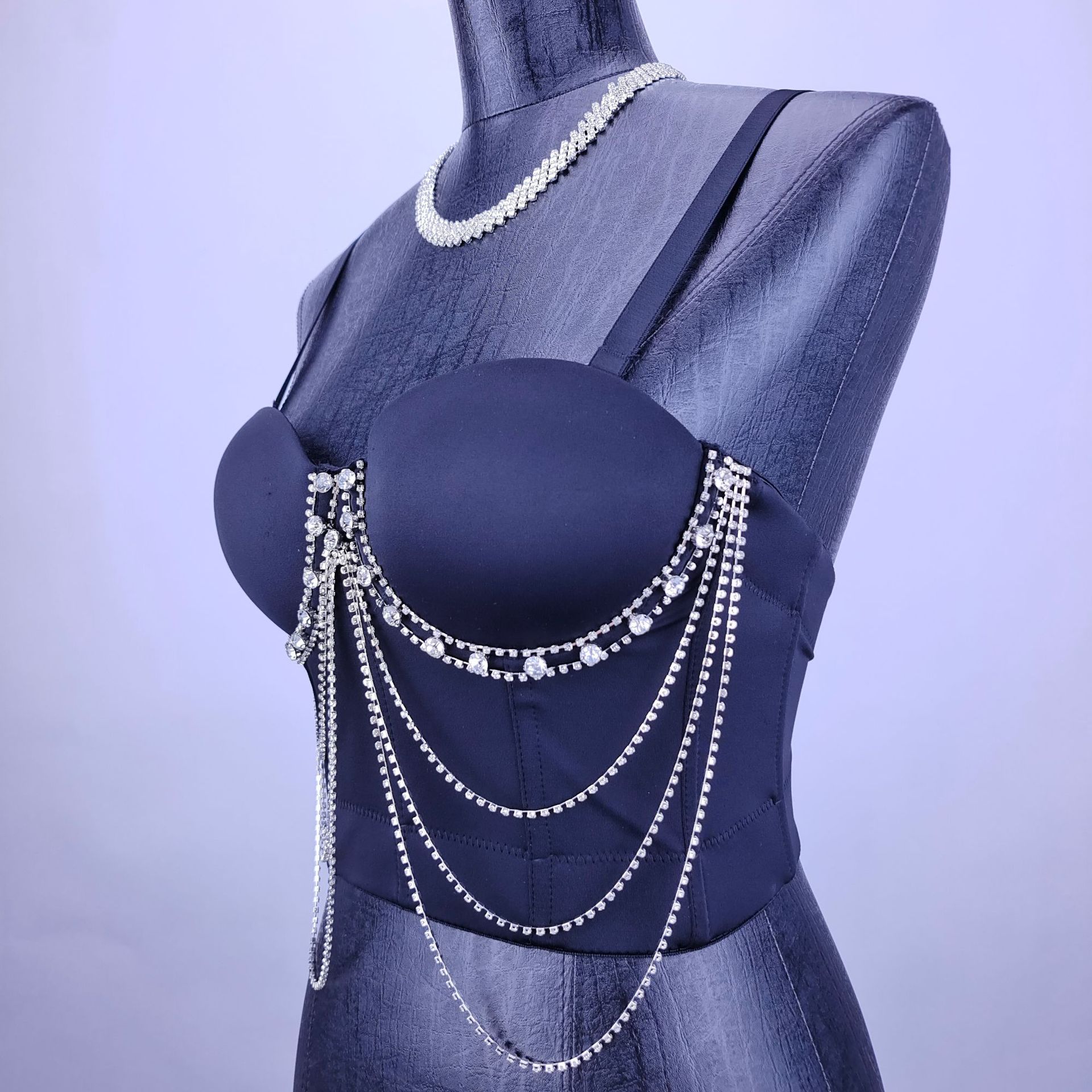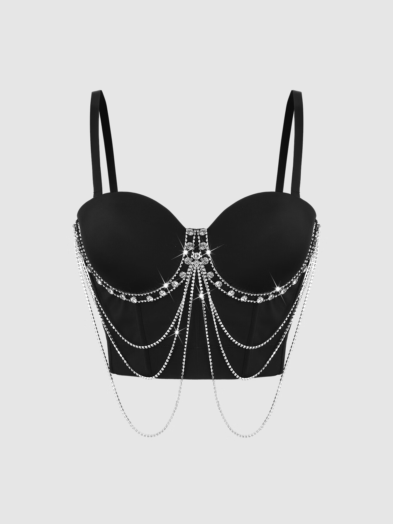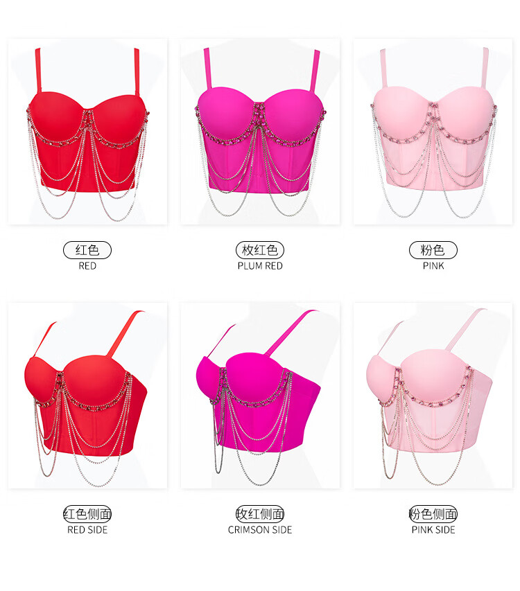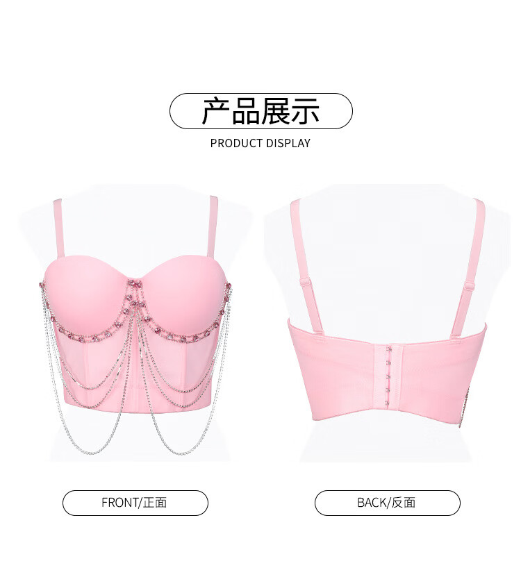 Lu Qiuguo sexy suspender chain rhinestone bra integrated outer wear suspender new high-end top for women black M 38C/
