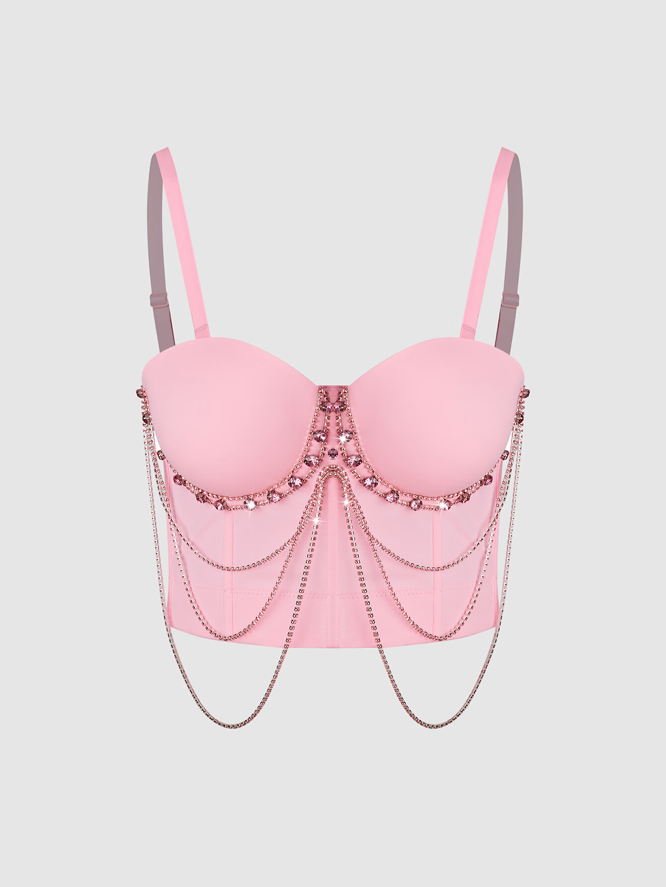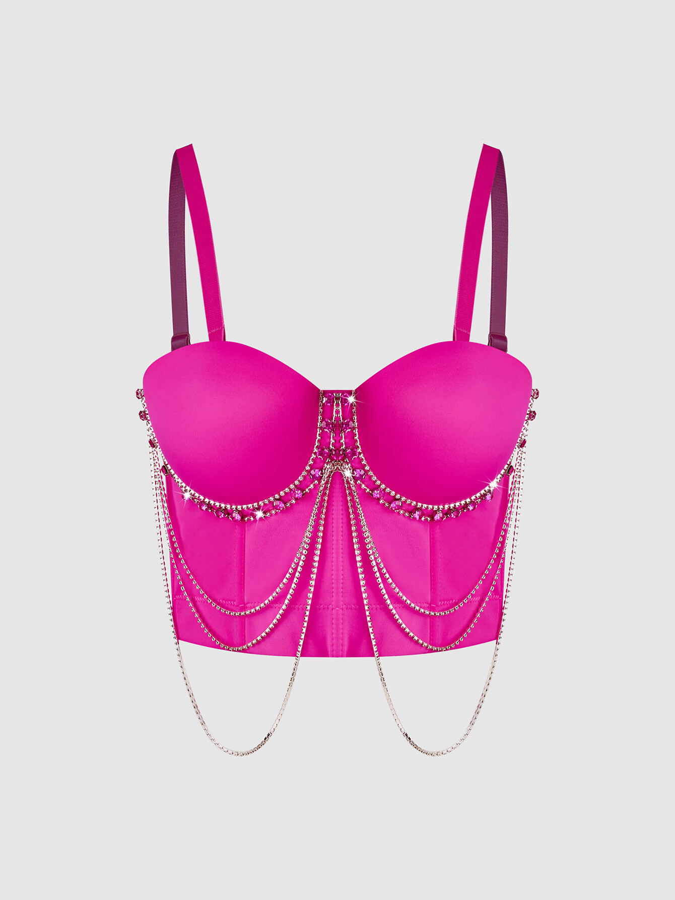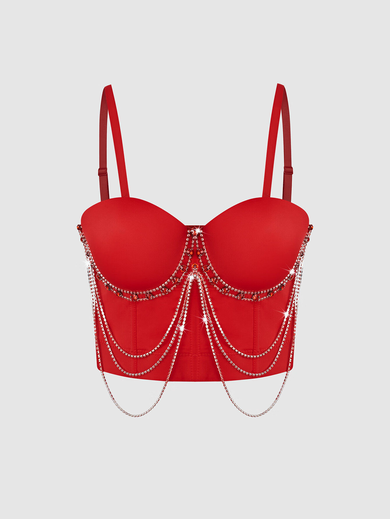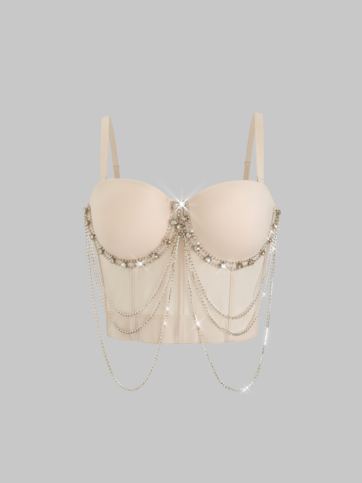 Lu Qiuguo sexy suspender chain rhinestone bra integrated outer wear suspender new high-end top for women black M 38C/