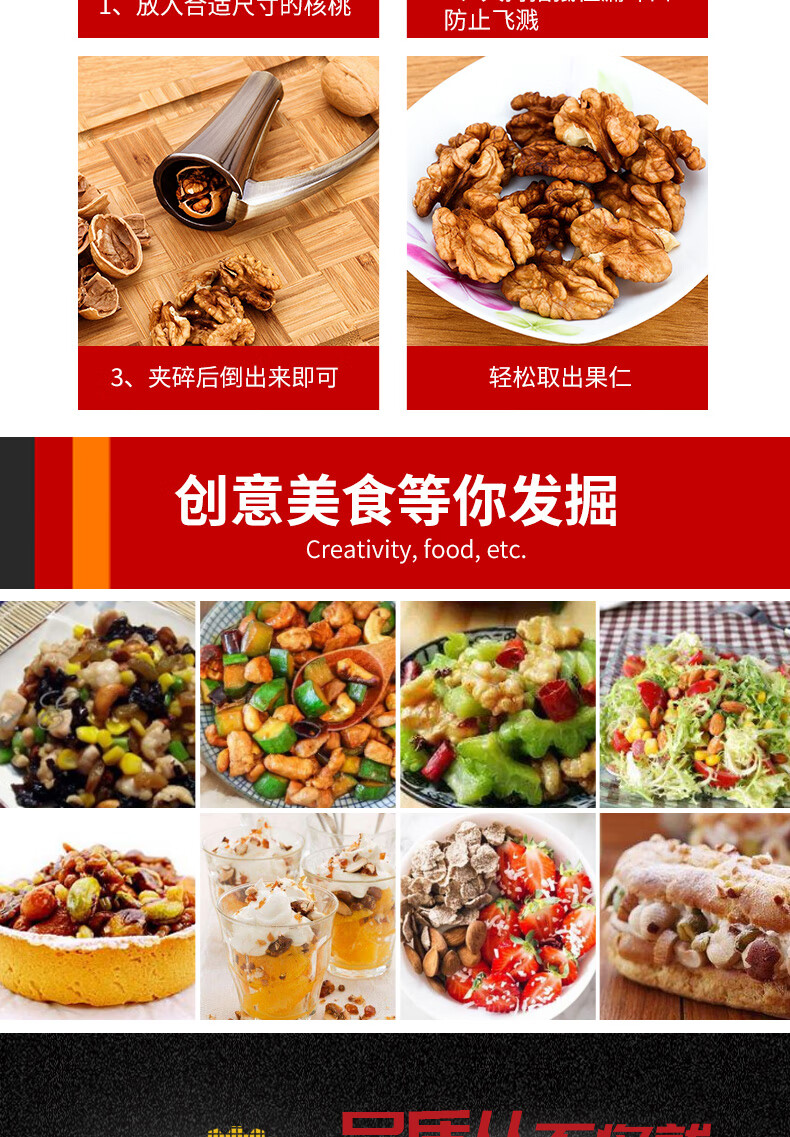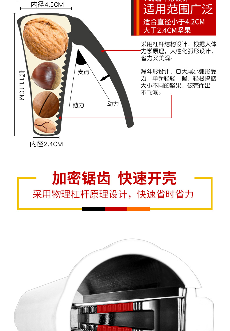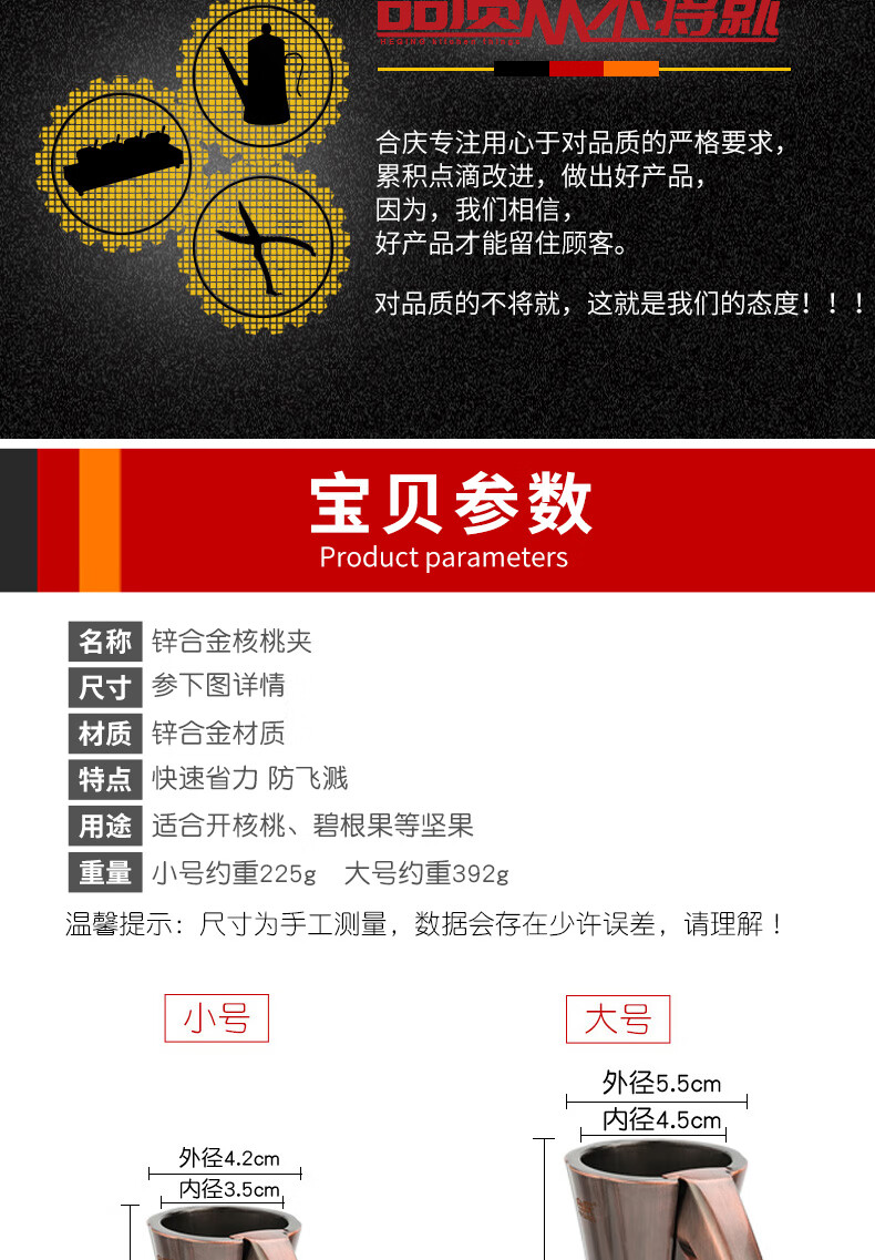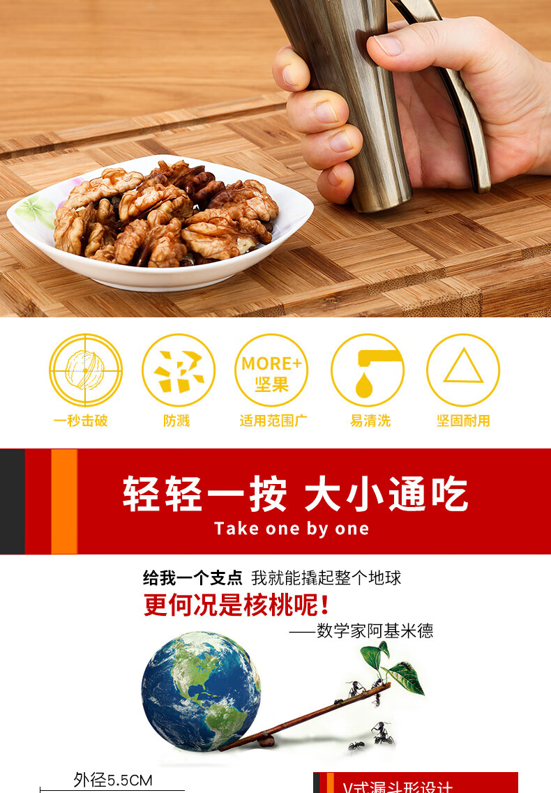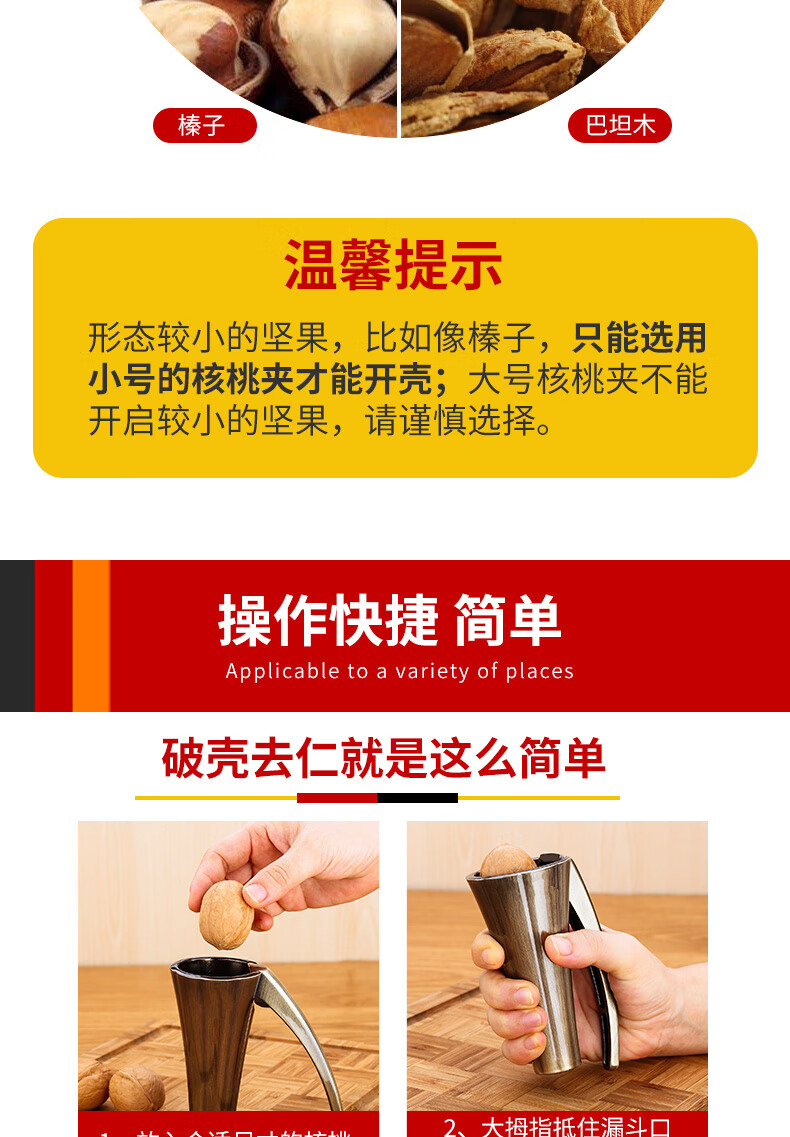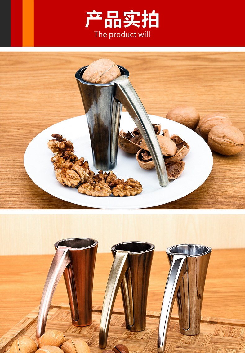Manual zinc alloy walnut clip household funnel shell breaker nut peeling tool clip hazelnut shell bronze large 1 second shell breaking