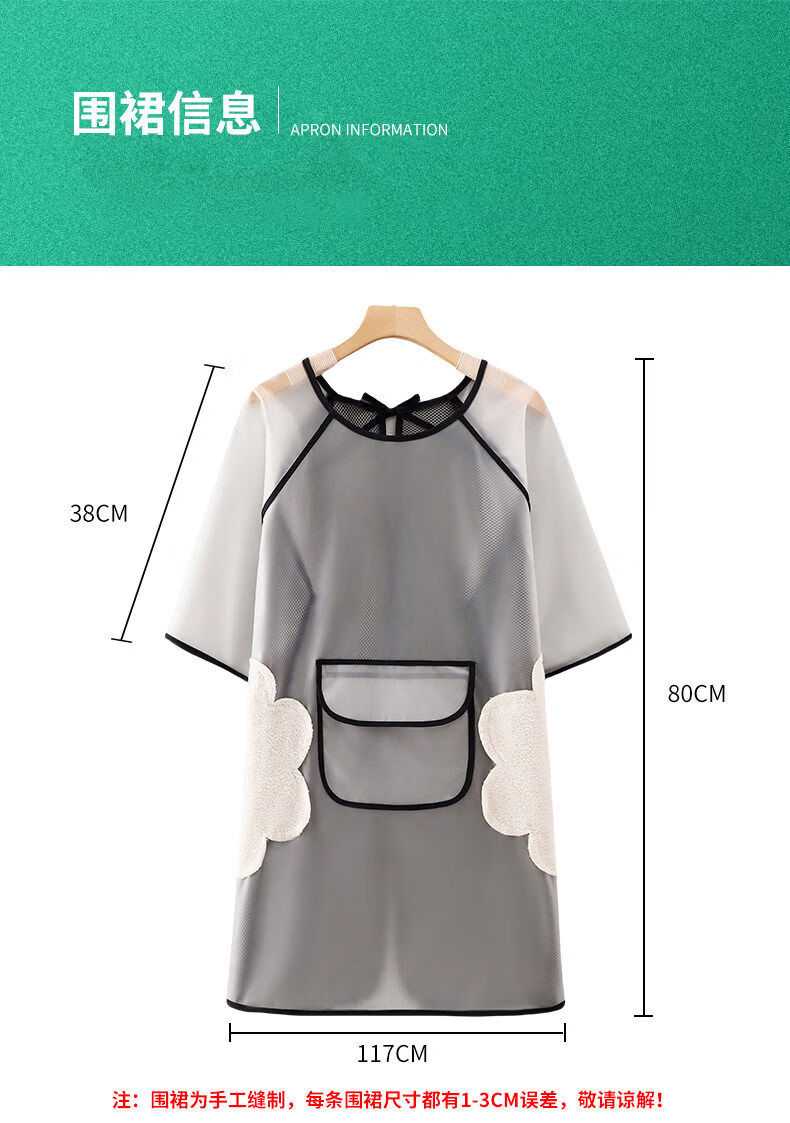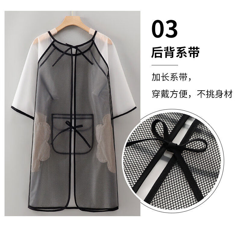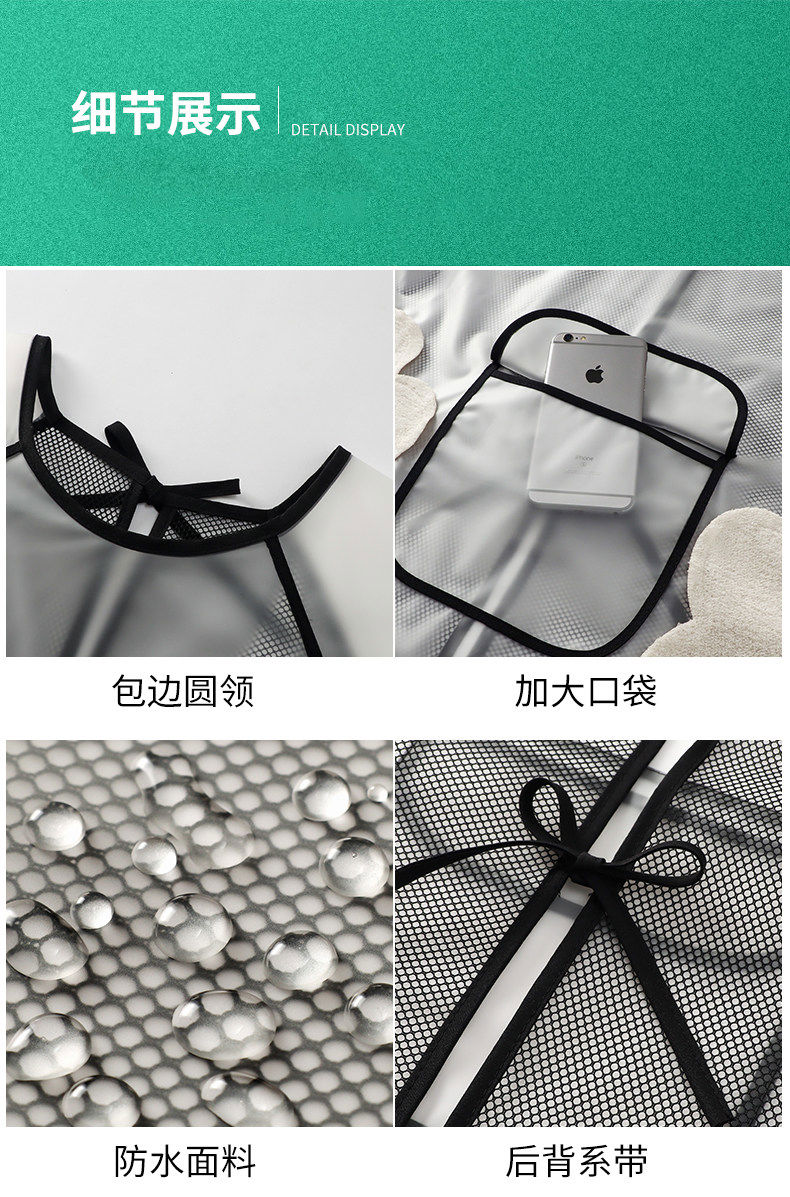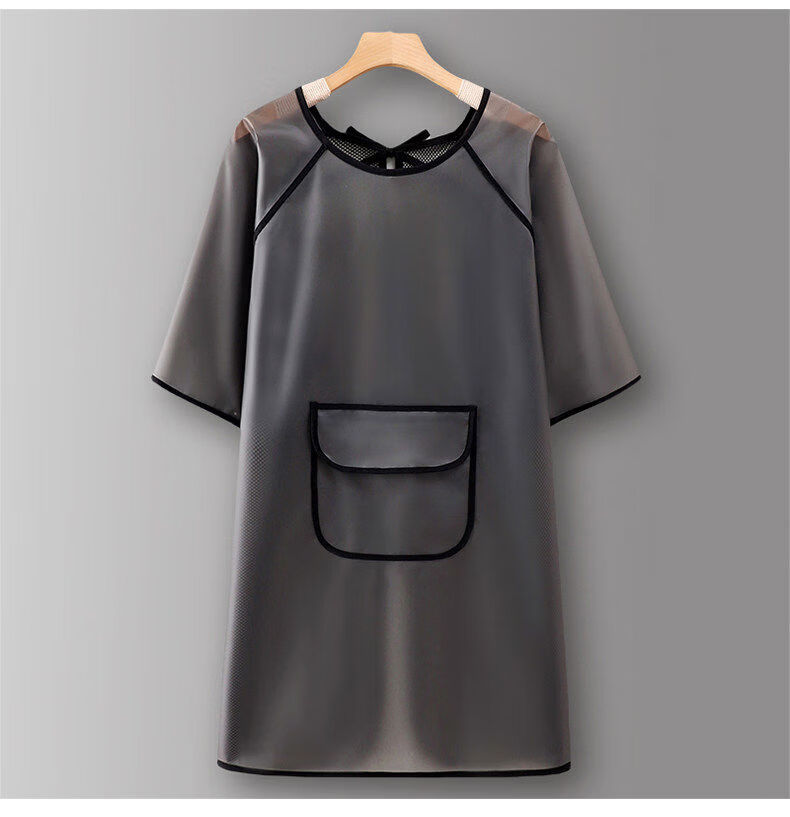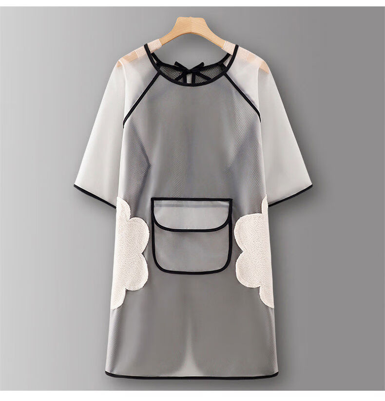 Pick up cat TPU apron waterproof and oil-proof work clothes for kitchen and home use 2024 new summer catering special women's half-sleeved blouse Black SJ819LU bear half-sleeved TPU waterproof hand-wiping style