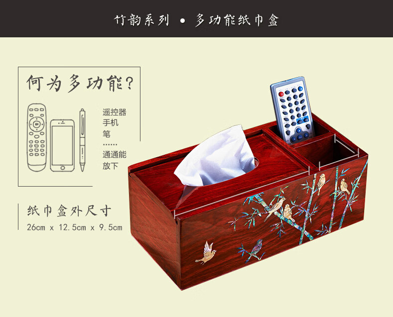 Jinbei Legend wooden mother-of-pearl tissue box remote control storage multi-function tissue box A-003 Bamboo Rhyme Quiet Tissue Box