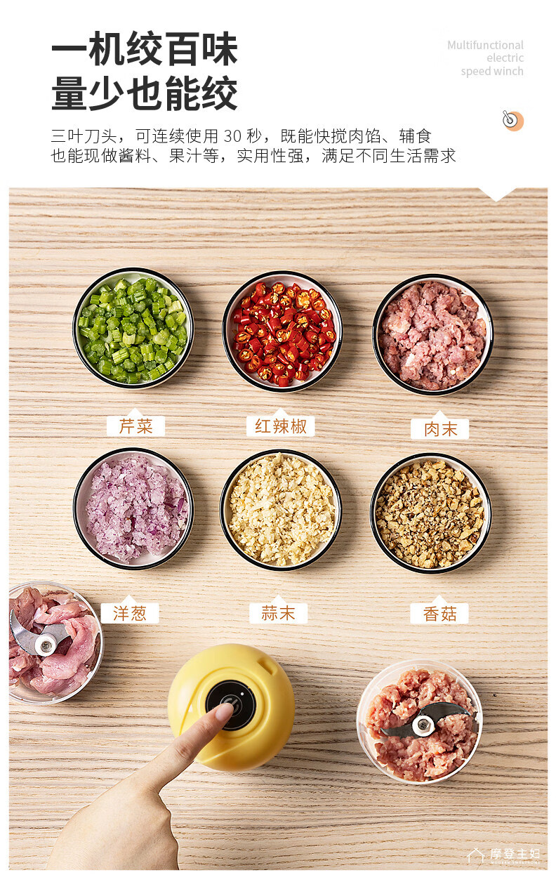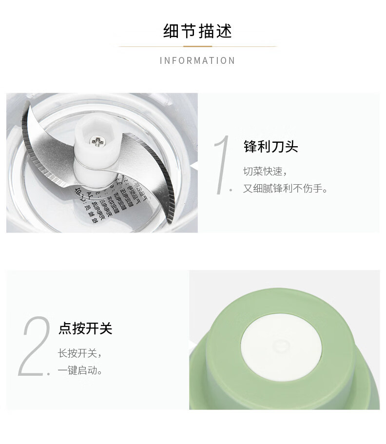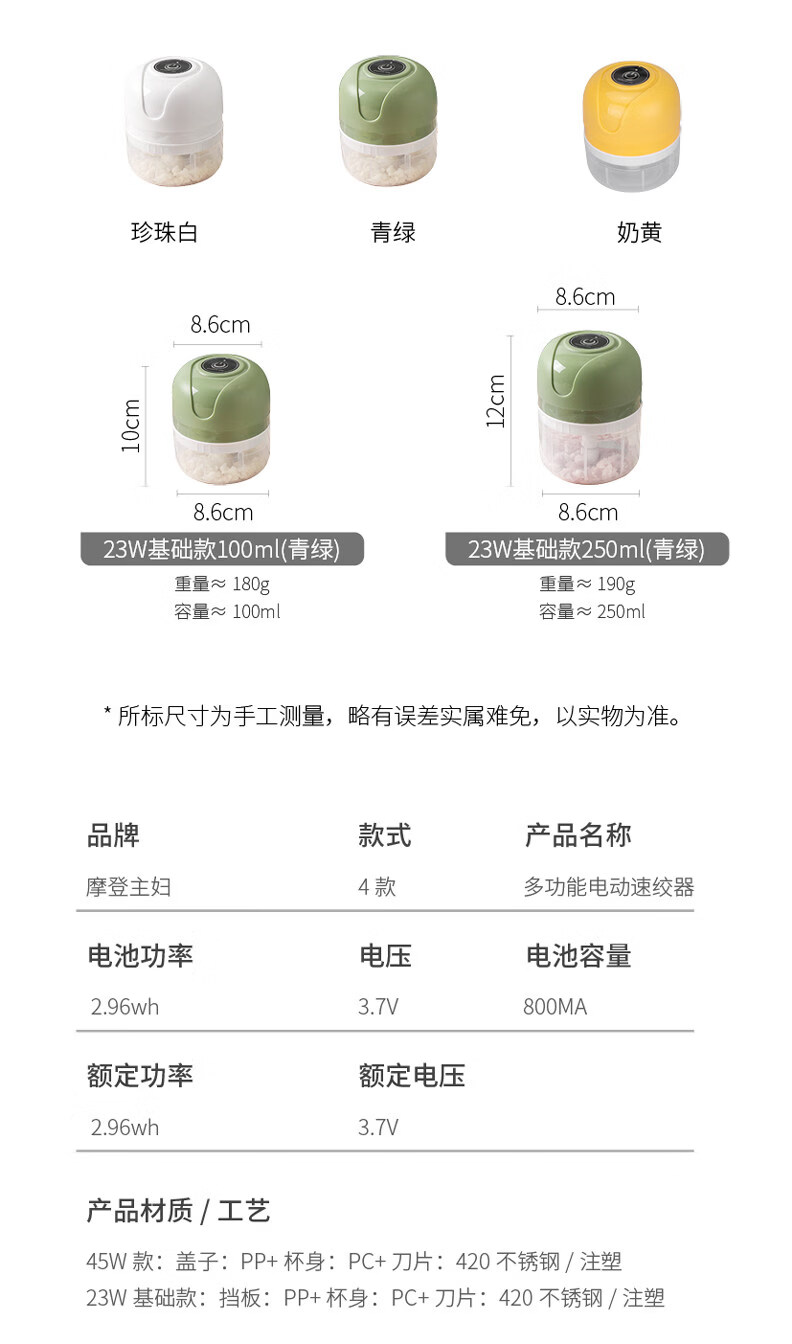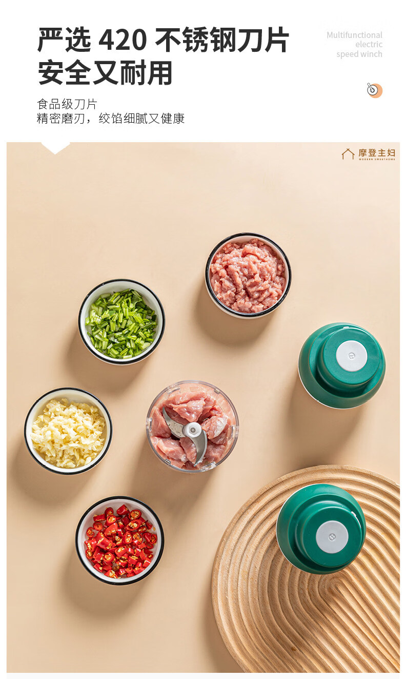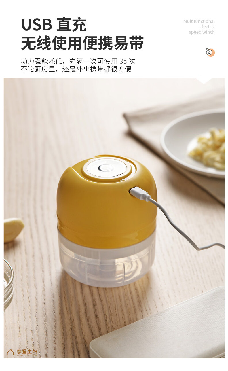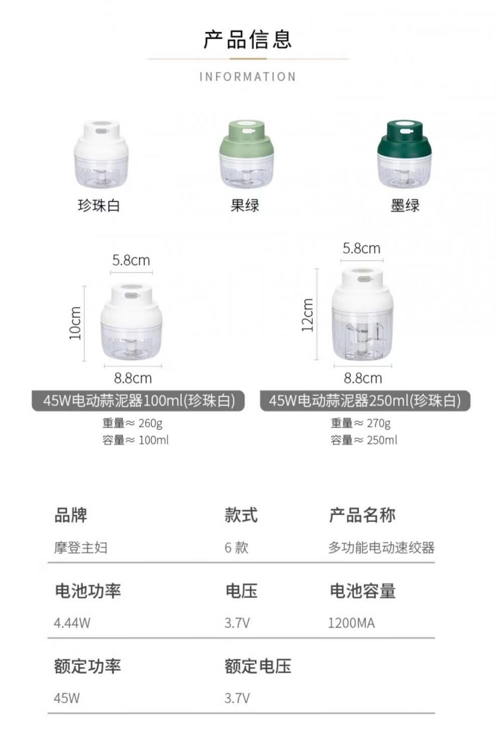 Modern housewife's garlic artifact electric garlic pounder garlic grinder garlic grinder garlic press garlic grinder 45W power upgrade - fruit green 250ml three-leaf knife | minced meat