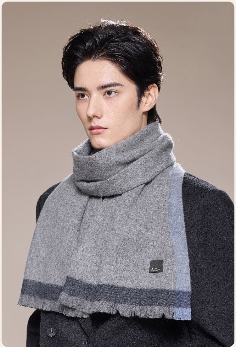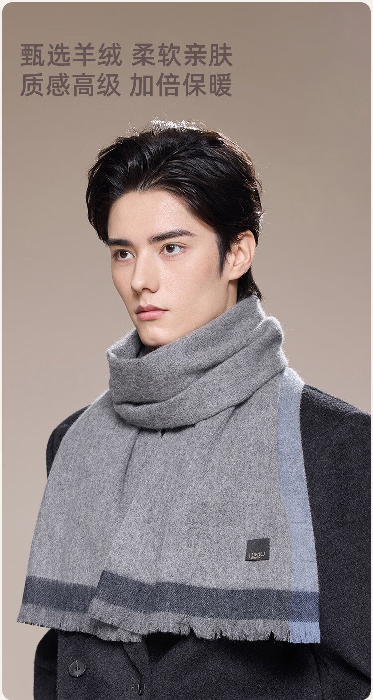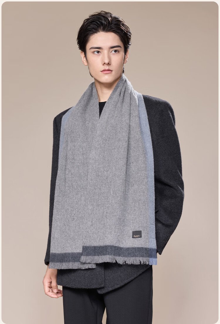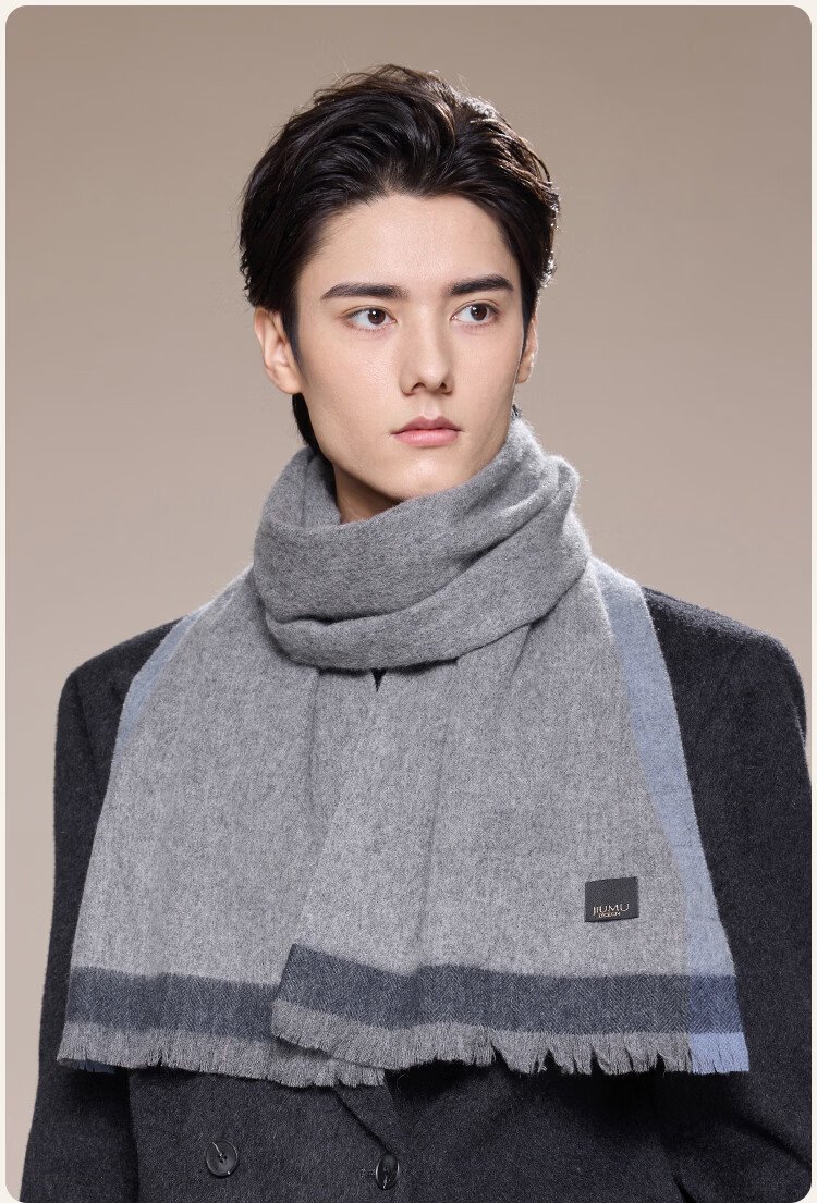 JIUMU 100% Cashmere Scarf Men's Autumn and Winter Warm Scarf for Boys as Father's Christmas and Birthday Gift Gift Box WR133 Gray