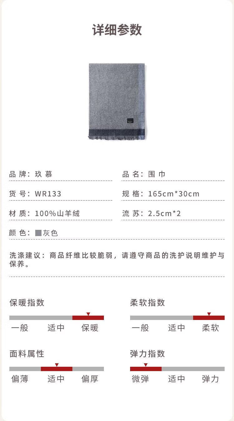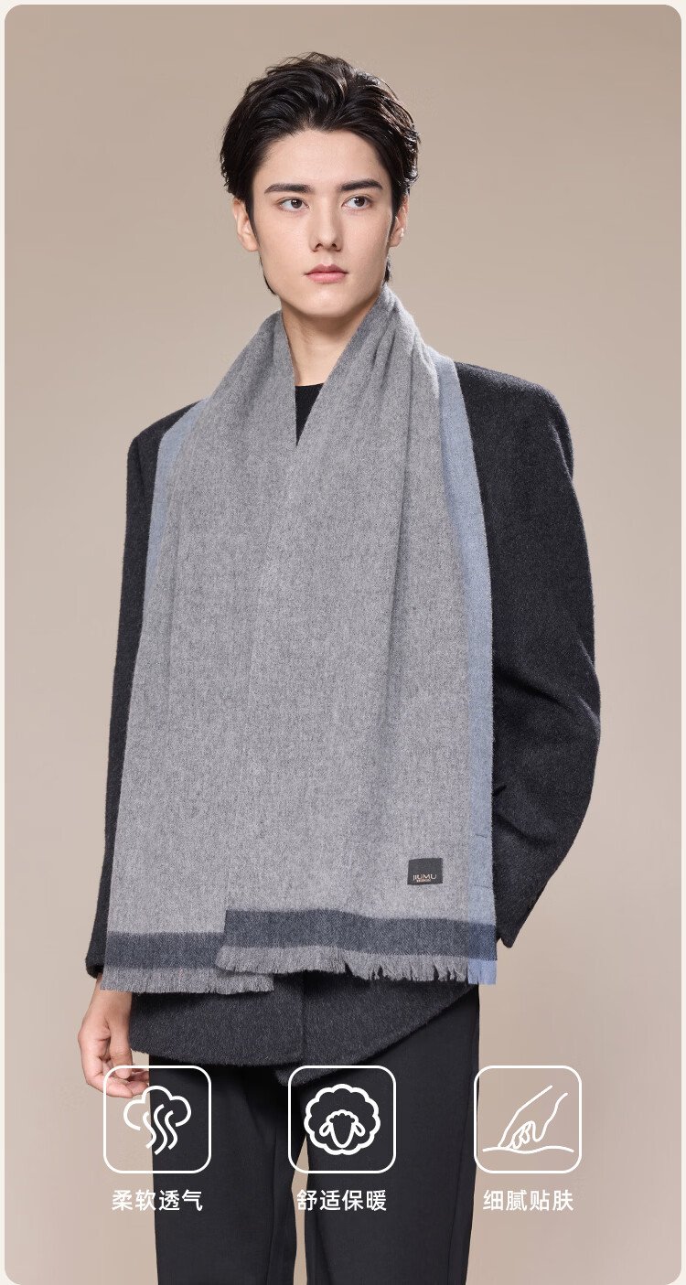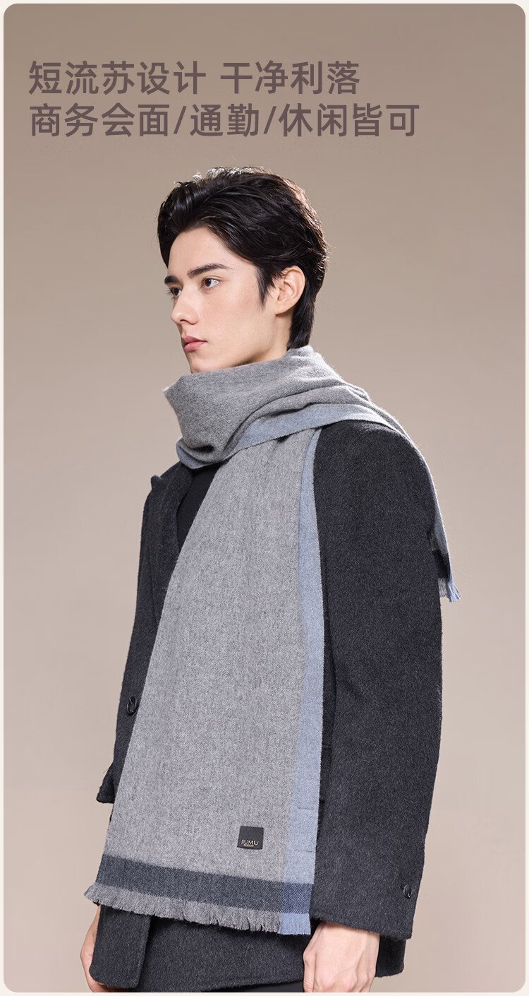 JIUMU 100% Cashmere Scarf Men's Autumn and Winter Warm Scarf for Boys as Father's Christmas and Birthday Gift Gift Box WR133 Gray