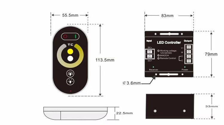 LED light strip controller touch dual color temperature adjustment wireless dimmer single color 12vRGB24V colorful controller dual color controller
