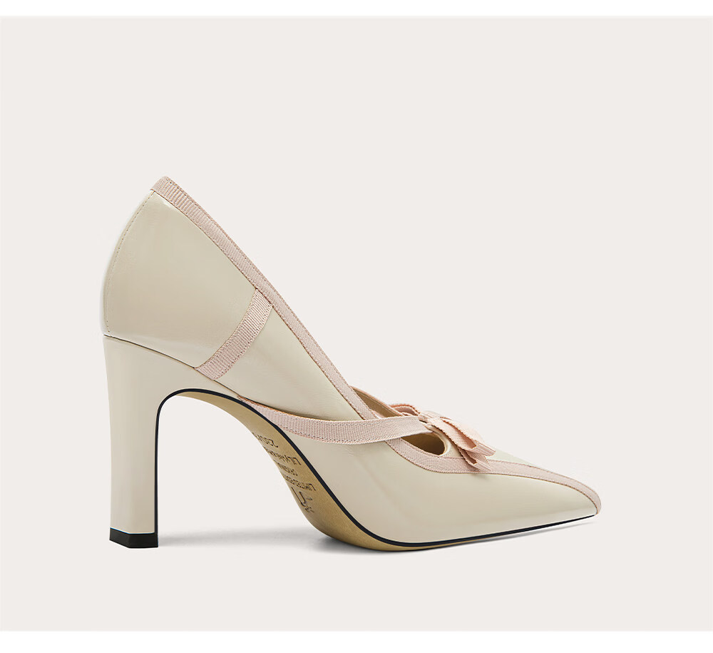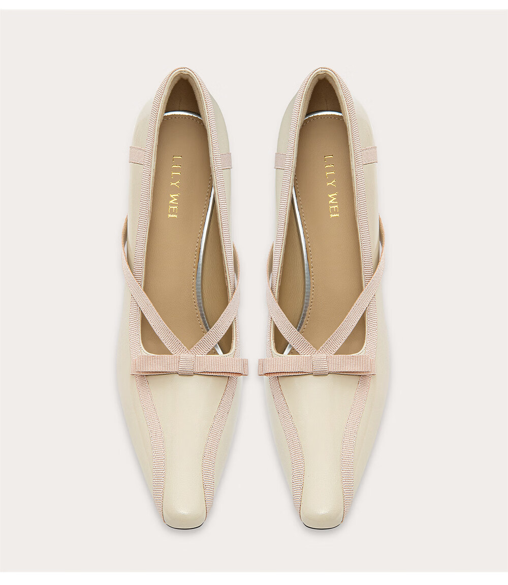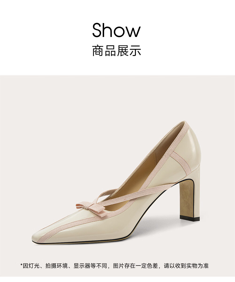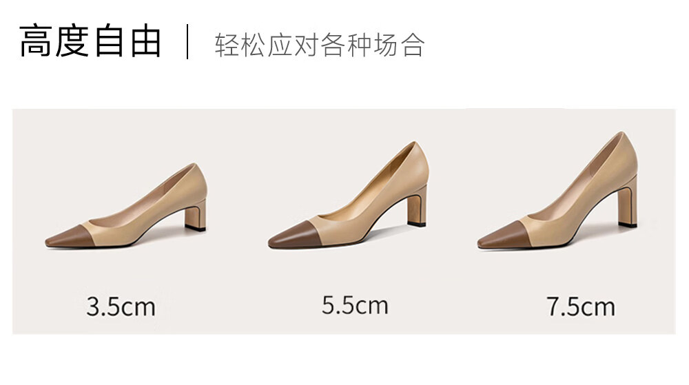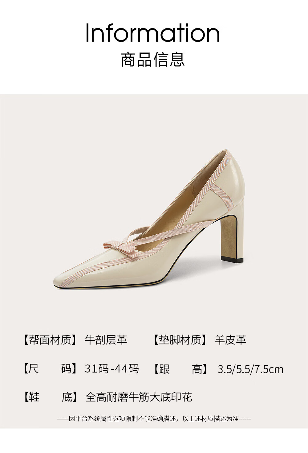 Lily Wei 渃栠 French retro fashion high heels elegant temperament single shoes large size thick heel 414243 rice apricot color heel height 7.5cm 34